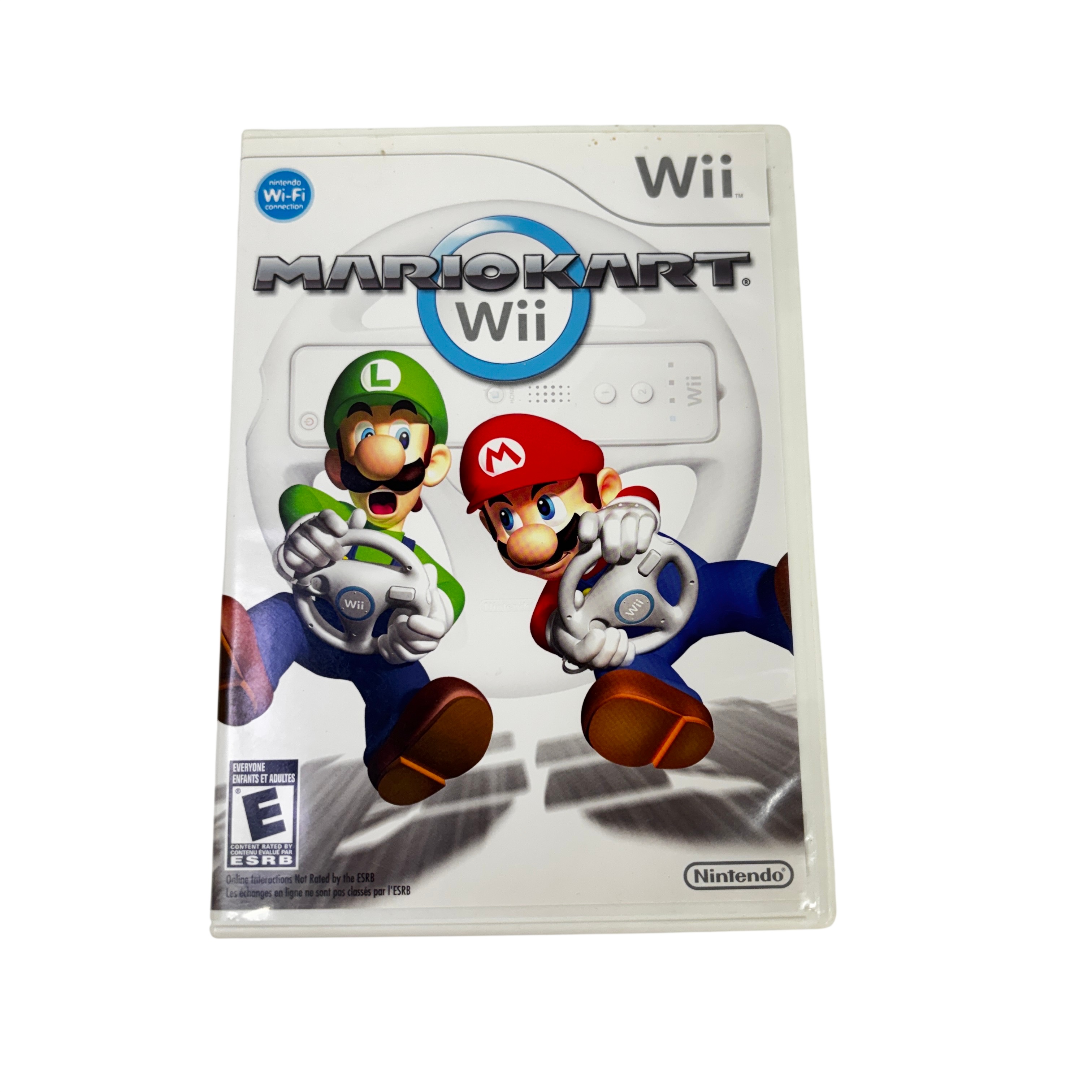 Mario Kart Wii is a popular racing video game for the Nintendo Wii. This game supports local multiplayer for up to four players. It is compatible with the Wii Wheel accessory for an enhanced racing experience. Included in this set are the game disc, original case, and instruction booklet. Rated E for Everyone, this title offers fun and fast-paced gameplay suitable for all ages.