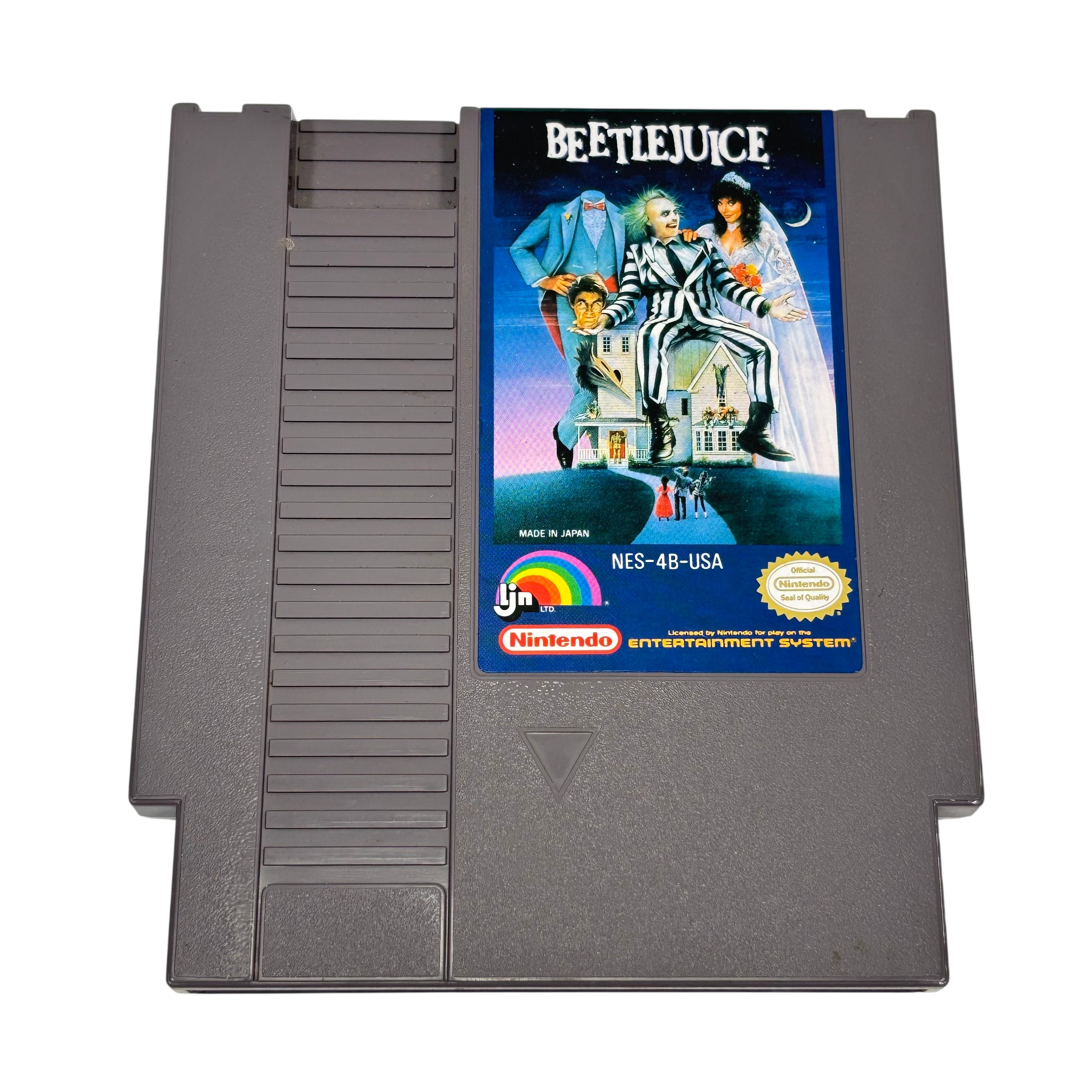 Nintendo Beetlejuice Game Cartridge is an officially licensed video game for the Nintendo Entertainment System. This classic gray cartridge features the popular Beetlejuice game, released in 1985 and made in Japan. Compatible with NES consoles, this cartridge offers nostalgic gameplay for collectors and retro gaming enthusiasts. The cartridge measures approximately 0.75 inches thick, 5.25 inches wide, and 4.75 inches long, weighing about 0.2 pounds. Perfect for fans of vintage video games and Beetlejuice memorabilia.