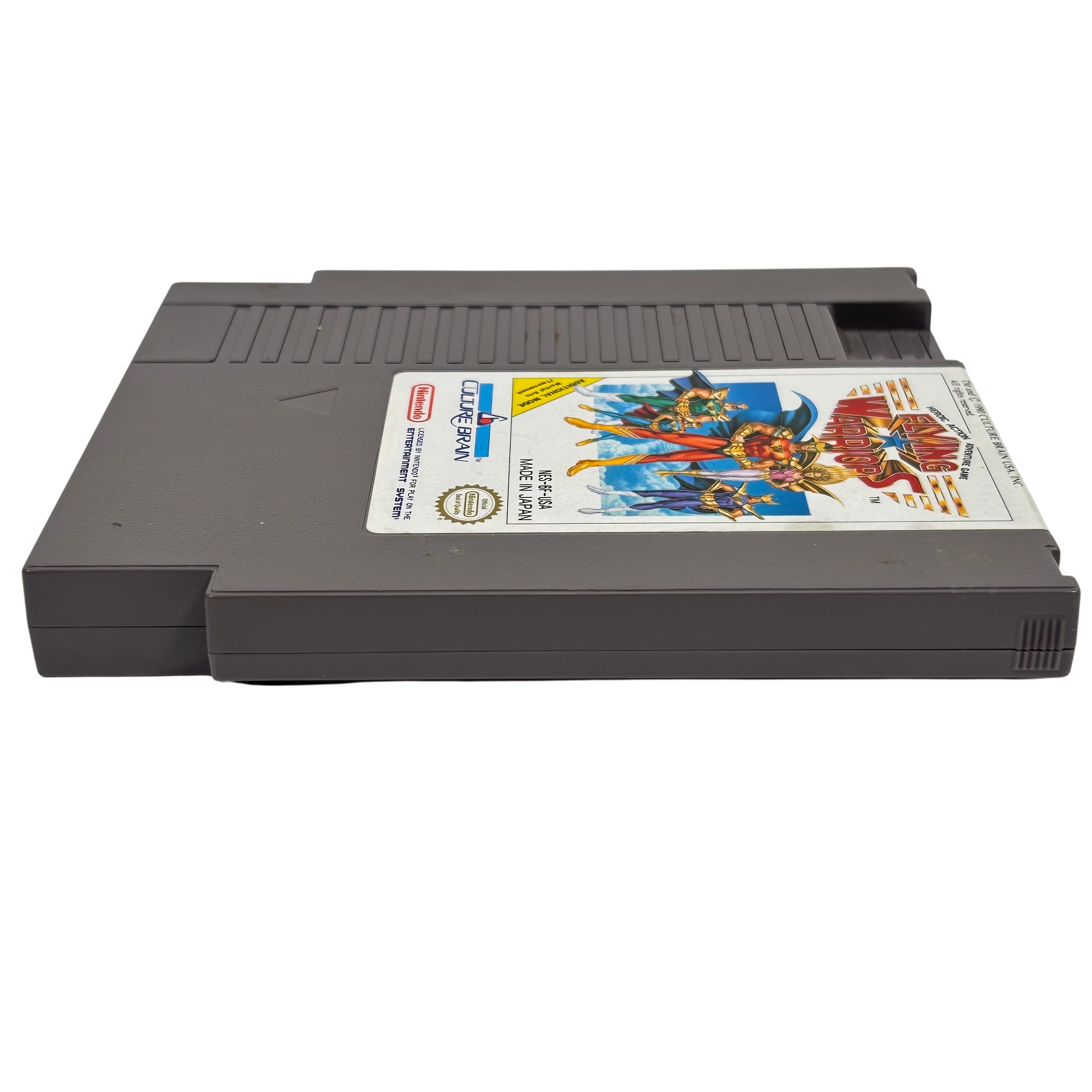 Nintendo Flying Warriors NES Game Cartridge is a classic heroic action adventure game developed by Culture Brain and licensed by Nintendo for the Nintendo Entertainment System. Released in 1985, this cartridge features engaging 8-bit gameplay with multiple characters and modes. The gray plastic cartridge includes the original colorful label and is compatible with all NES consoles. A must-have for collectors and retro gaming enthusiasts.