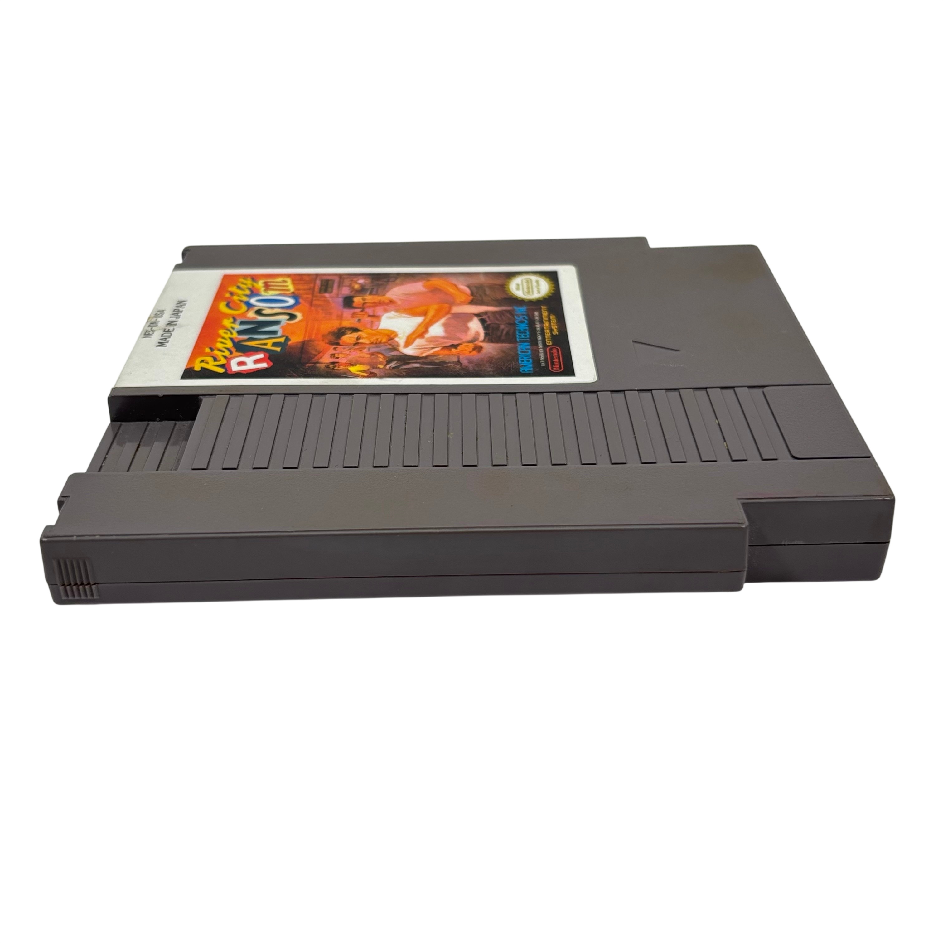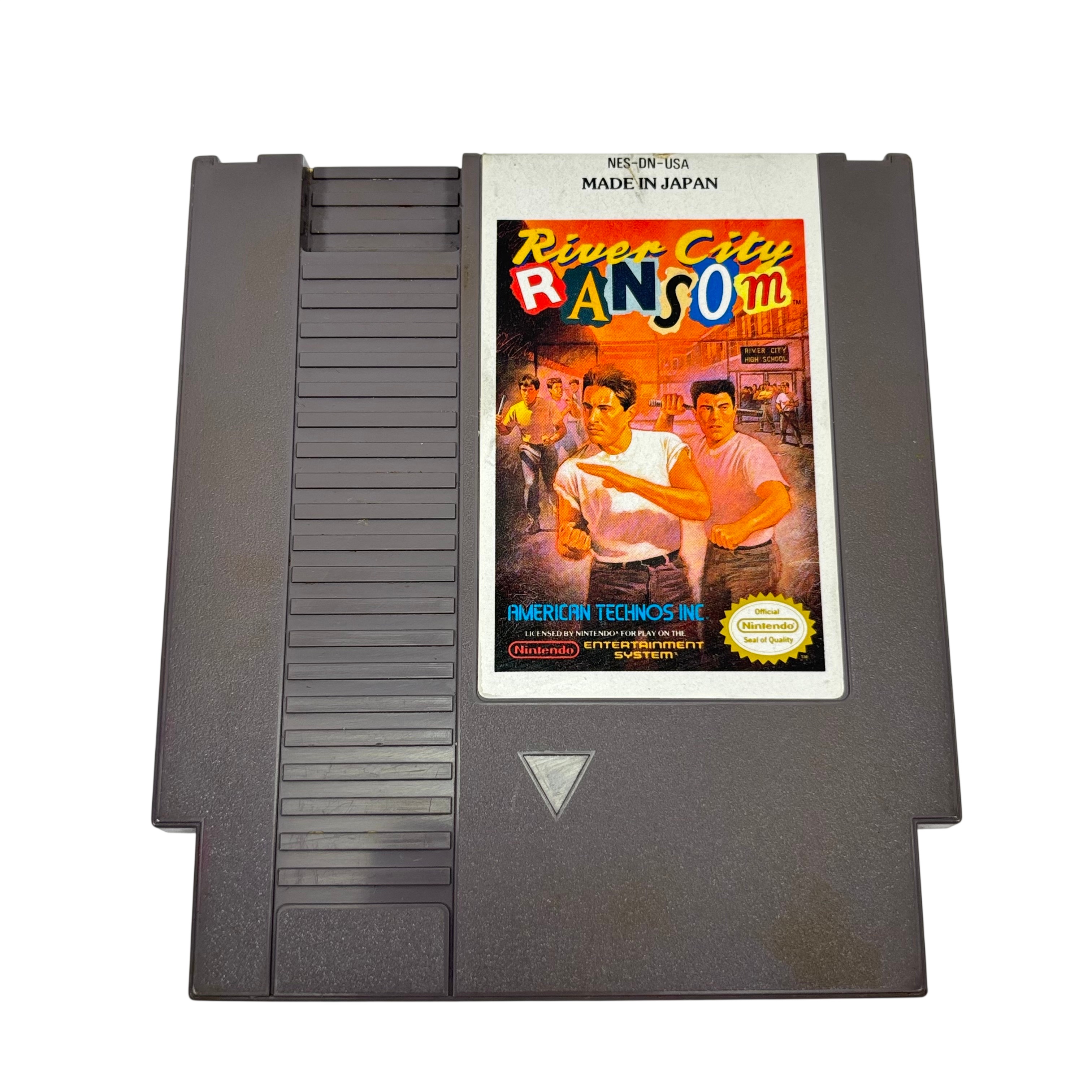 Nintendo River City Ransom is a classic video game cartridge designed for the Nintendo Entertainment System. Released in 1985 and manufactured in Japan, this cartridge offers nostalgic gameplay with its original packaging and licensed Nintendo quality. The gray plastic cartridge features the iconic River City Ransom label and is compatible with all standard NES consoles. Ideal for collectors and retro gaming enthusiasts, this cartridge brings back the classic beat em up experience of the 1980s.