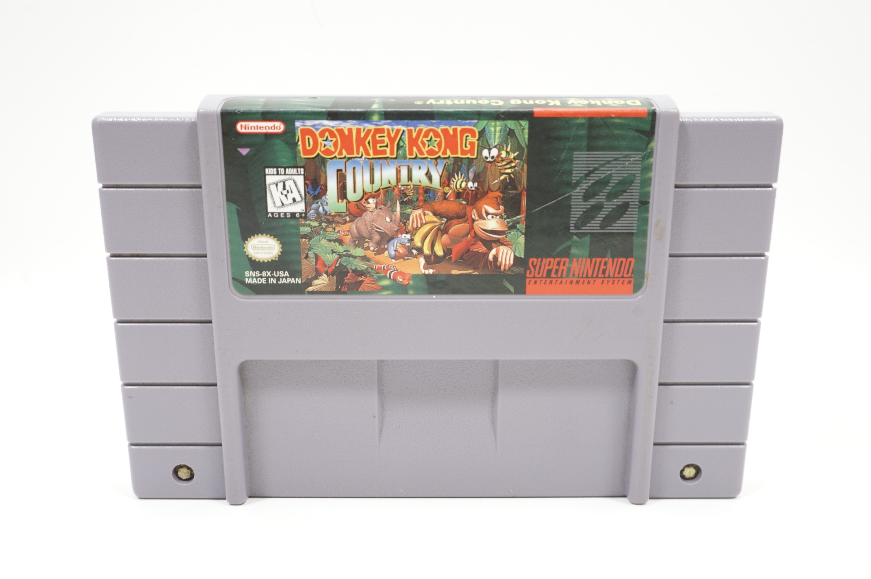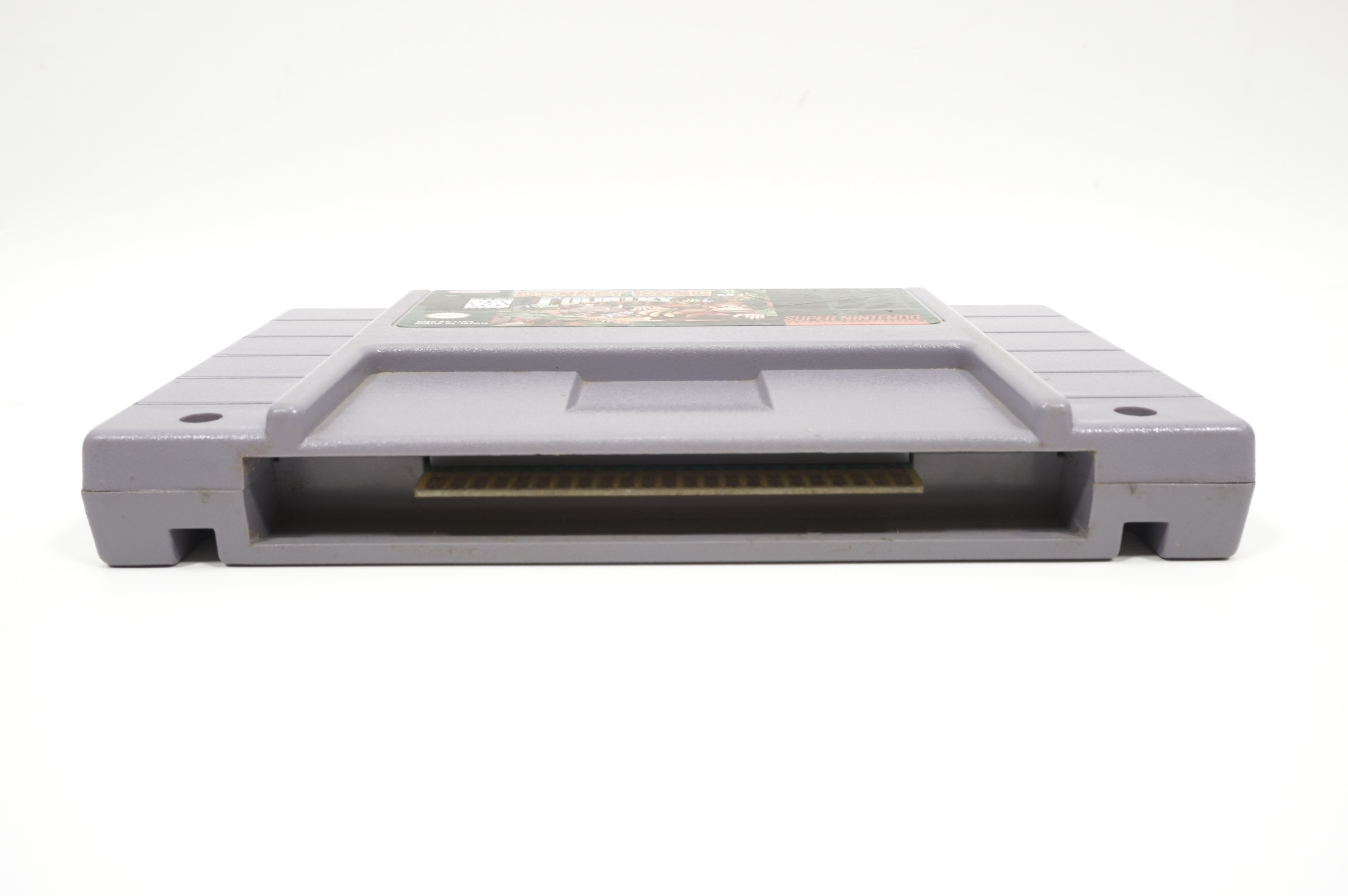 No rest for Donkey Kong, as his stash of bananas has been pilfered by the greedy Kremlings. Guide the mighty ape and his agile young companion Diddy Kong through varied levels of adventure in the quest to recover those missing bananas. Meet up with other members of the Kong family for entertaining conversation and useful information. Keep the enemies at bay with barrels and rolling attacks. Players can switch back and forth between Donkey Kong and Diddy Kong with the "Select" button and the unique abilities of each character are required to explore all the hidden areas and discover the many secrets of Donkey Kong Country.
