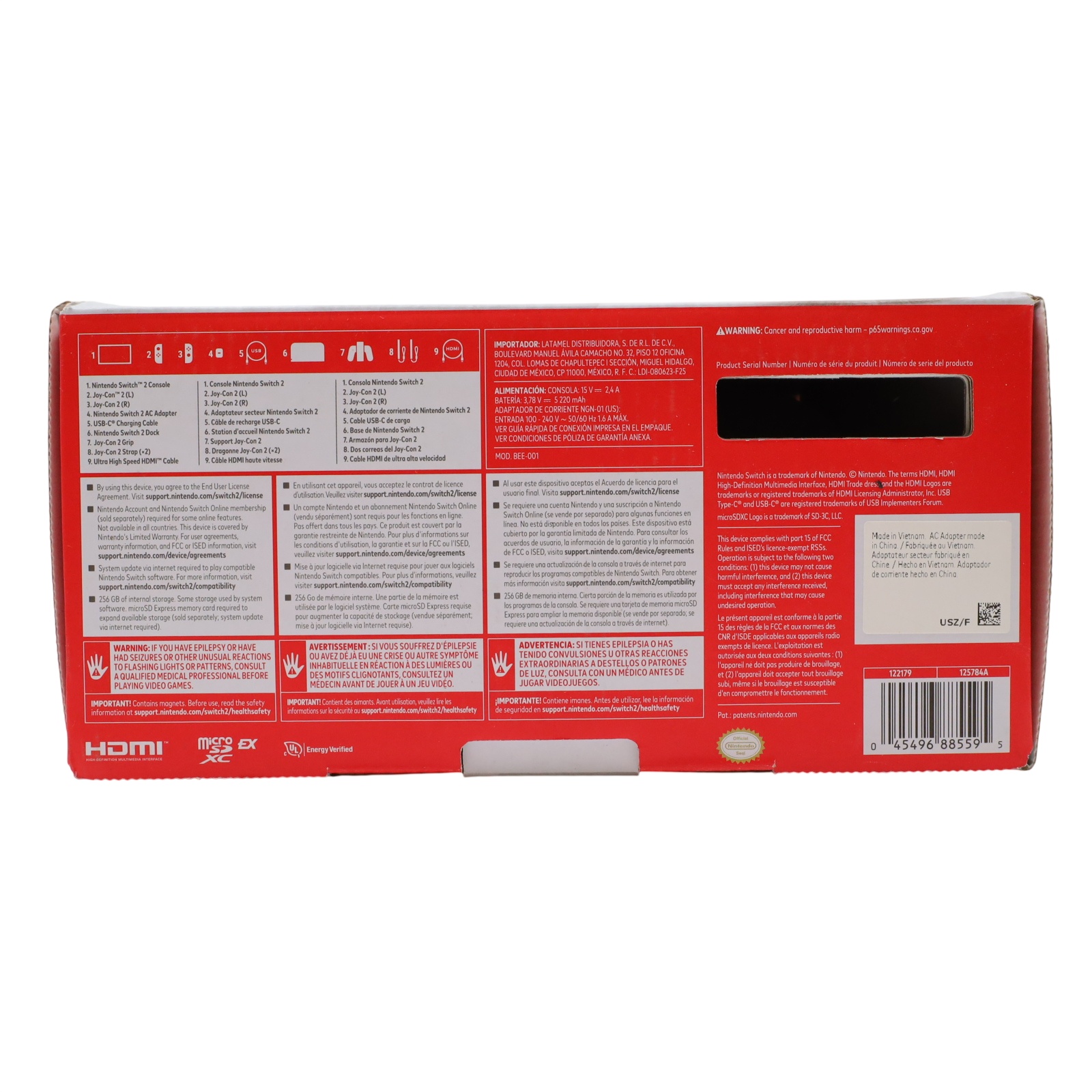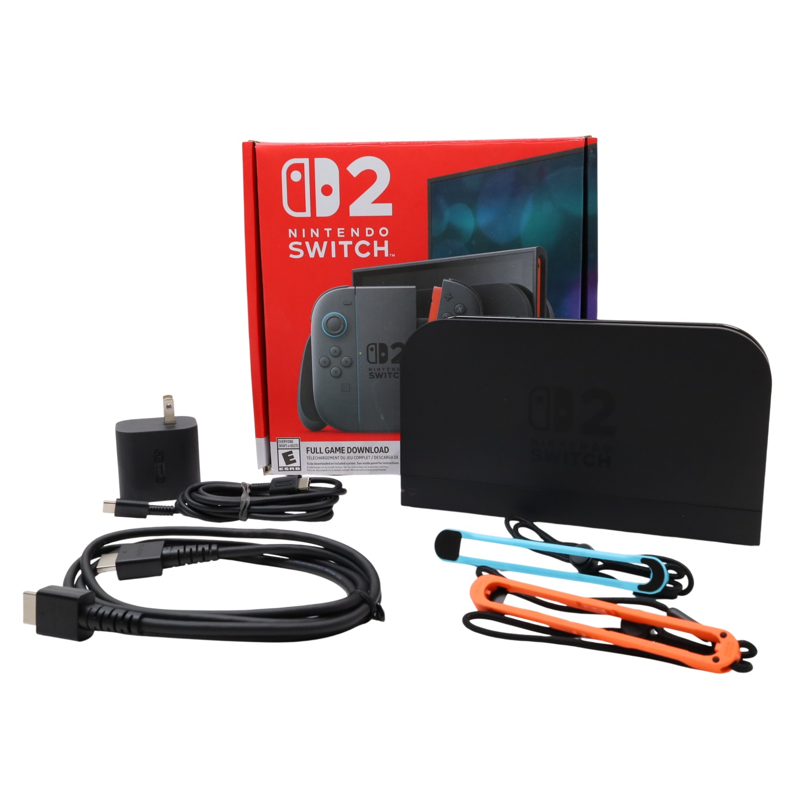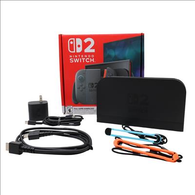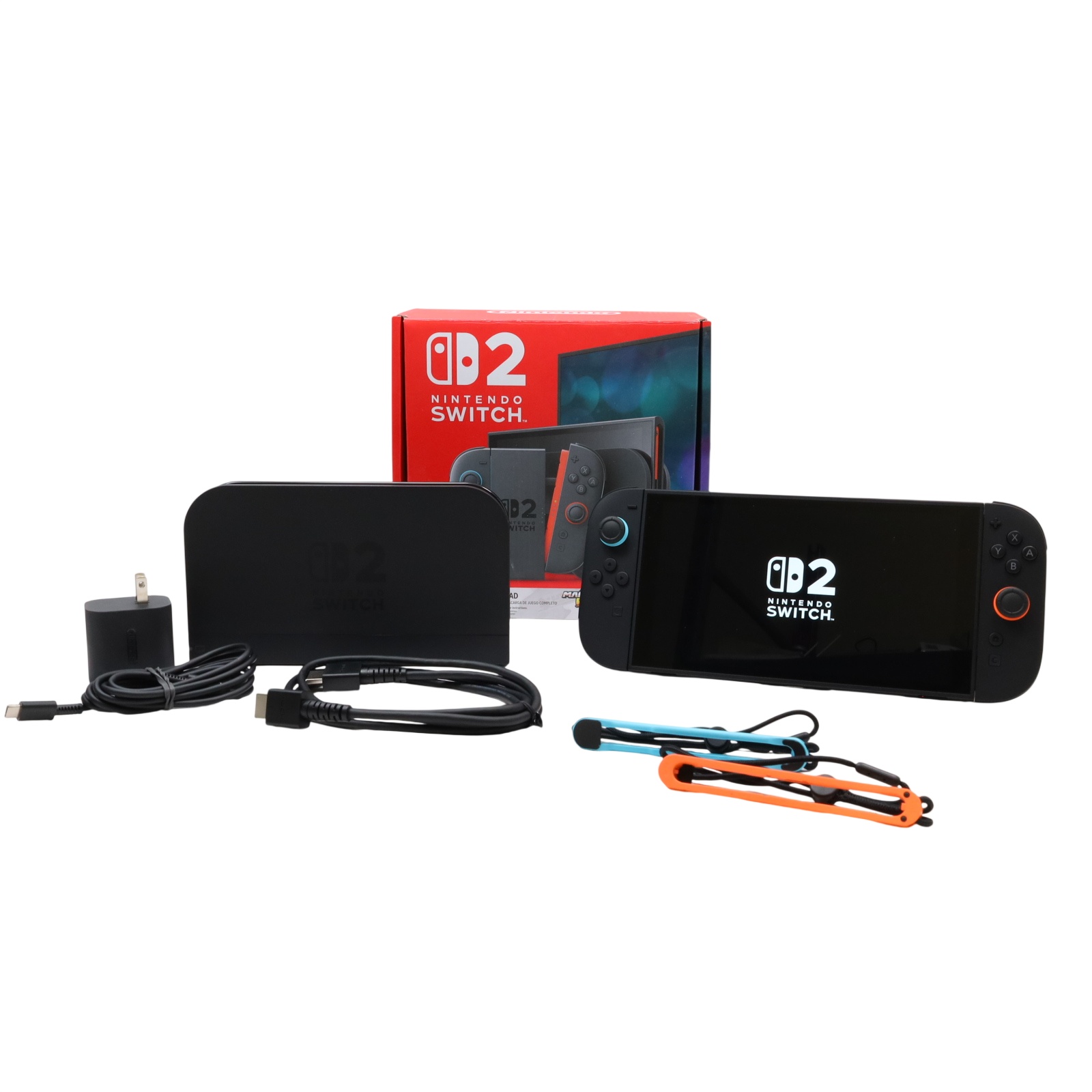 A hybrid gaming system featuring a 7.9" 1080p HDR-capable LCD touchscreen and a redesigned dock that supports up to 4K output and 120 fps with compatible games and displays. It includes updated Joy-Con 2 controllers with magnetic attachment and integrated mouse-like functionality for supported titles. With 256GB of internal storage (expandable via microSD Express), the system plays both physical and digital Nintendo Switch titles and supports three play modes: TV, Tabletop, and Handheld. The built-in GameChat feature enables voice and video chat with friends using the system’s microphone or a USB-C camera. The system also supports multiplayer gaming via same-system, local wireless, and online modes.