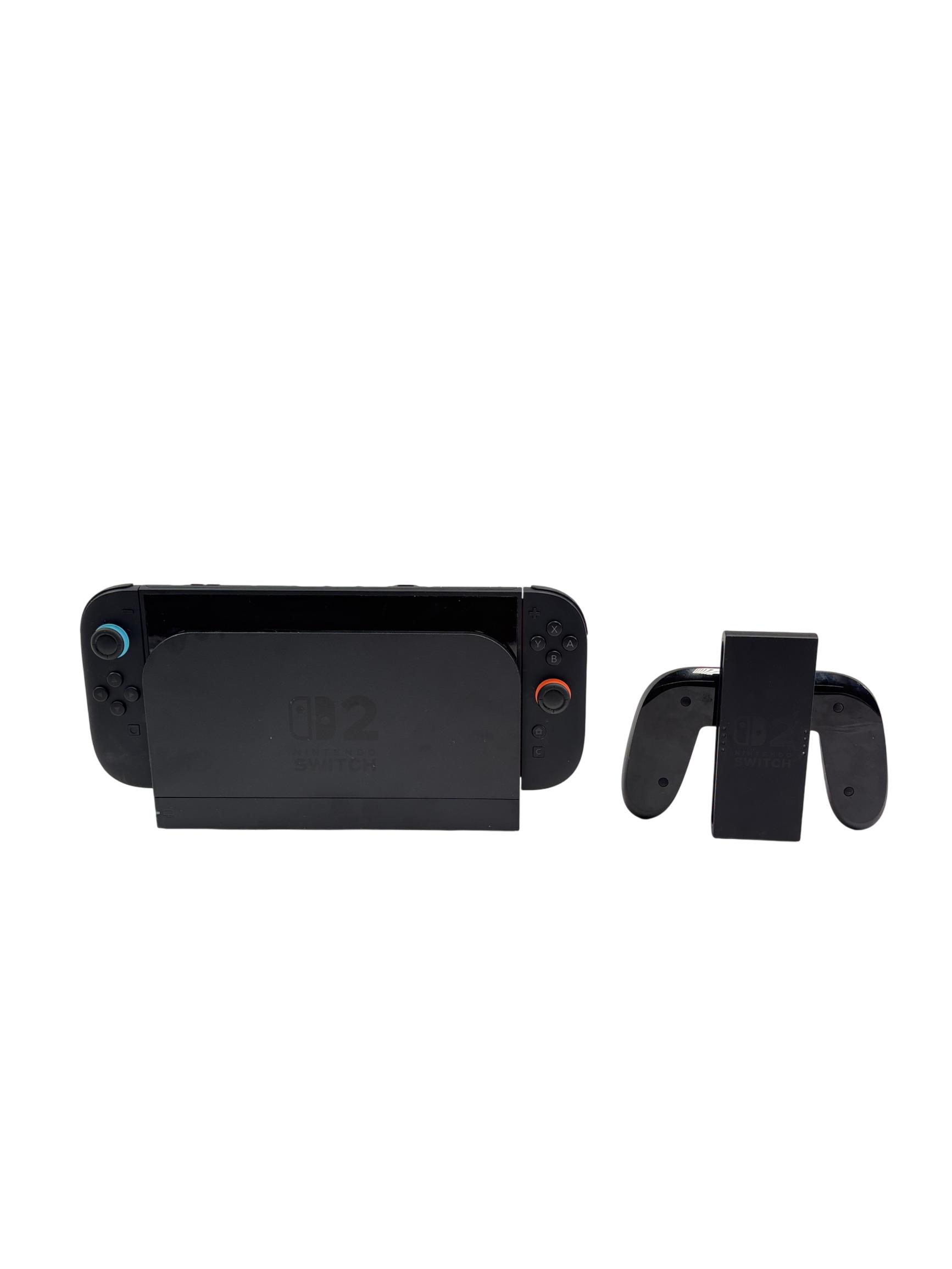 Nintendo Switch 2 Black 256GB Console with Joy-Con Controllers and Dock offers a sleek and versatile gaming experience with an improved 256GB storage capacity. This black rectangular gaming device features ergonomic Joy-Con controllers and a docking station for seamless connection to a TV or monitor, enhancing gameplay with smooth performance and vibrant visuals.