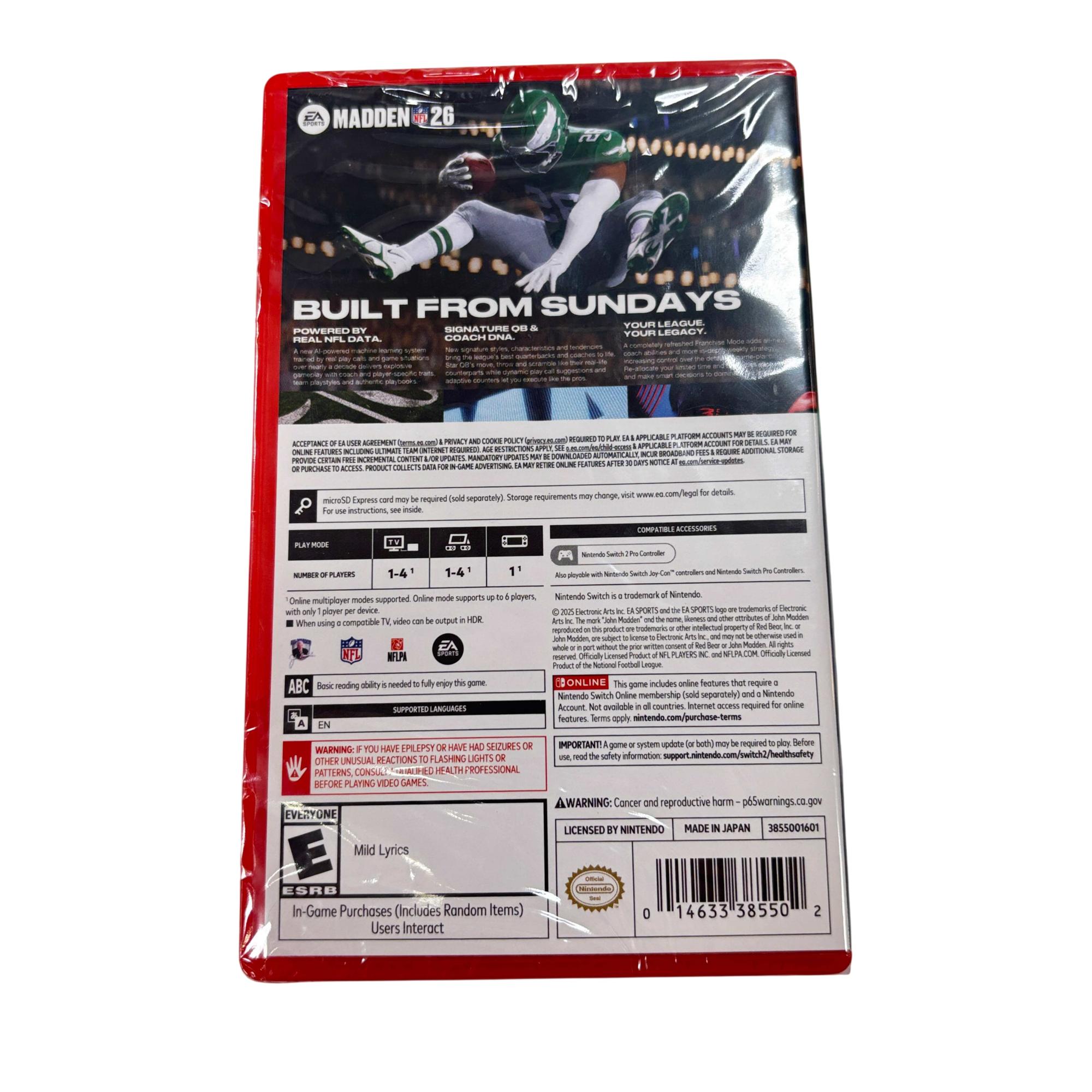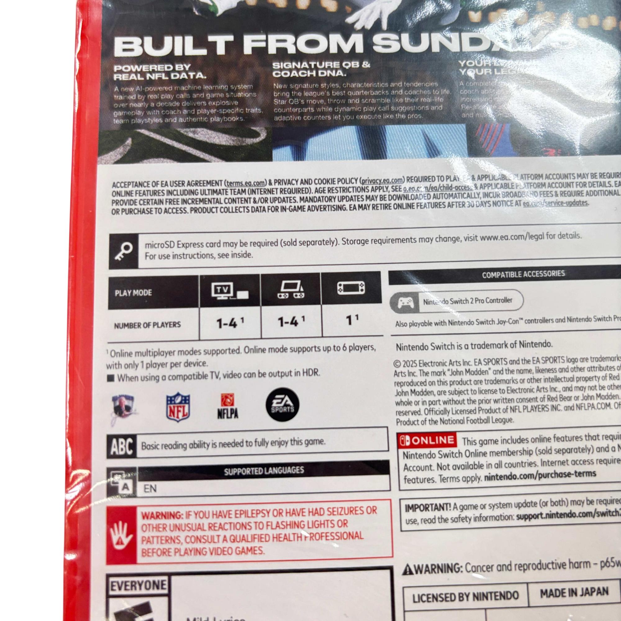 EA Sports Madden NFL 26 for Nintendo Switch 2 offers an immersive football gaming experience with updated rosters and realistic gameplay. This edition features detailed player models and dynamic stadium atmospheres that capture the intensity of the National Football League. Designed for Nintendo Switch 2, it delivers seamless performance through a digital game-key download requiring internet access.