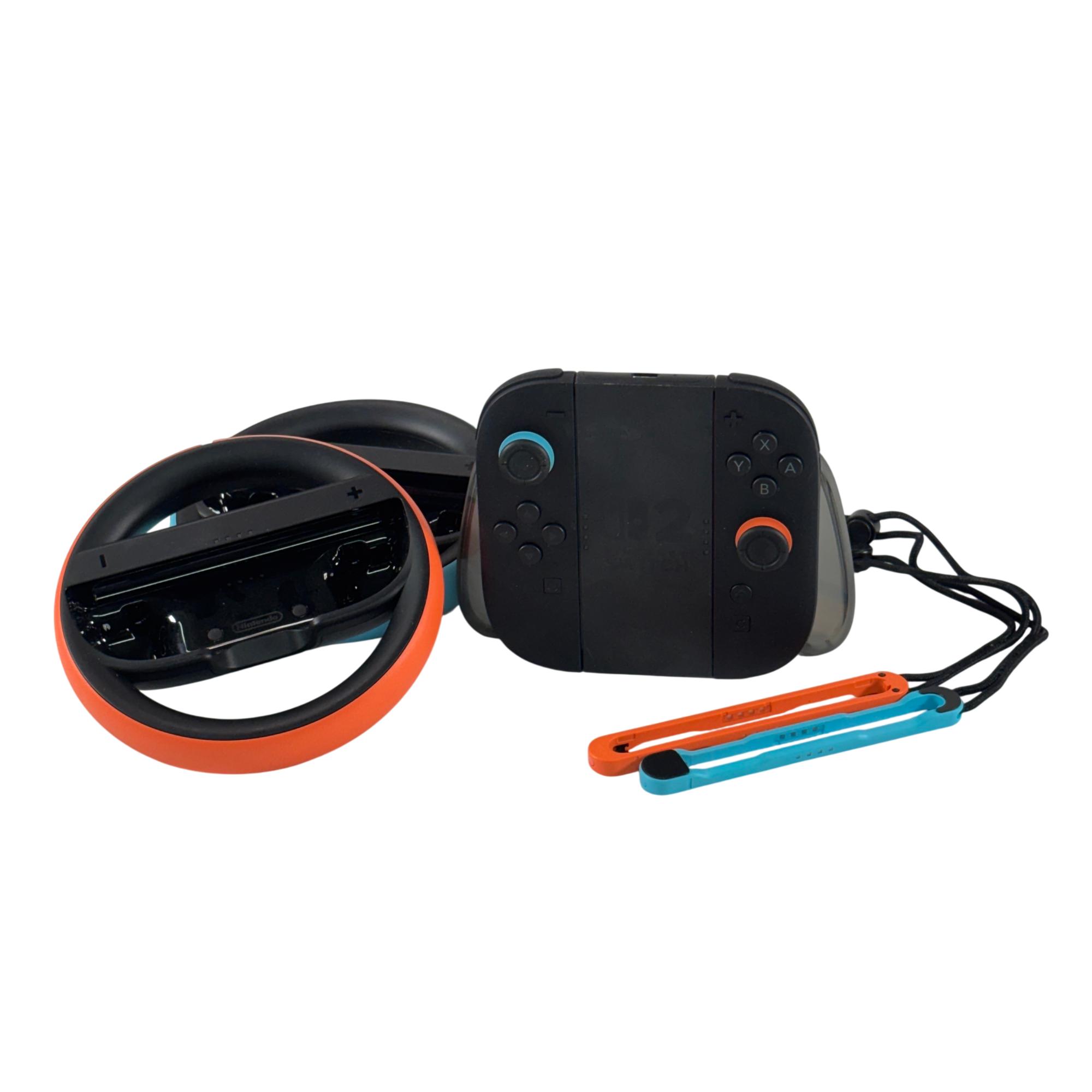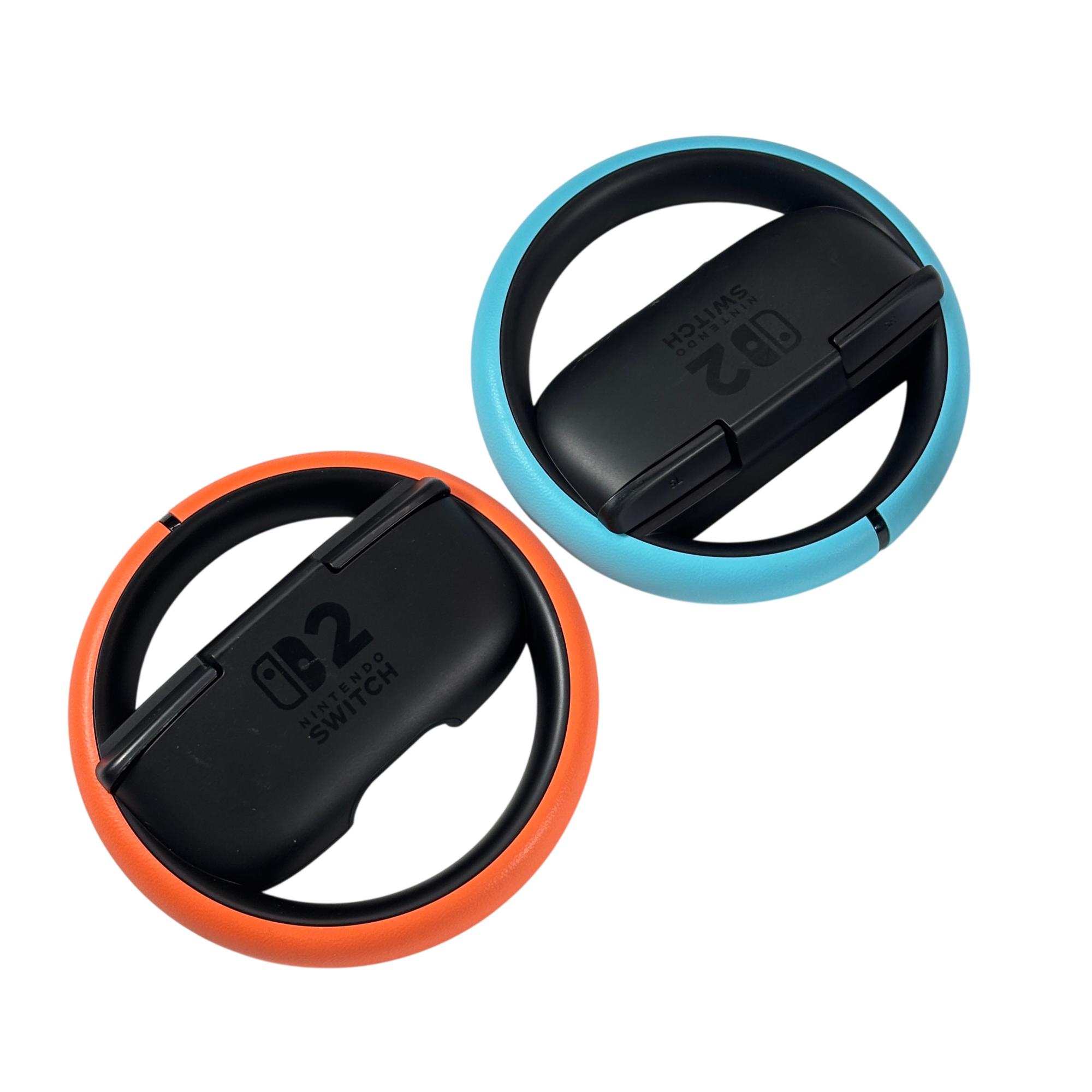 Nintendo Switch 2 Joy-Con wireless controllers feature motion controls and HD rumble for immersive gameplay. They include a new C Button for quick GameChat access and enhanced mouse control functionality, offering a compact and versatile gaming experience.