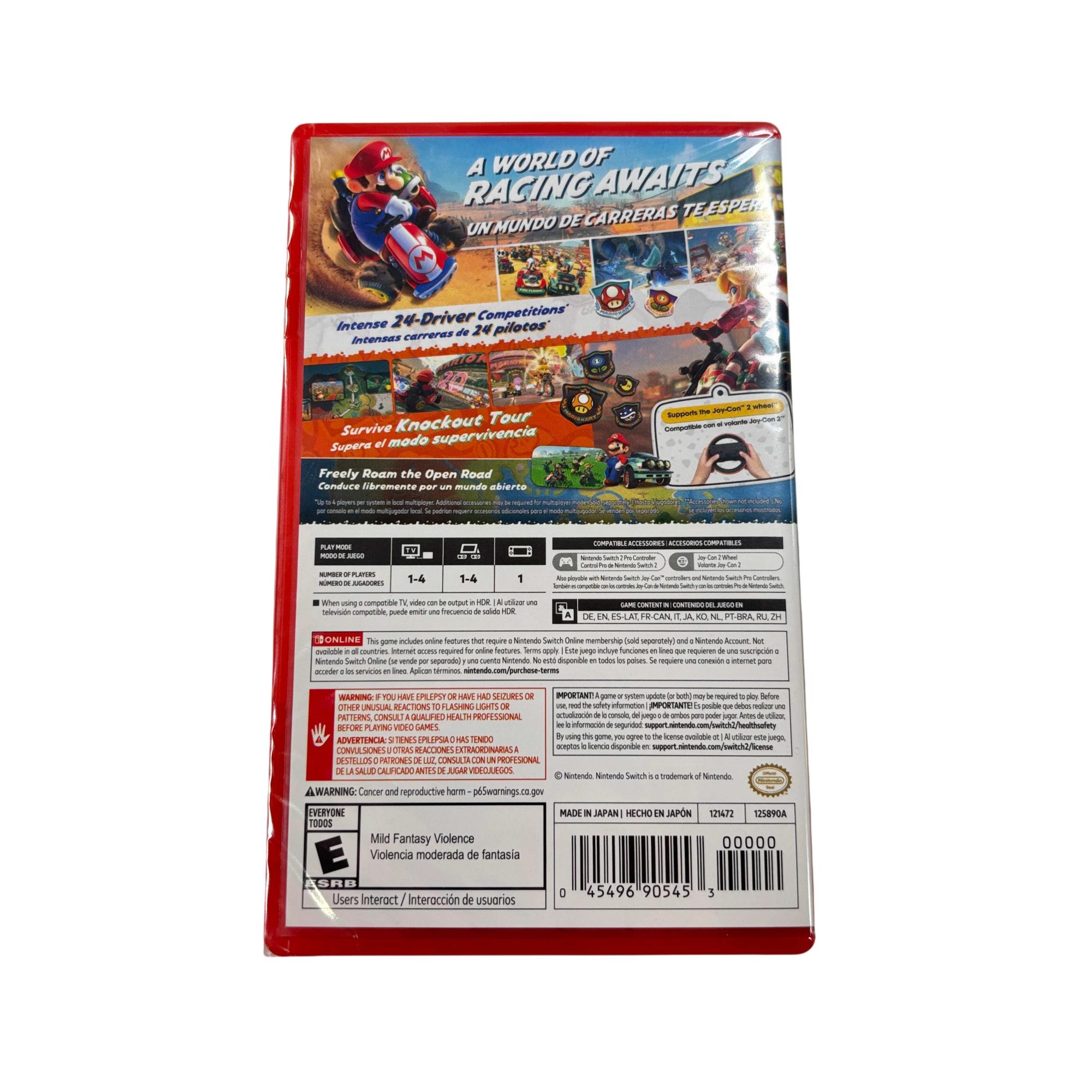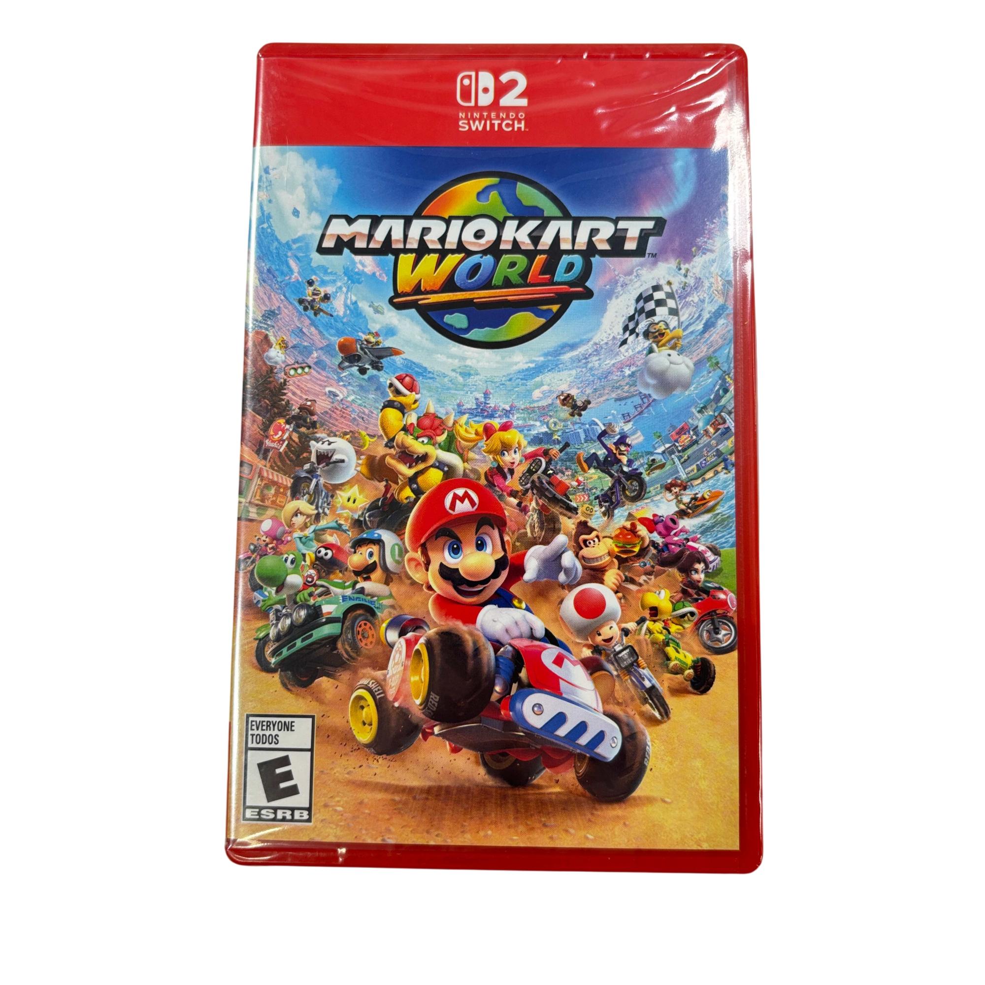Mario Kart World for Nintendo Switch 2 offers an immersive racing experience featuring intense 24-driver competitions and an open-world environment that allows players to freely roam the roads. The game supports up to four players for local multiplayer and is compatible with Joy-Con wheels and Pro controllers, delivering dynamic gameplay with vibrant cartoon-style graphics and exciting vehicle options.