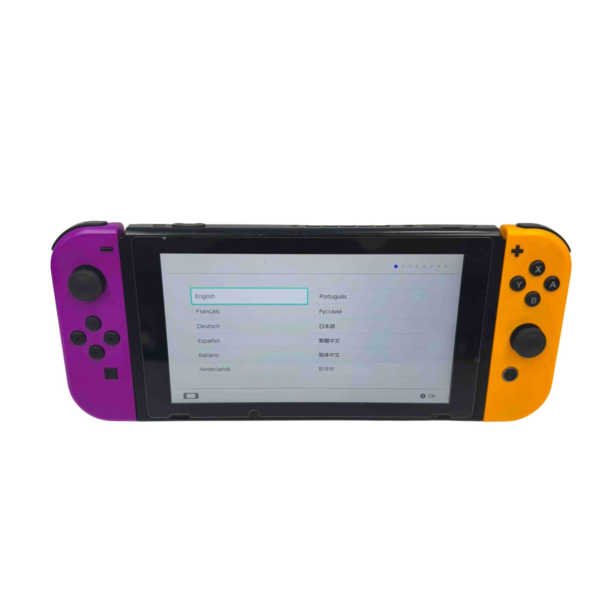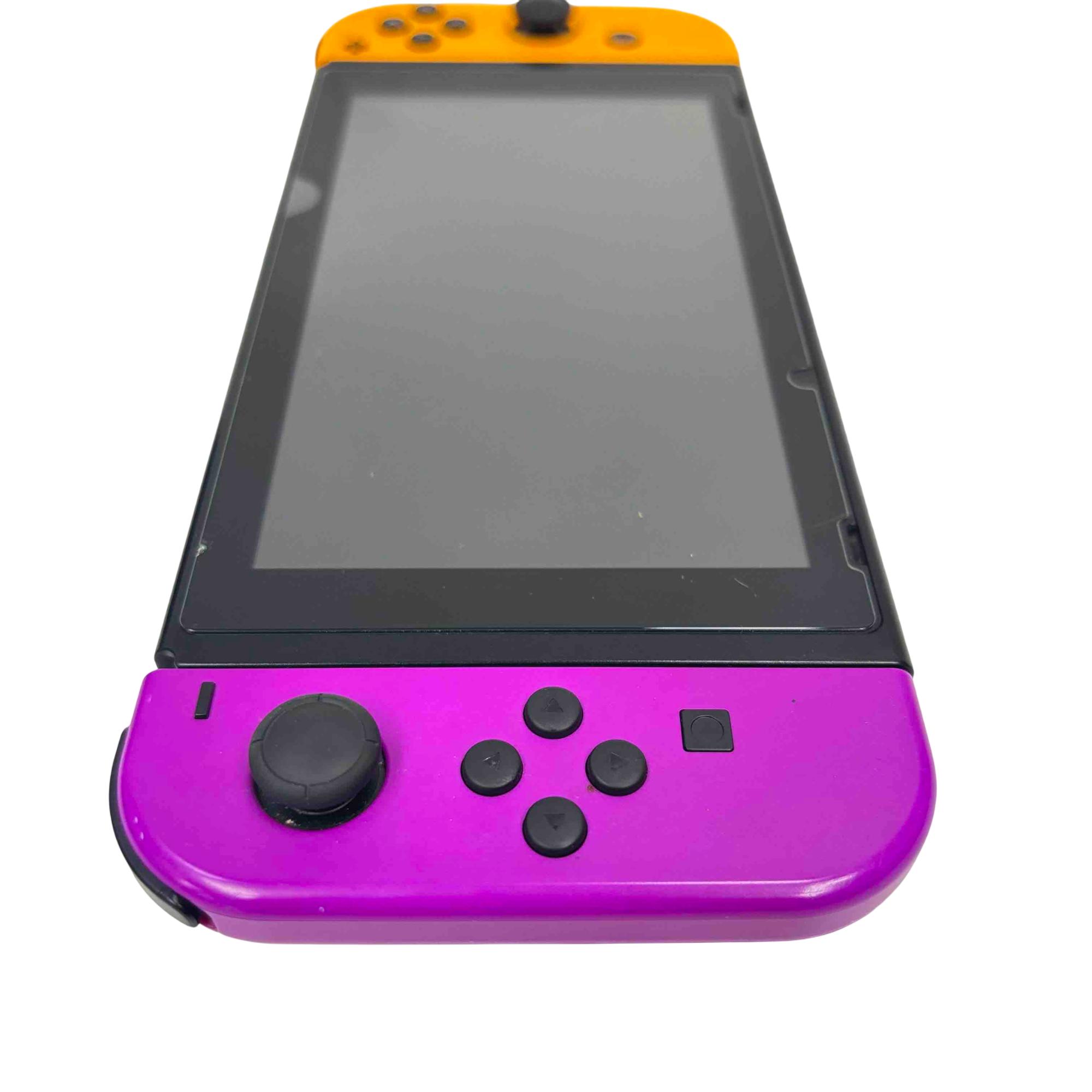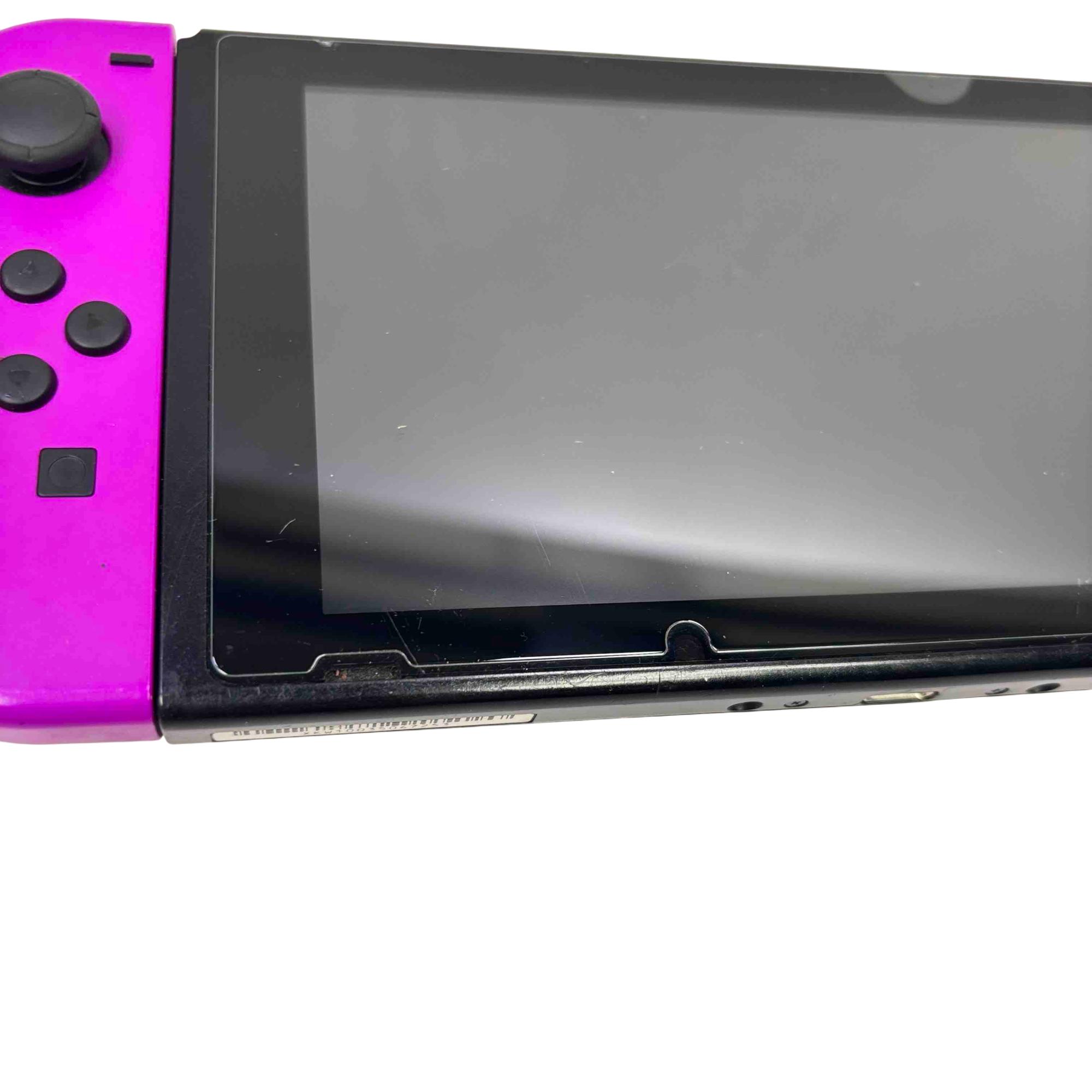 Previously owned. The Nintendo Switch has been tested and works well and is in fairly good condition that has some scratches, blemishes and edge scuffs. The screen is equipped with a screen protector. See photos for details.
