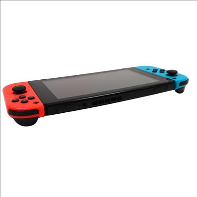 A versatile home video game system that offers both single and multiplayer gaming experiences. It is designed to be portable, allowing players to enjoy a full home console experience anytime, anywhere. The system can transition from a home console to a handheld device by simply lifting it from its dock. The Nintendo Switch features a 6.2-inch high-definition screen for vibrant, high-resolution graphics. It comes with two Joy-Con controllers that can act as standalone controllers, each equipped with an analog stick, face and shoulder buttons, motion-sensing technology, and new HD Rumble. These controllers can be inserted into a Joy-Con grip accessory for a traditional controller experience, or shared between two players for instant multiplayer gaming. The Nintendo Switch supports three play styles: TV, tabletop, and handheld modes, and can connect up to eight consoles over Wi-Fi for local multiplayer gaming.