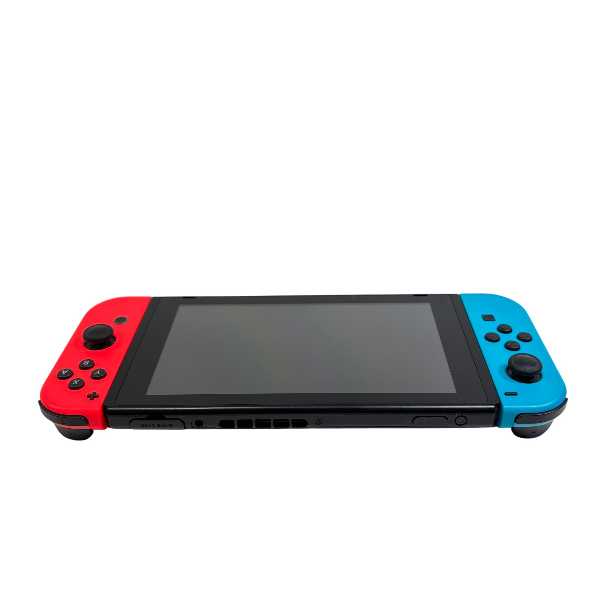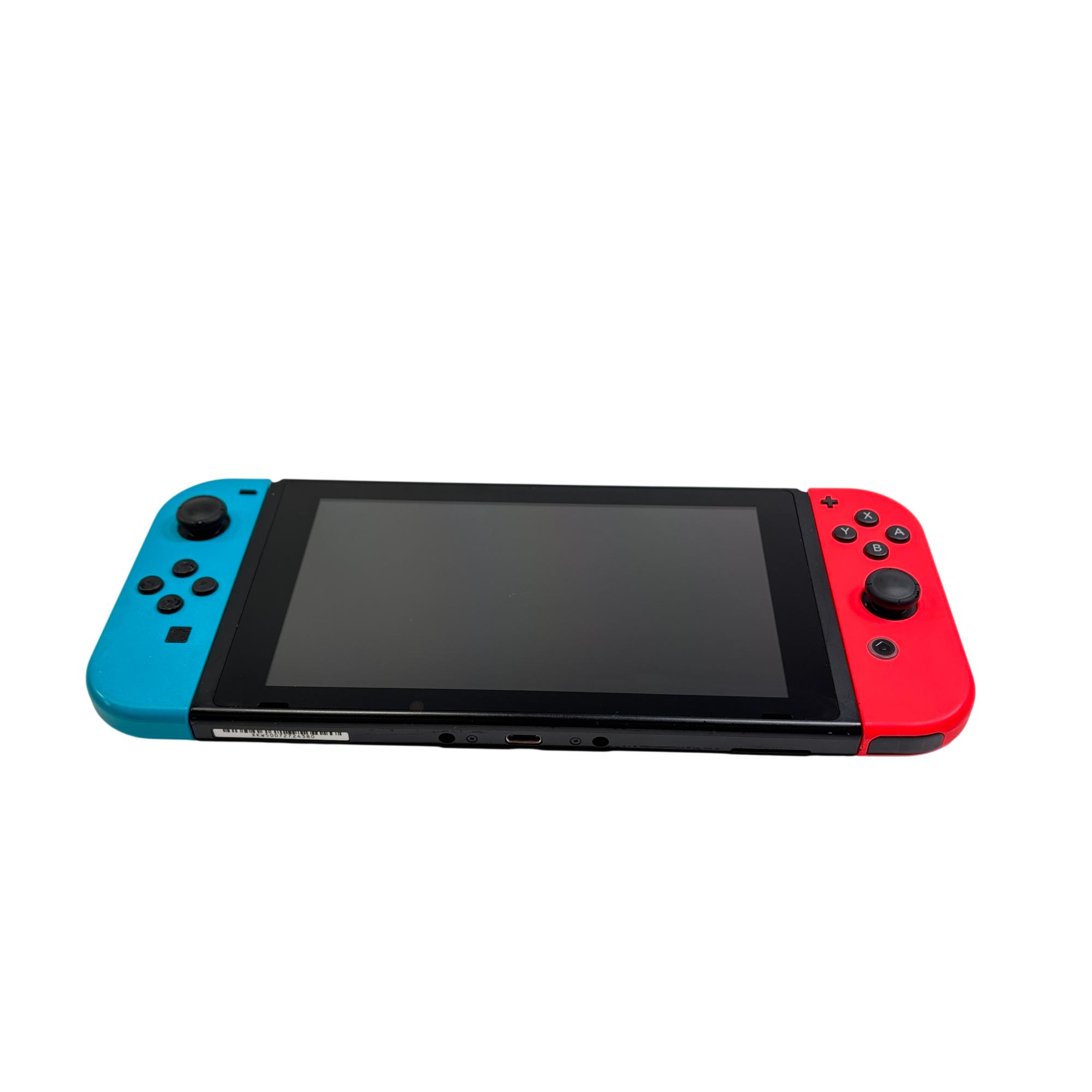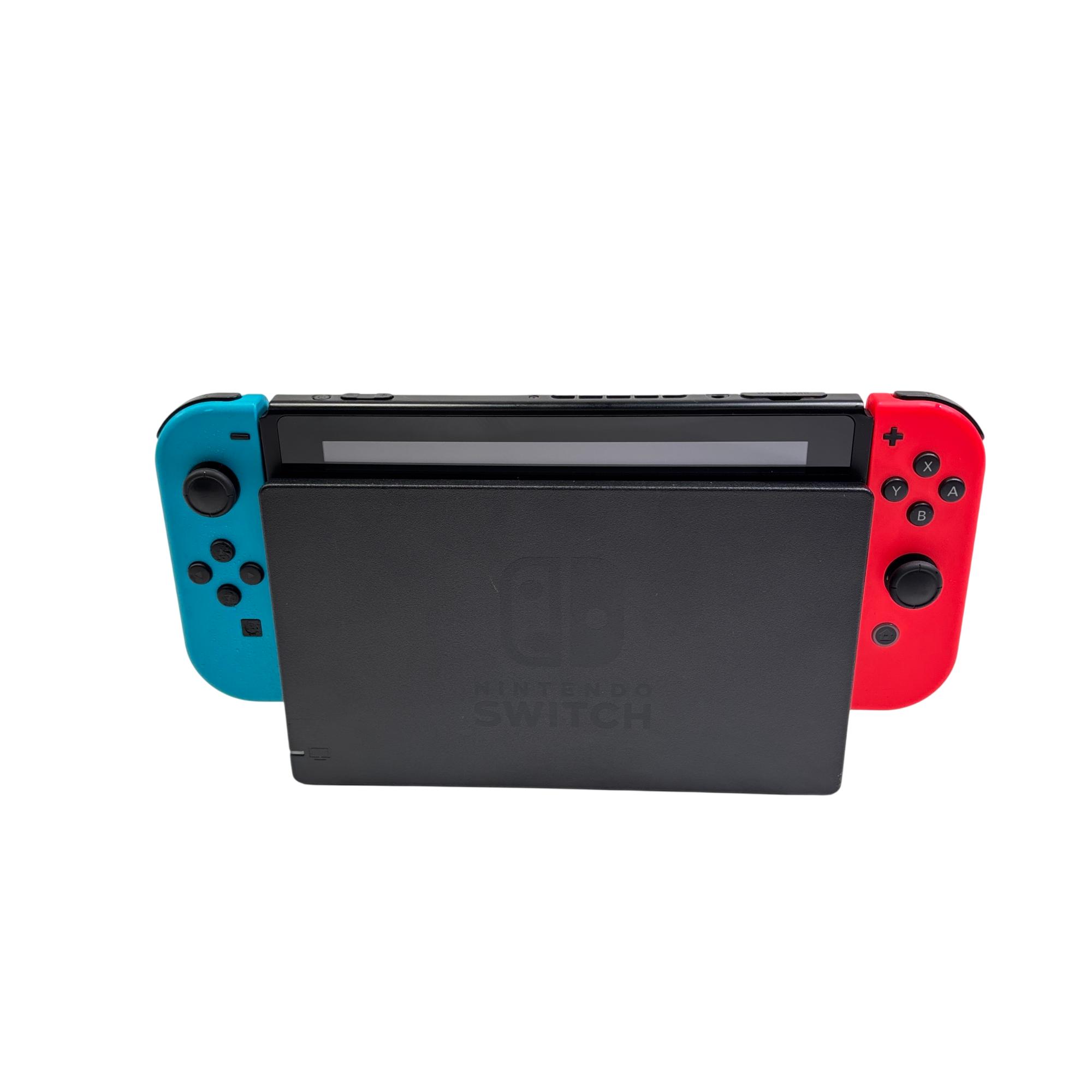 Nintendo Switch HAC-001(-01) Console with Neon Red and Blue Joy-Con Controllers and Dock offers a versatile gaming experience that seamlessly transitions between handheld and TV modes. Featuring vibrant neon red and blue controllers, this compact console delivers smooth gameplay with customizable controls for a variety of multiplayer and single-player games. Its sleek docking station enables easy connectivity to a larger screen, making it ideal for immersive gaming sessions at home.