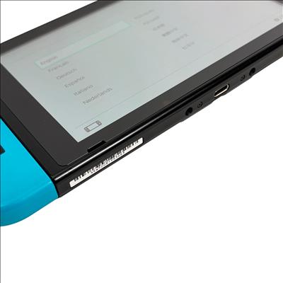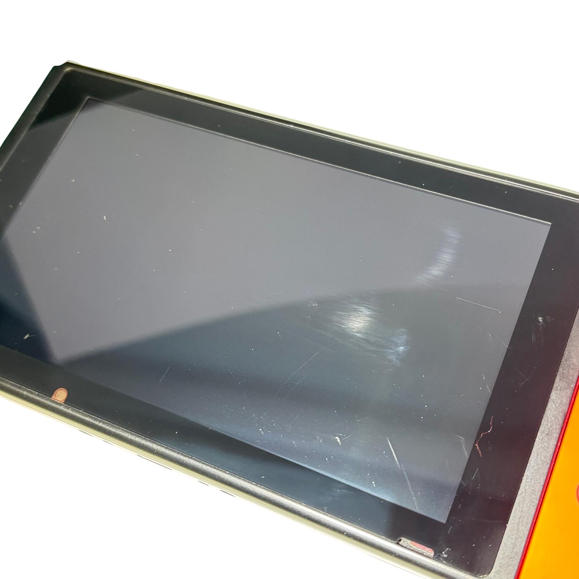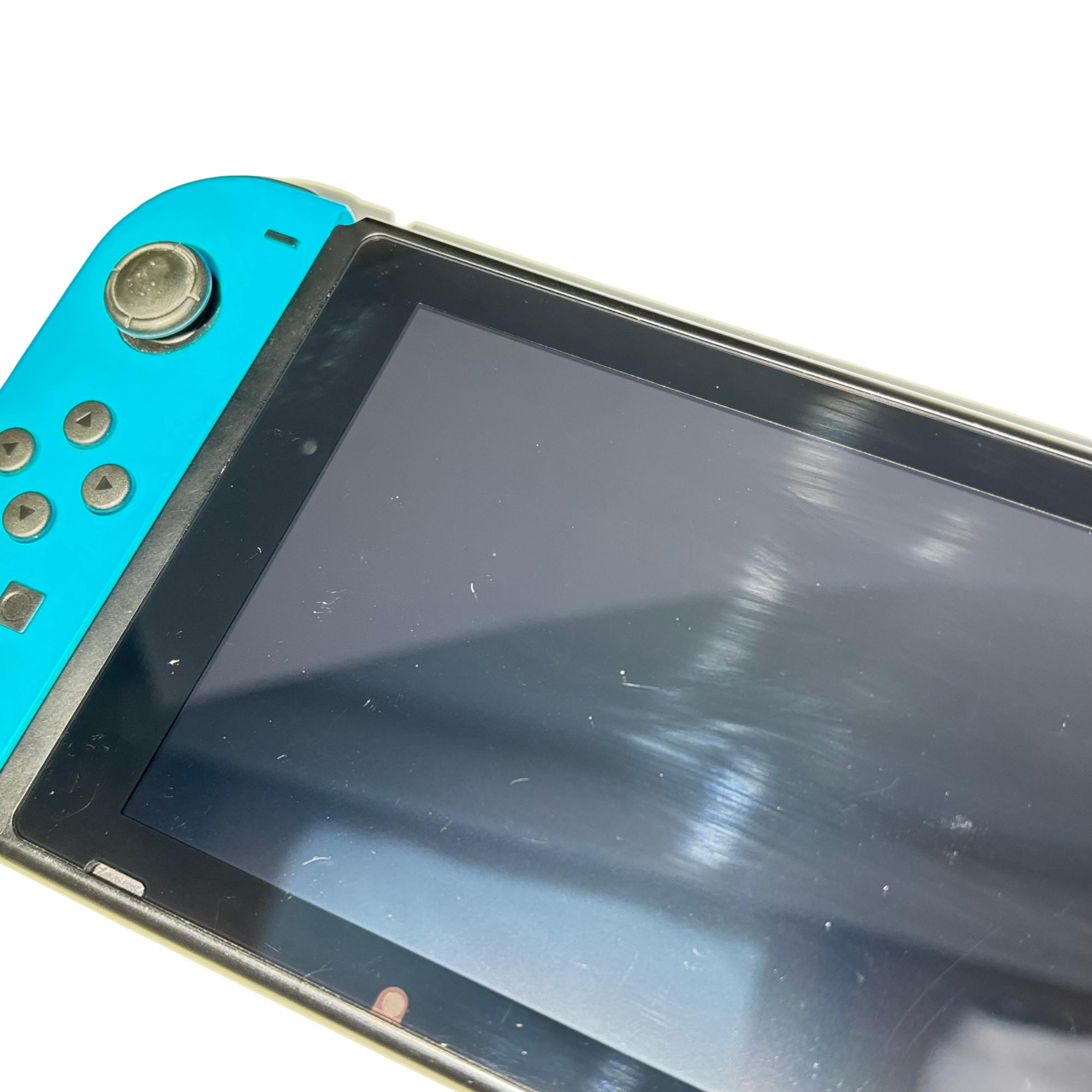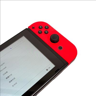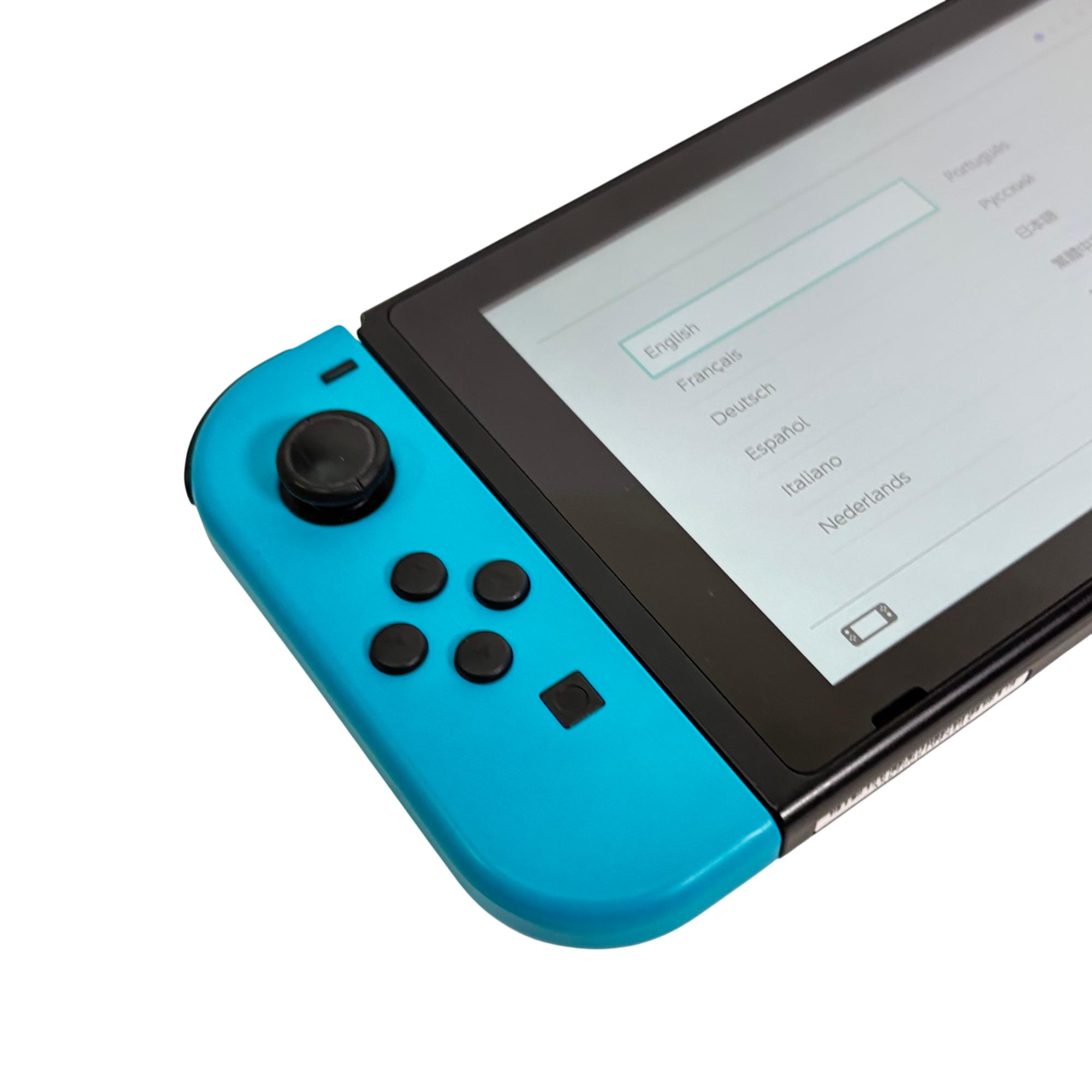 Nintendo Switch Console HAC-001 features a versatile design combining handheld and docked gameplay with neon red and blue Joy-Con controllers. This 32GB video game console supports multiple languages and offers seamless connectivity through its docking station and charger, providing an immersive gaming experience for players on the go or at home.