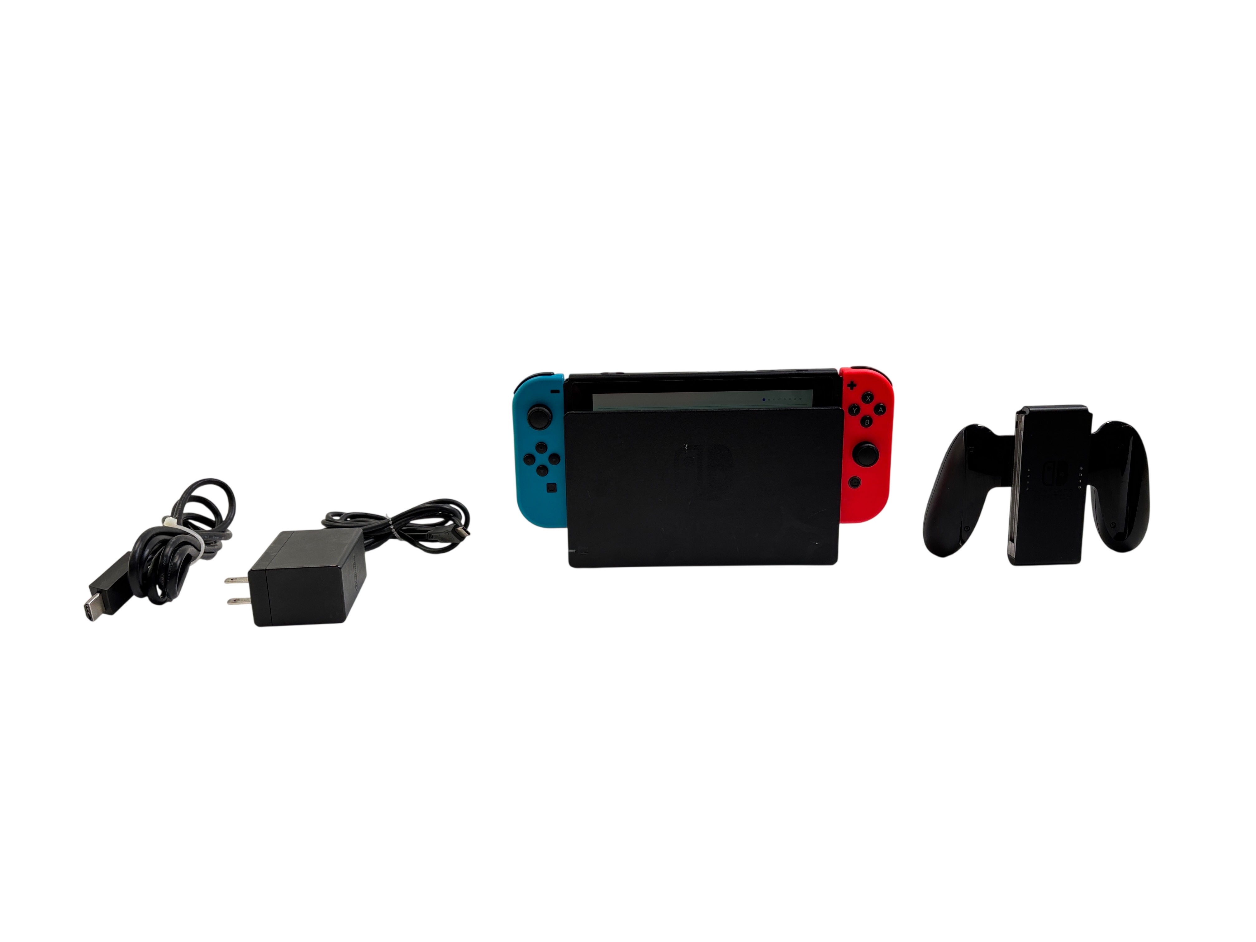 The Nintendo Switch HAC-001 is a versatile video game console that combines portable and home gaming in one device. This model features Neon Red and Neon Blue Joy-Con controllers and includes the original dock and AC charger for seamless TV connectivity. Powered by a 15V/2.6A input, the console offers flexible play options and a compact design measuring approximately 0.55 inches in height, 4.02 inches in width, and 9.41 inches in length, weighing just under a pound. Ideal for gamers seeking both handheld and traditional TV gaming experiences.