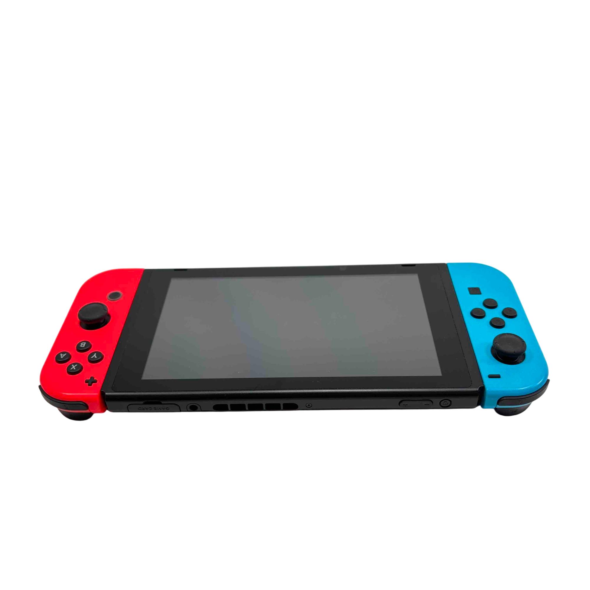 Experience the ultimate versatility in gaming with the Nintendo Switch HAC-001, featuring the vibrant Neon Red and Neon Blue Joy-Con controllers. This complete bundle includes the Switch tablet, TV dock, Joy-Con grip, wrist straps, power adapter, and HDMI cable—everything you need for both home and on-the-go play. Immerse yourself in a world of games with this lightly used, high-performance console, perfect for solo or multiplayer excitement.