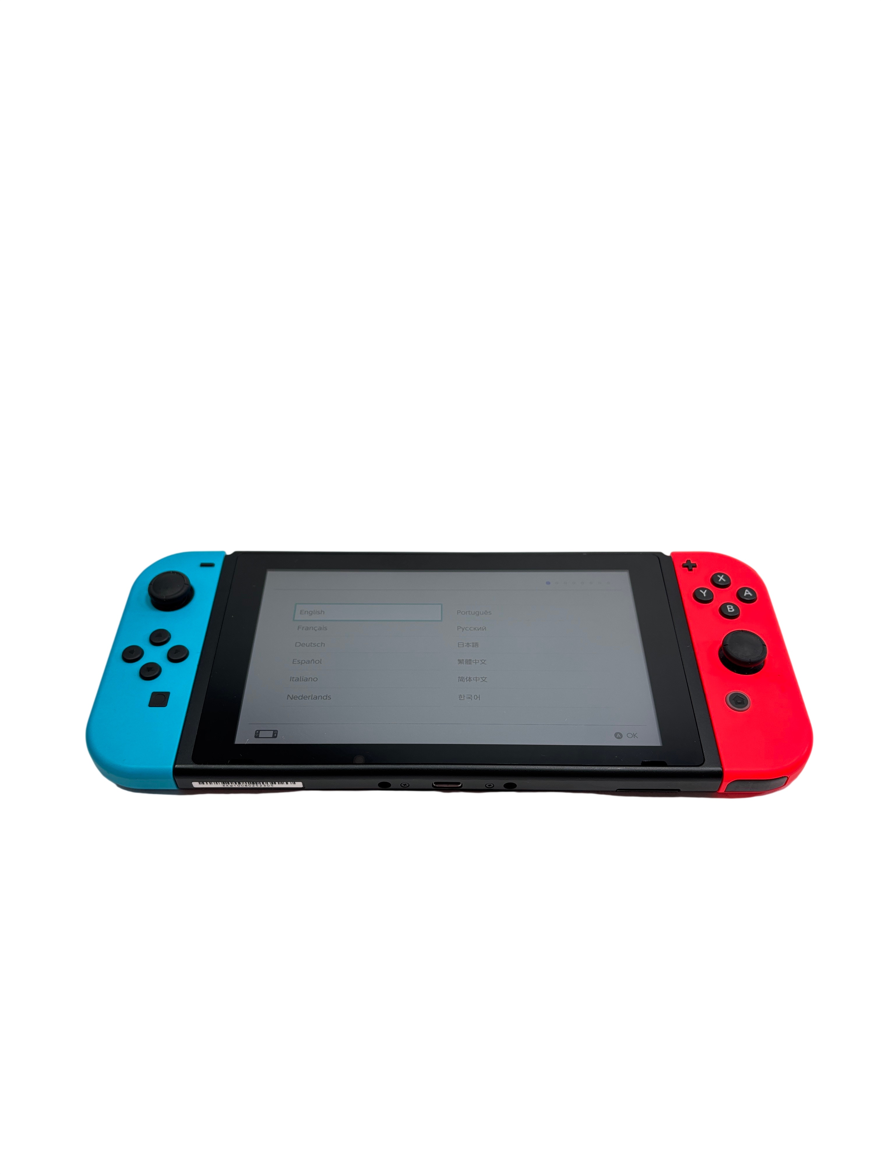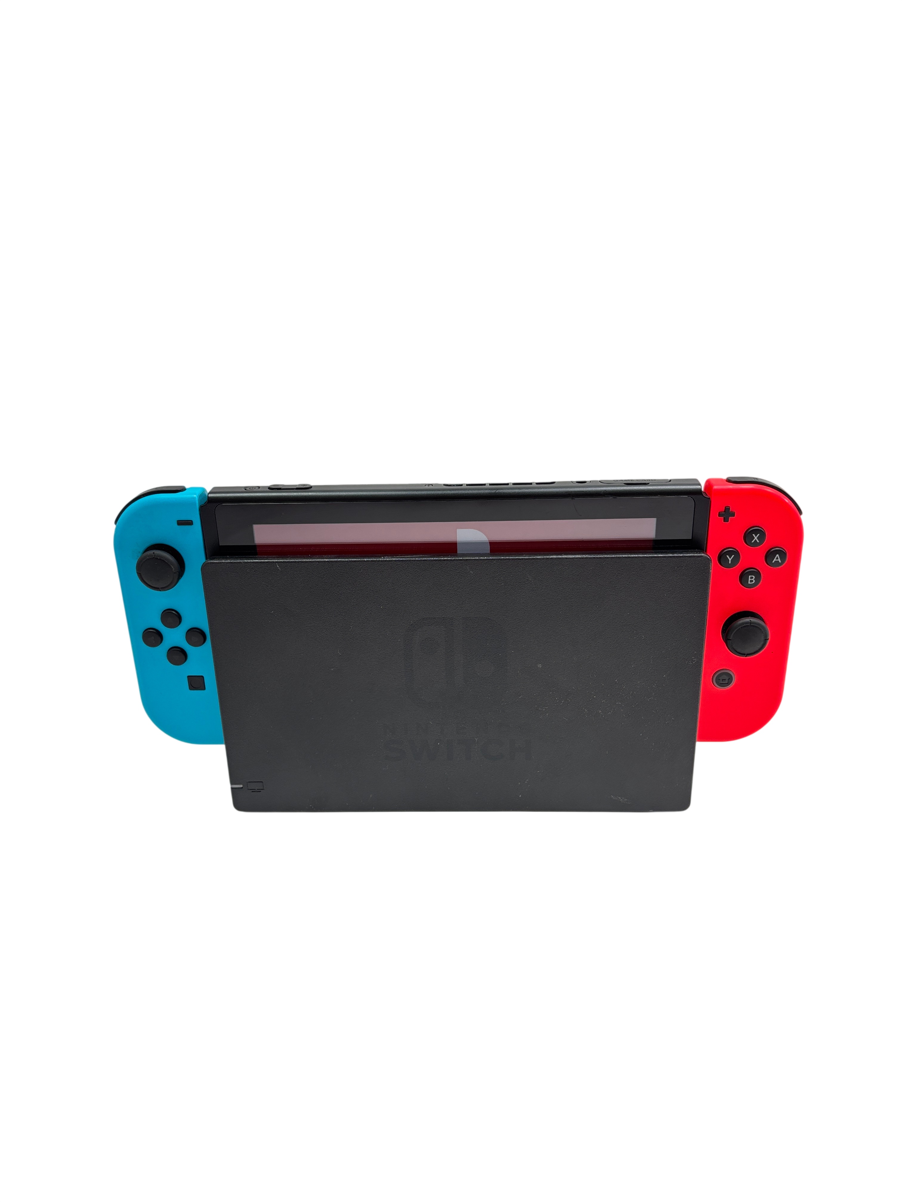 The Nintendo Switch HAC-001 (Model HAC-001(-01)) is a versatile hybrid video game console that allows seamless gaming on the go or on your TV. Featuring a 7-inch capacitive multi-touch screen and detachable Neon Blue and Neon Red Joy-Con controllers, this console offers flexible play styles. The included dock and cables enable easy TV connection for immersive gaming experiences. Compact and lightweight, it supports multiple languages and wireless connectivity, making it ideal for gamers seeking portability and home entertainment in one device.