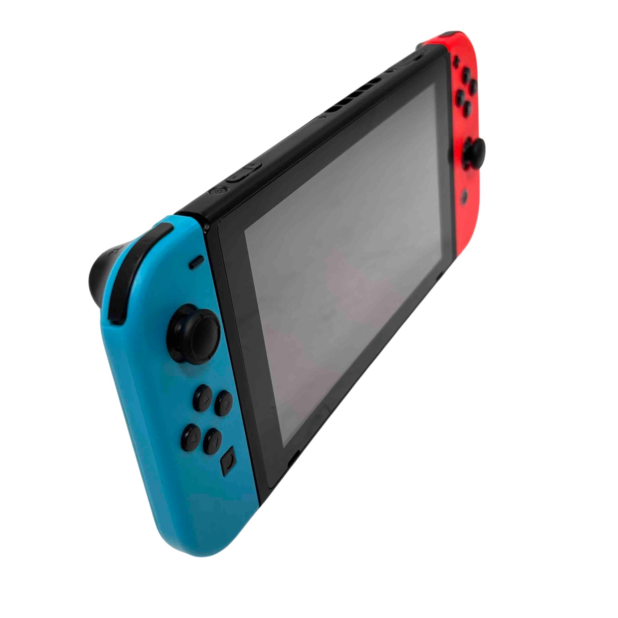 A versatile home video game system that offers both single and multiplayer gaming experiences. It is designed to be portable, allowing players to enjoy a full home console experience anytime, anywhere. The system can transition from a home console to a handheld device by simply lifting it from its dock. The Nintendo Switch features a 6.2-inch high-definition screen for vibrant, high-resolution graphics. It comes with two Joy-Con controllers that can act as standalone controllers, each equipped with an analog stick, face and shoulder buttons, motion-sensing technology, and new HD Rumble. These controllers can be inserted into a Joy-Con grip accessory for a traditional controller experience, or shared between two players for instant multiplayer gaming. The Nintendo Switch supports three play styles: TV, tabletop, and handheld modes, and can connect up to eight consoles over Wi-Fi for local multiplayer gaming.