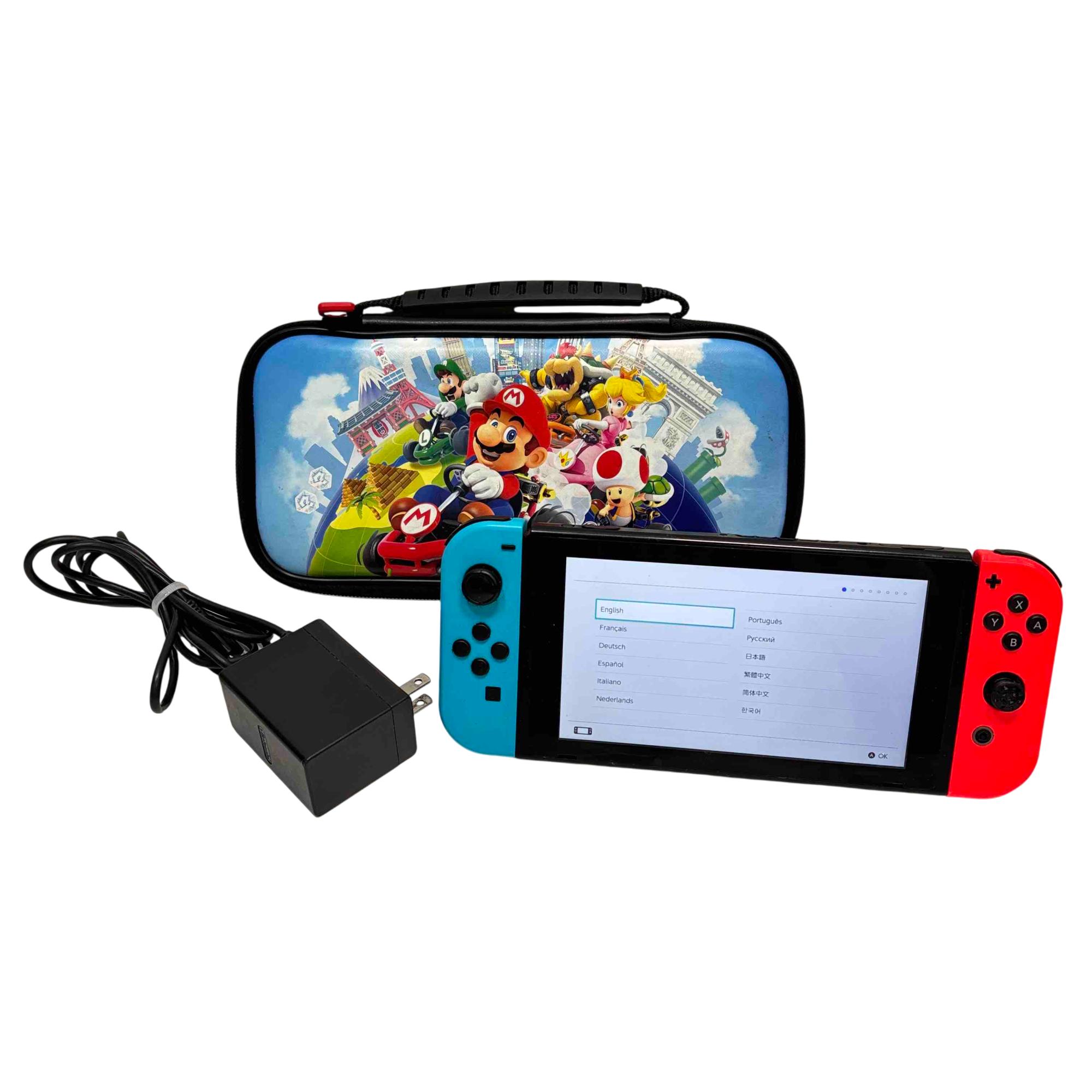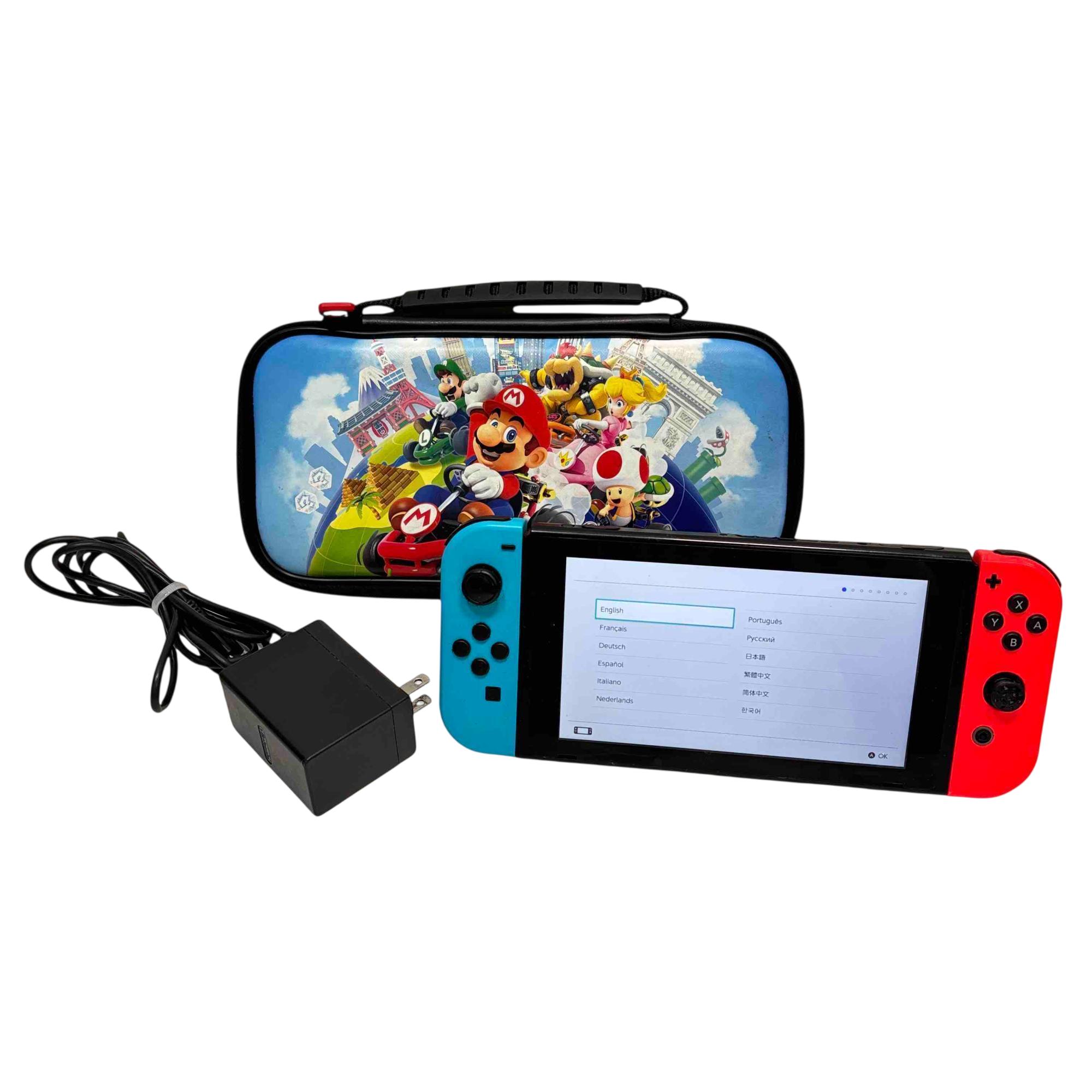 A versatile home video game system that offers both single and multiplayer gaming experiences. It is designed to be portable, allowing players to enjoy a full home console experience anytime, anywhere. The system can transition from a home console to a handheld device by simply lifting it from its dock. The Nintendo Switch features a 6.2-inch high-definition screen for vibrant, high-resolution graphics. It comes with two Joy-Con controllers that can act as standalone controllers, each equipped with an analog stick, face and shoulder buttons, motion-sensing technology, and new HD Rumble. These controllers can be inserted into a Joy-Con grip accessory for a traditional controller experience, or shared between two players for instant multiplayer gaming. The Nintendo Switch supports three play styles: TV, tabletop, and handheld modes, and can connect up to eight consoles over Wi-Fi for local multiplayer gaming.
