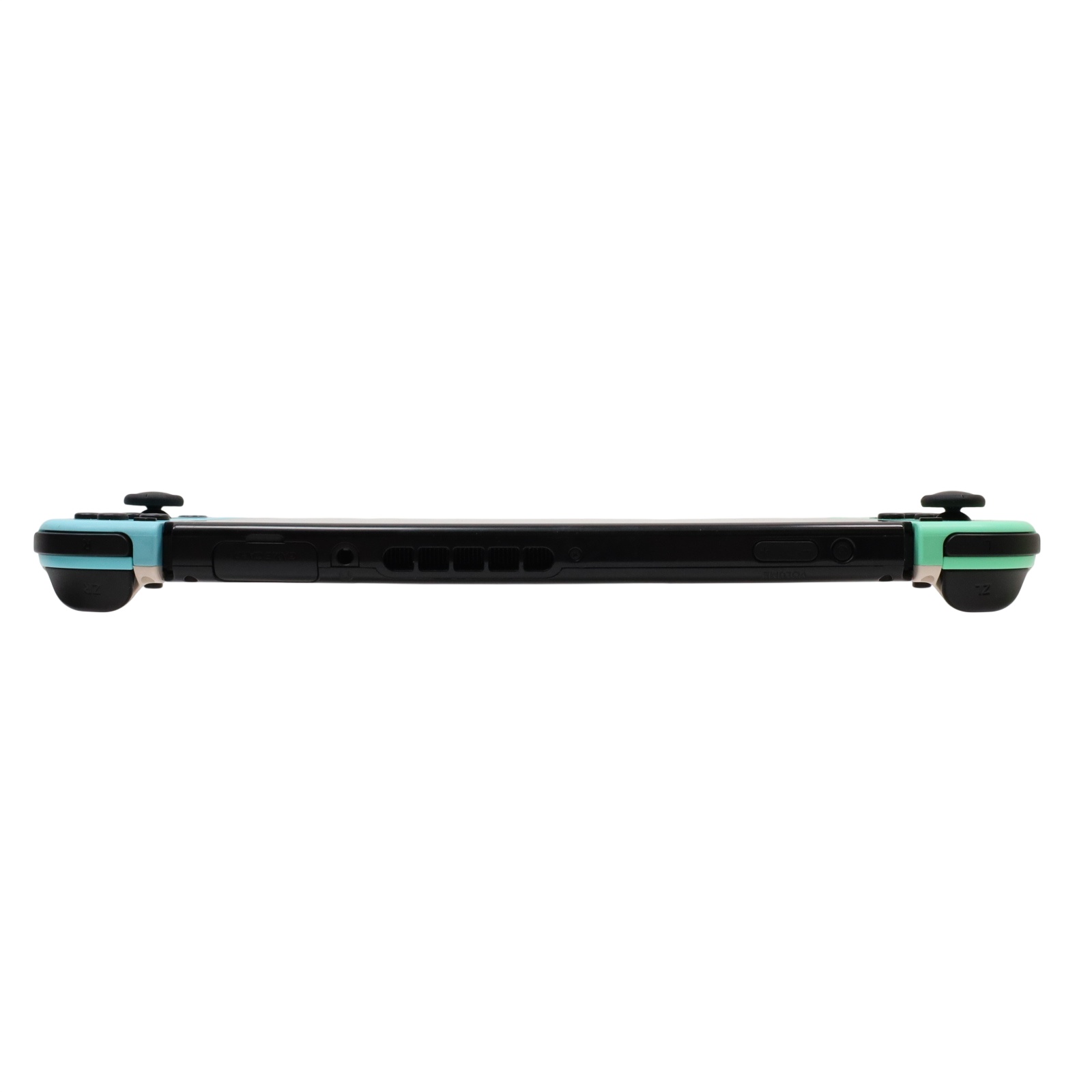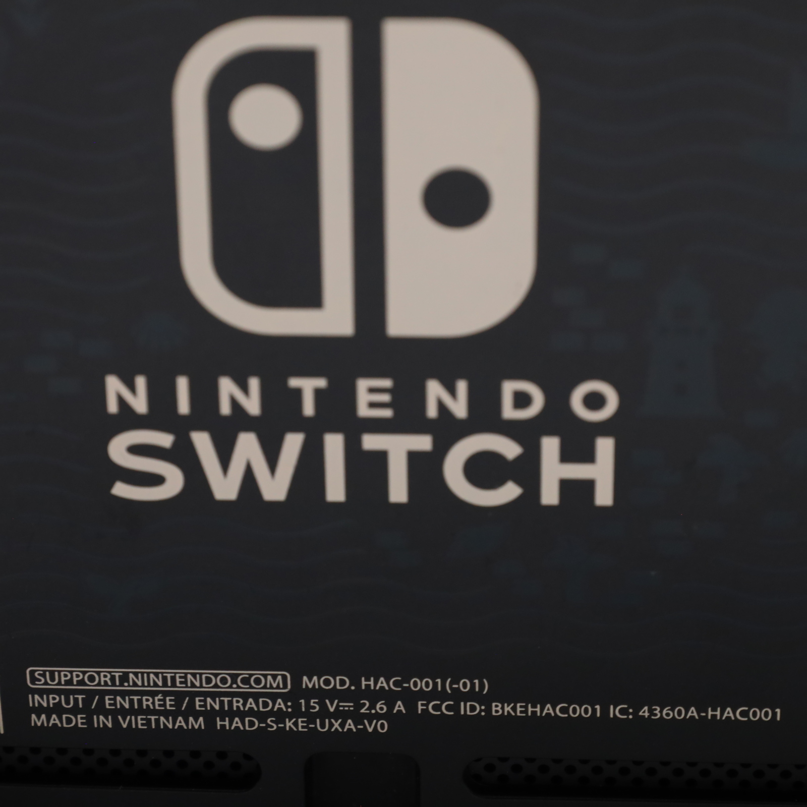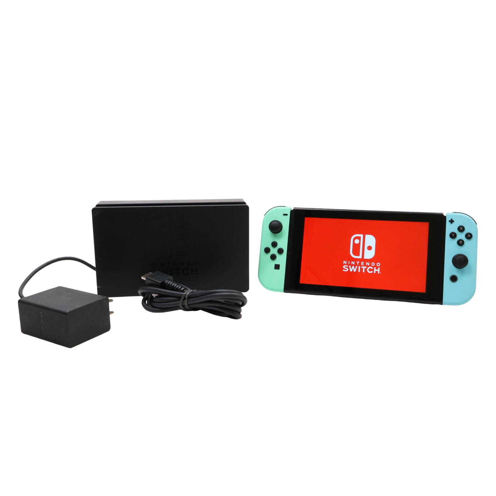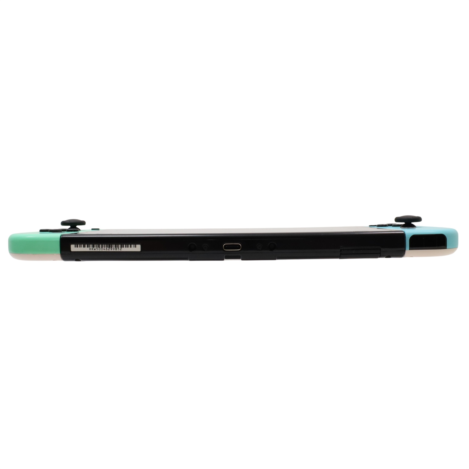 The Nintendo Switch Animal Crossing: New Horizons Edition is a special version of the popular Nintendo Switch console that features a unique design inspired by the beloved game, Animal Crossing: New Horizons. This limited edition console showcases a beautiful pastel blue and green color scheme, with a stylish pattern on the dock and Joy-Con controllers that depict iconic elements from the game, such as Tom Nook and his nephews, Timmy and Tommy. The console offers all the features and functionalities of the standard Nintendo Switch, including the ability to play games on the TV or in handheld mode, detachable Joy-Con controllers for multiplayer gaming, and access to a wide range of games and entertainment options. It's the perfect choice for Animal Crossing fans who want to immerse themselves in the charming world of the game while enjoying the versatility of the Nintendo Switch.