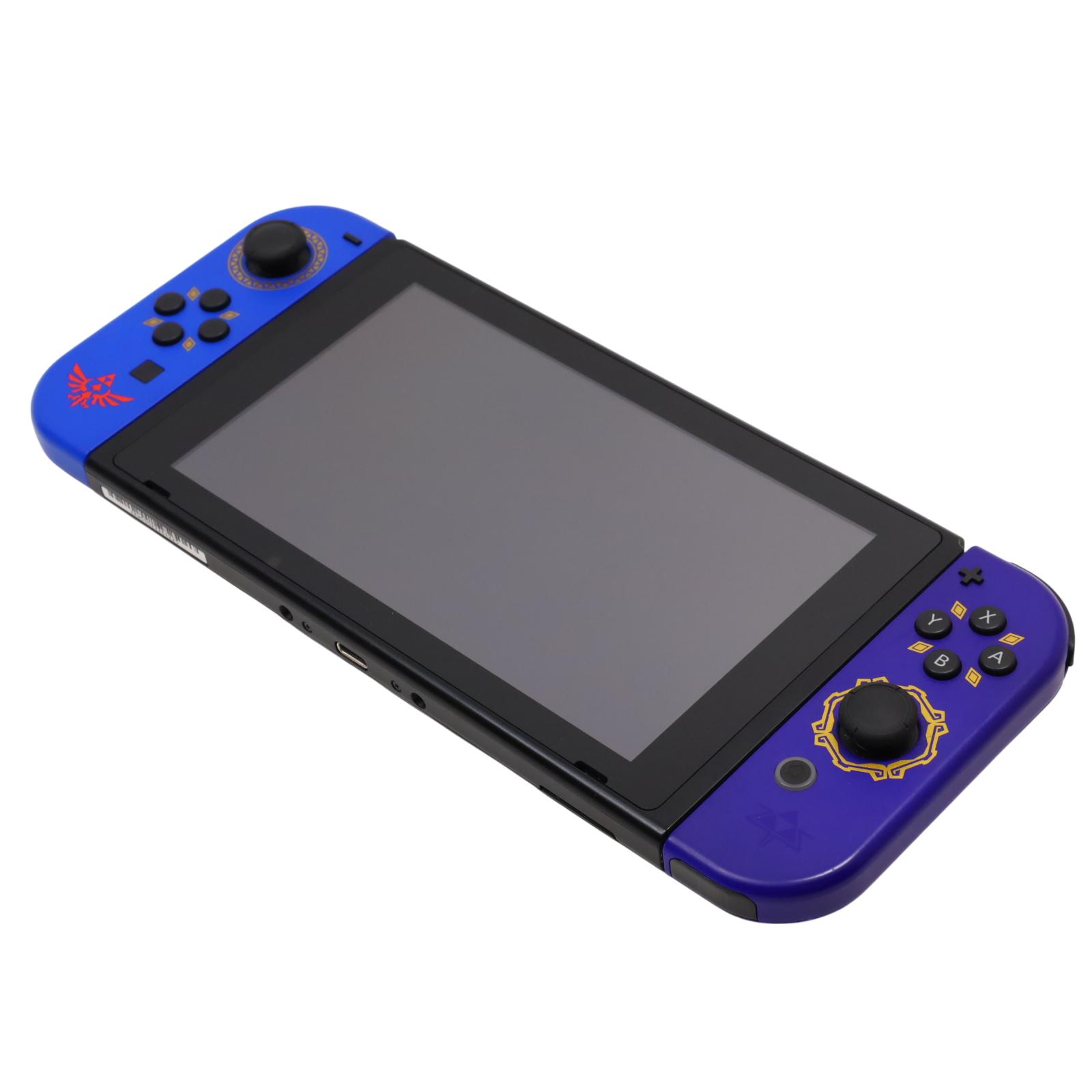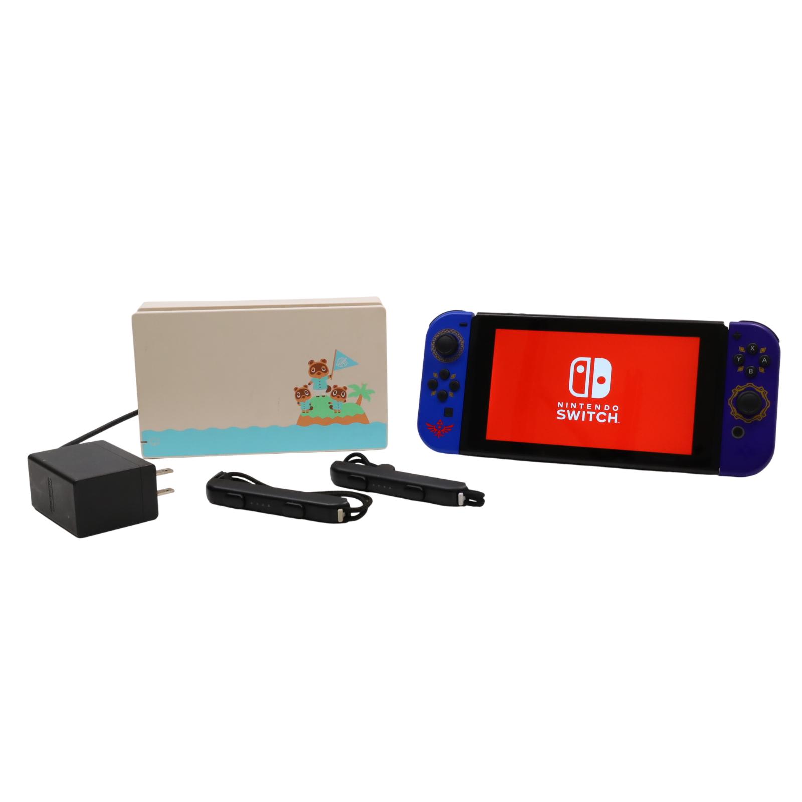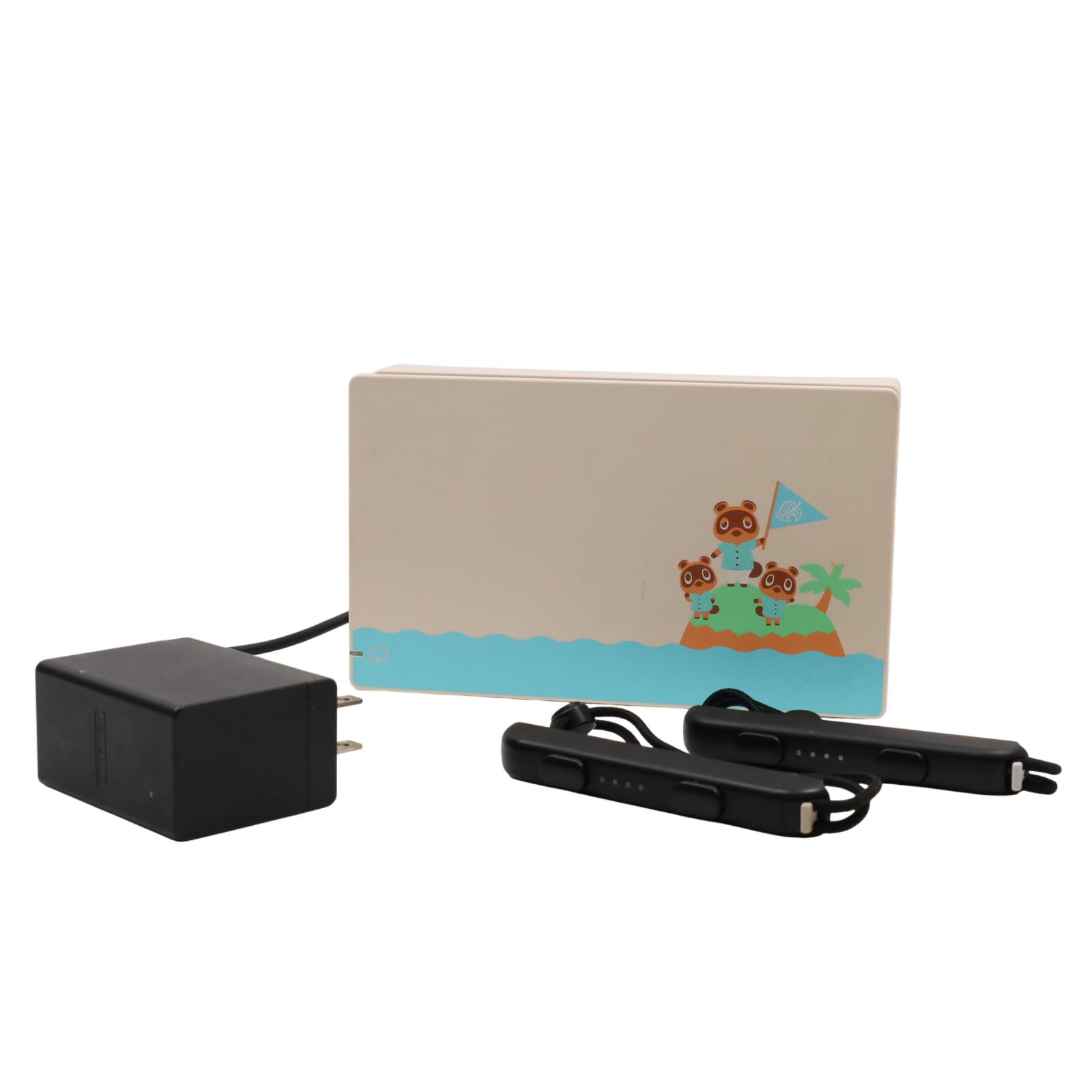 The Nintendo Switch Animal Crossing: New Horizons Edition is a special version of the popular Nintendo Switch console that features a unique design inspired by the beloved game, Animal Crossing: New Horizons. This limited edition console showcases a beautiful pastel blue and green color scheme, with a stylish pattern on the dock and Joy-Con controllers that depict iconic elements from the game, such as Tom Nook and his nephews, Timmy and Tommy. The console offers all the features and functionalities of the standard Nintendo Switch, including the ability to play games on the TV or in handheld mode, detachable Joy-Con controllers for multiplayer gaming, and access to a wide range of games and entertainment options. It's the perfect choice for Animal Crossing fans who want to immerse themselves in the charming world of the game while enjoying the versatility of the Nintendo Switch.