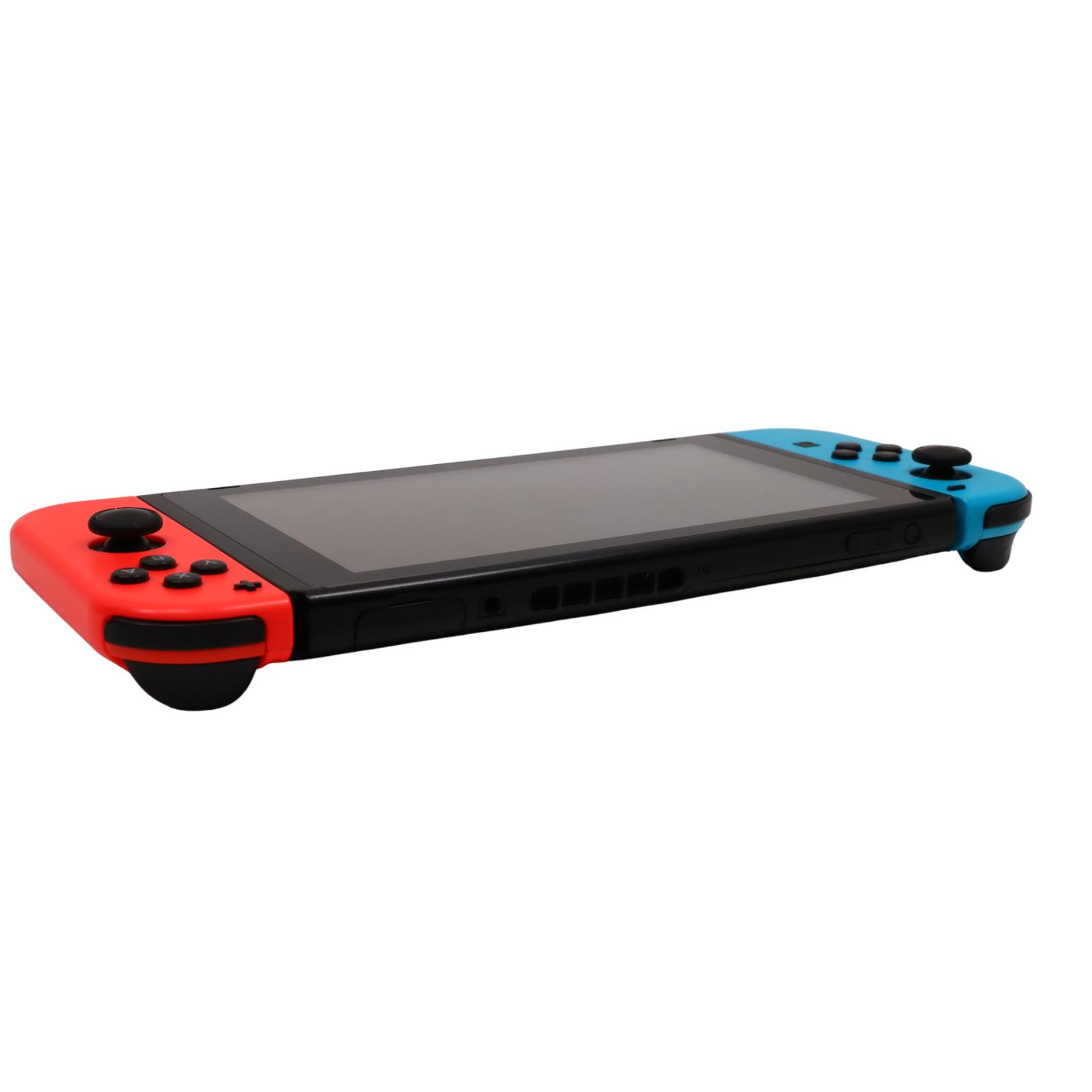 A versatile home video game system that offers both single and multiplayer gaming experiences. It is designed to be portable, allowing players to enjoy a full home console experience anytime, anywhere. The system can transition from a home console to a handheld device by simply lifting it from its dock. The Nintendo Switch features a 6.2-inch high-definition screen for vibrant, high-resolution graphics. It comes with two Joy-Con controllers that can act as standalone controllers, each equipped with an analog stick, face and shoulder buttons, motion-sensing technology, and new HD Rumble. These controllers can be inserted into a Joy-Con grip accessory for a traditional controller experience, or shared between two players for instant multiplayer gaming. The Nintendo Switch supports three play styles: TV, tabletop, and handheld modes, and can connect up to eight consoles over Wi-Fi for local multiplayer gaming.