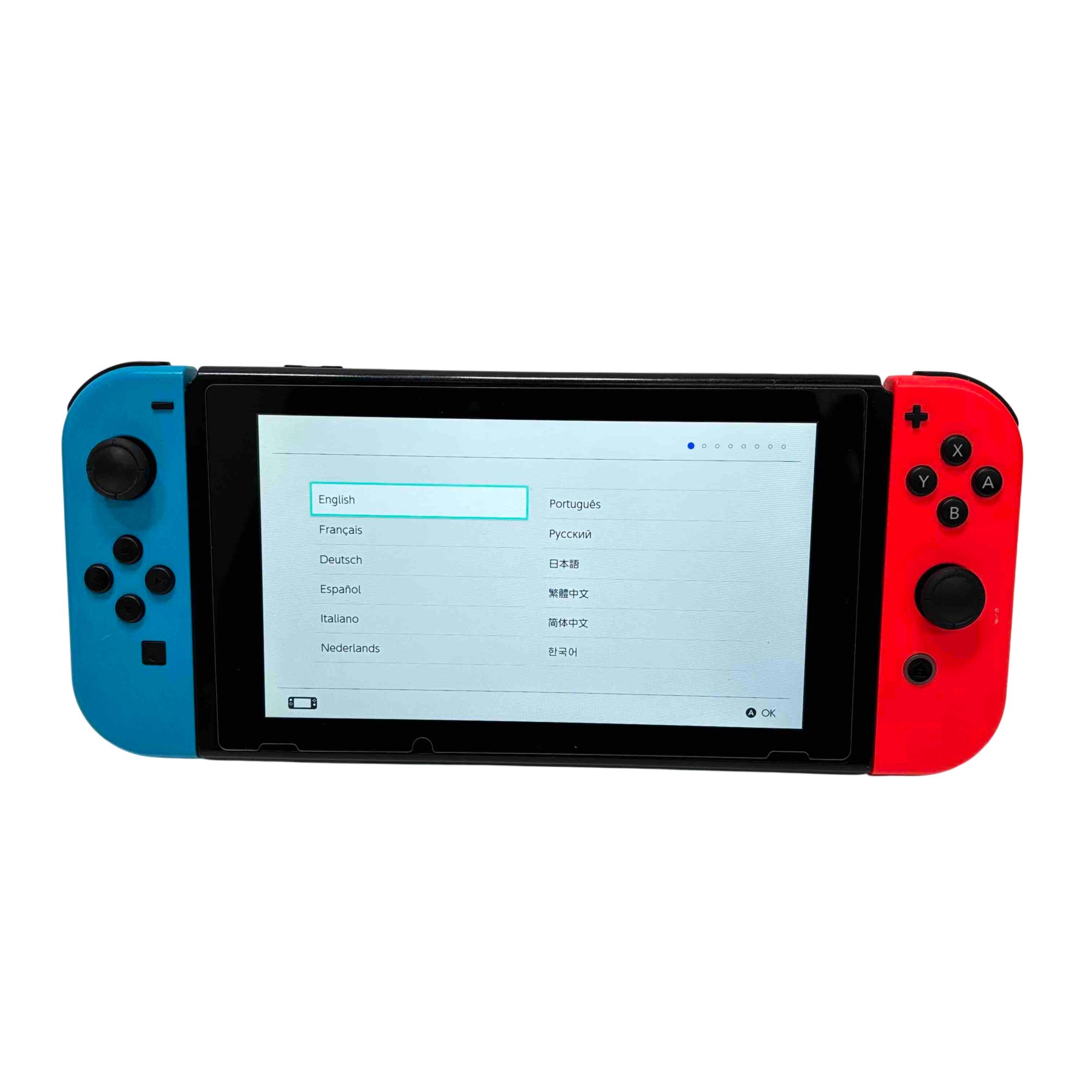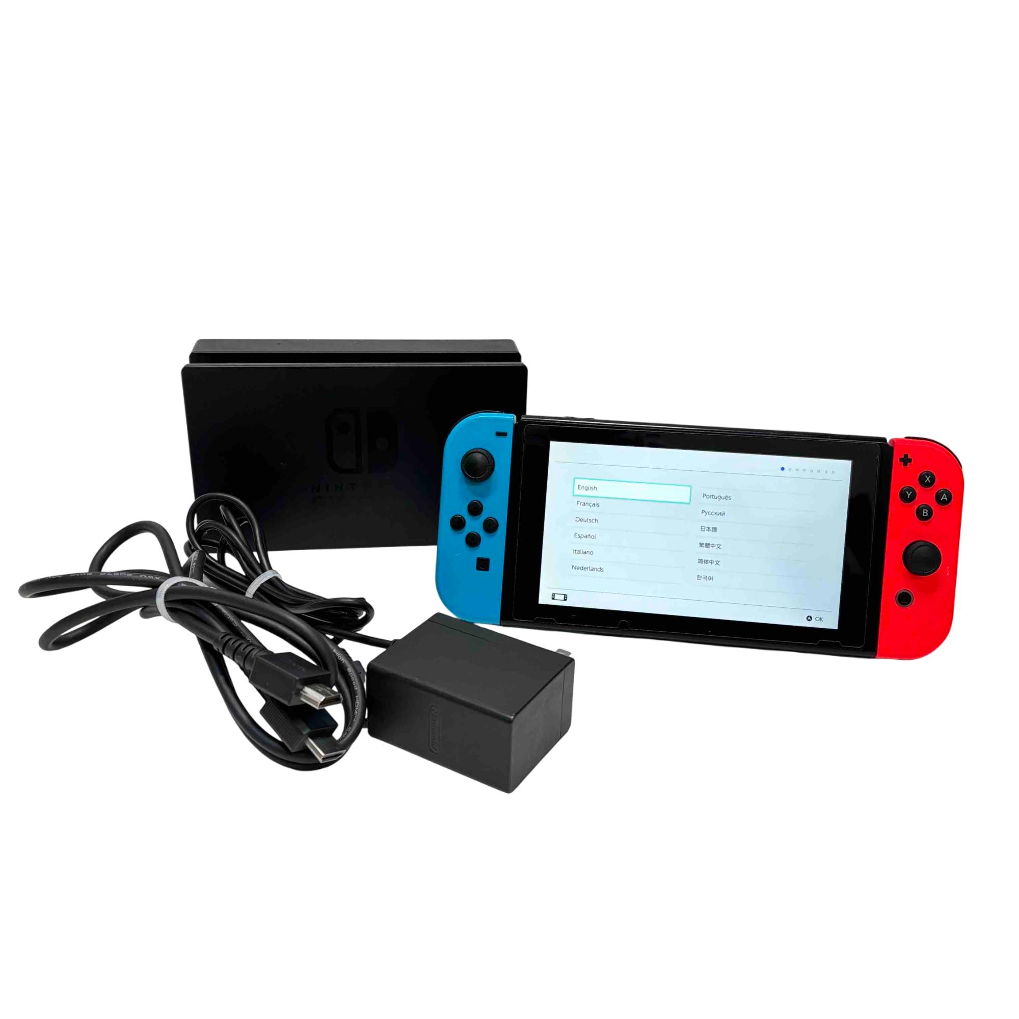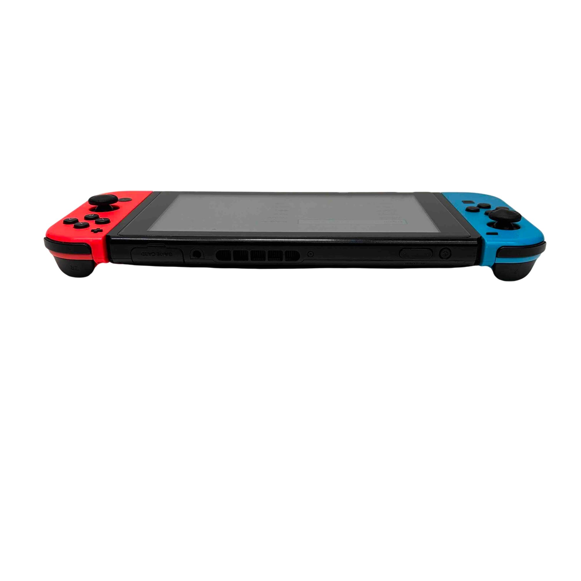 A versatile home video game system that offers both single and multiplayer gaming experiences. It is designed to be portable, allowing players to enjoy a full home console experience anytime, anywhere. The system can transition from a home console to a handheld device by simply lifting it from its dock. The Nintendo Switch features a 6.2-inch high-definition screen for vibrant, high-resolution graphics. It comes with two Joy-Con controllers that can act as standalone controllers, each equipped with an analog stick, face and shoulder buttons, motion-sensing technology, and new HD Rumble. These controllers can be inserted into a Joy-Con grip accessory for a traditional controller experience, or shared between two players for instant multiplayer gaming. The Nintendo Switch supports three play styles: TV, tabletop, and handheld modes, and can connect up to eight consoles over Wi-Fi for local multiplayer gaming.