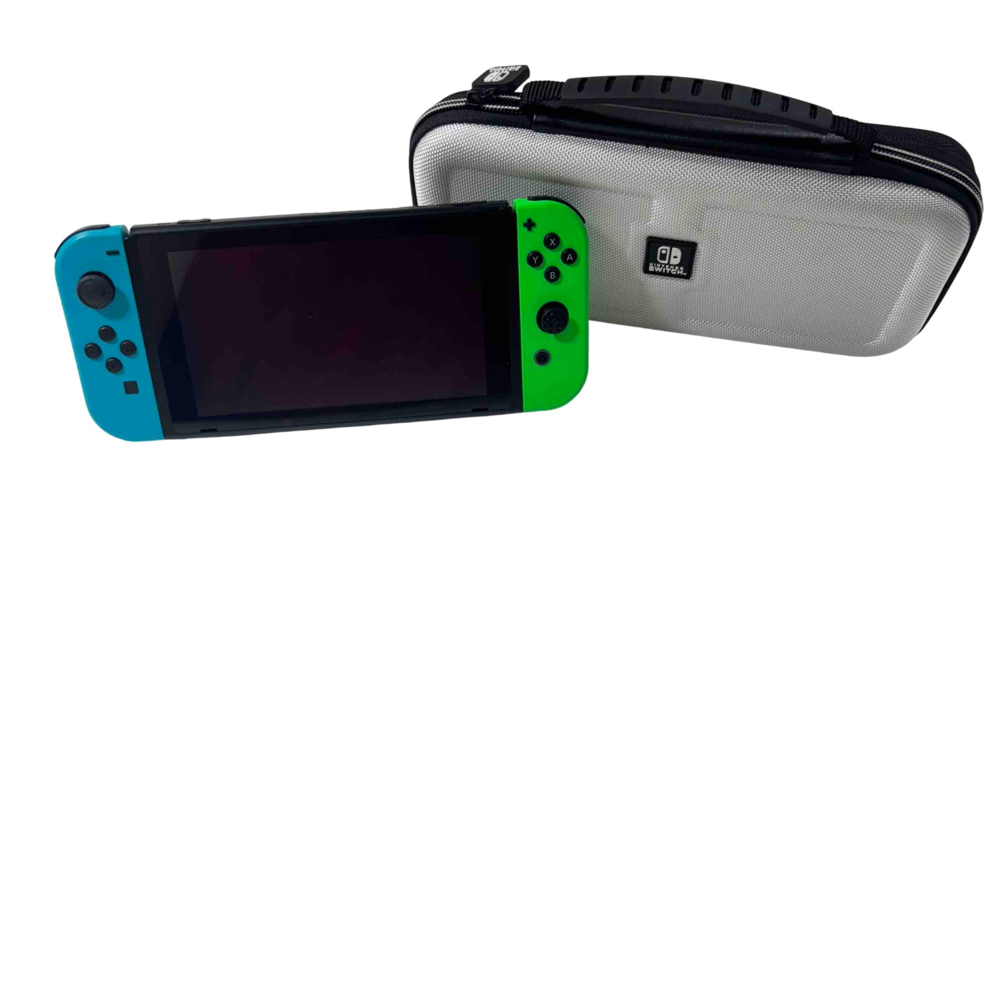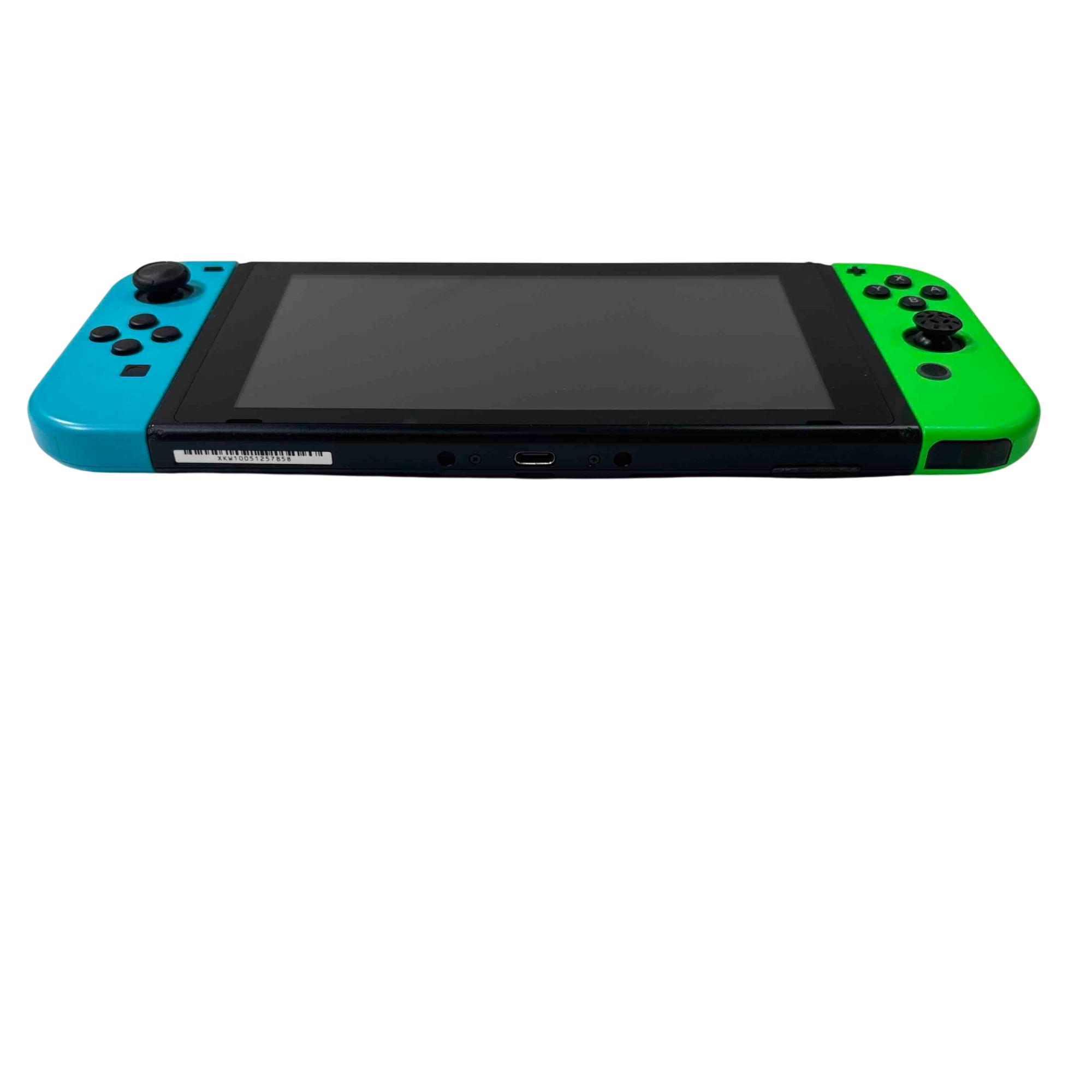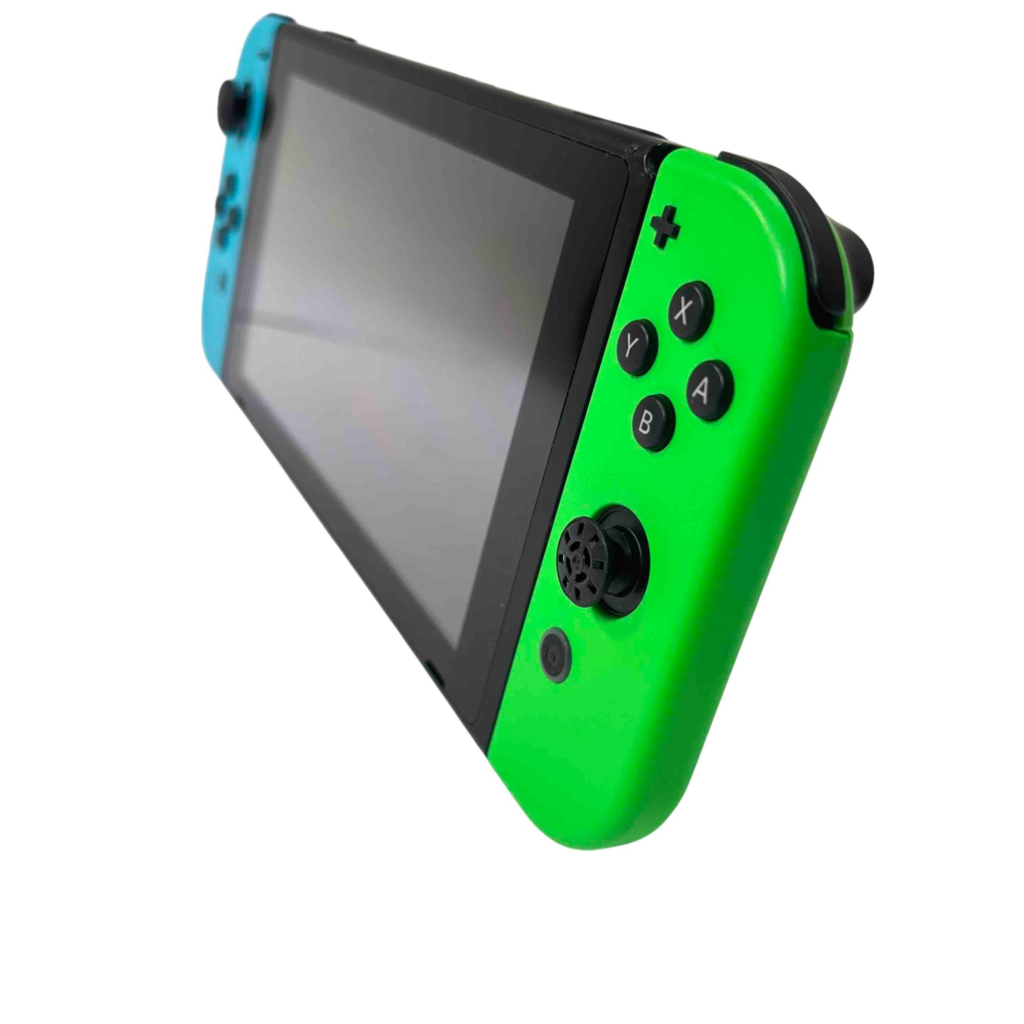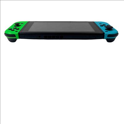 A versatile home video game system that offers both single and multiplayer gaming experiences. It is designed to be portable, allowing players to enjoy a full home console experience anytime, anywhere. The system can transition from a home console to a handheld device by simply lifting it from its dock. The Nintendo Switch features a 6.2-inch high-definition screen for vibrant, high-resolution graphics. It comes with two Joy-Con controllers that can act as standalone controllers, each equipped with an analog stick, face and shoulder buttons, motion-sensing technology, and new HD Rumble. These controllers can be inserted into a Joy-Con grip accessory for a traditional controller experience, or shared between two players for instant multiplayer gaming. The Nintendo Switch supports three play styles: TV, tabletop, and handheld modes, and can connect up to eight consoles over Wi-Fi for local multiplayer gaming.