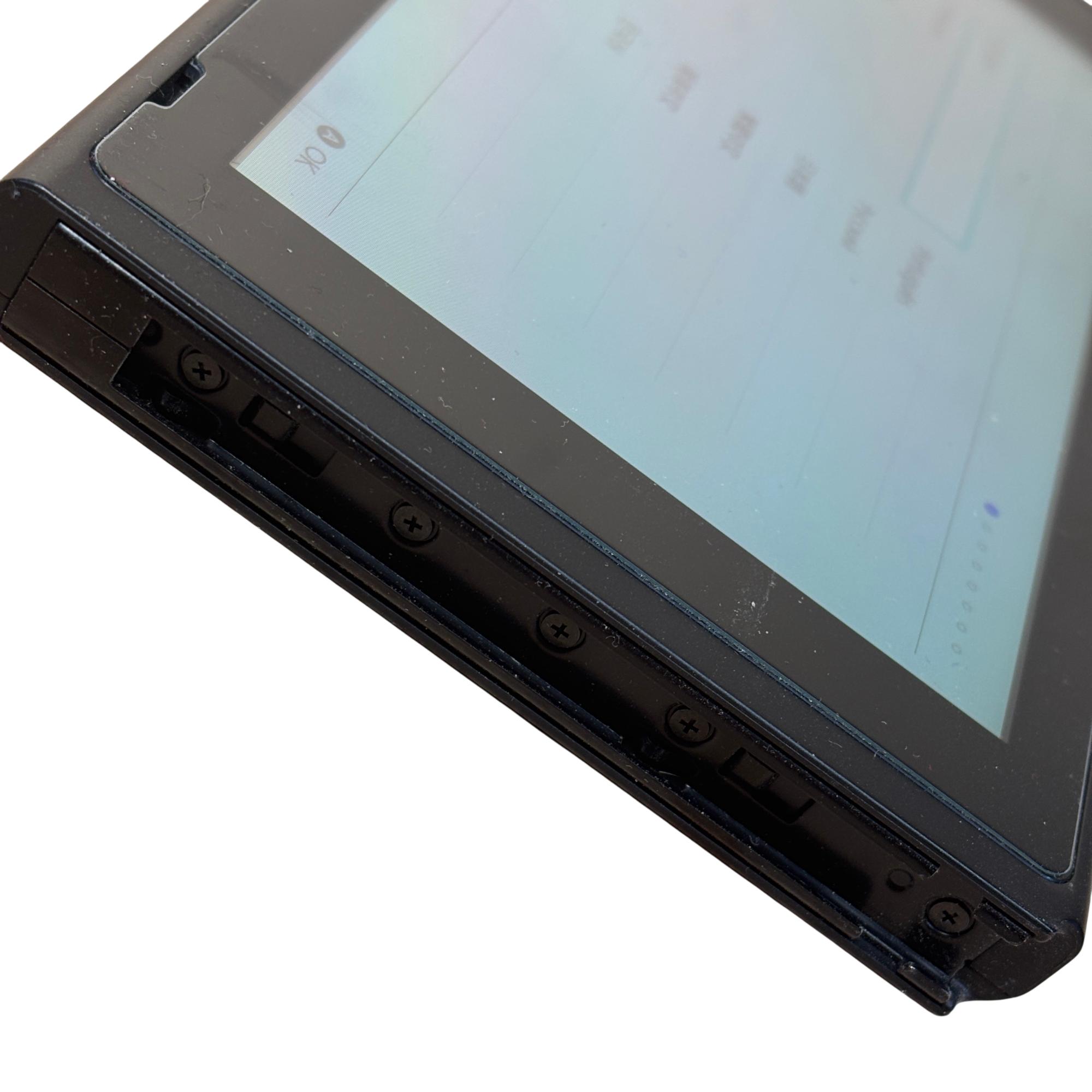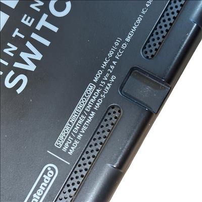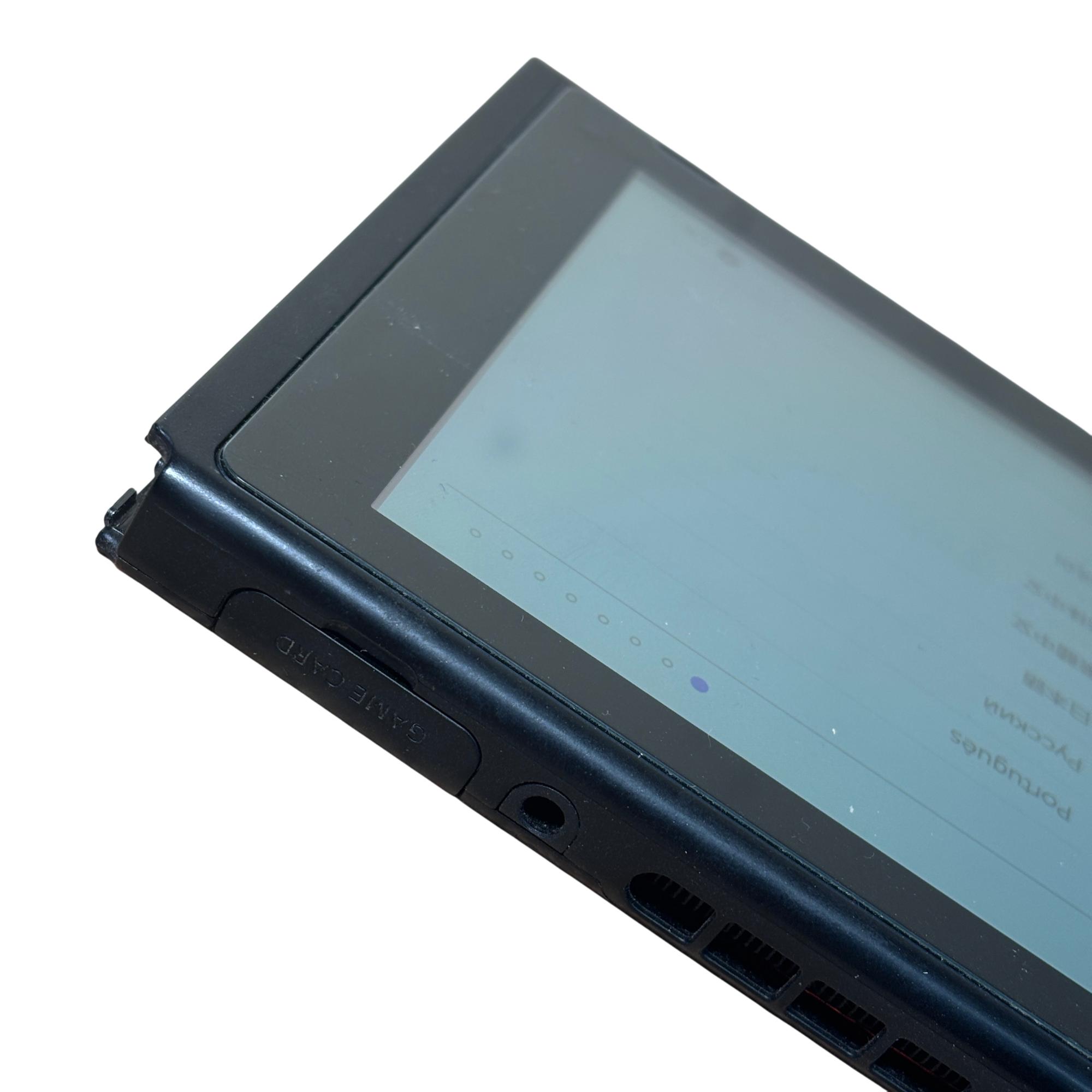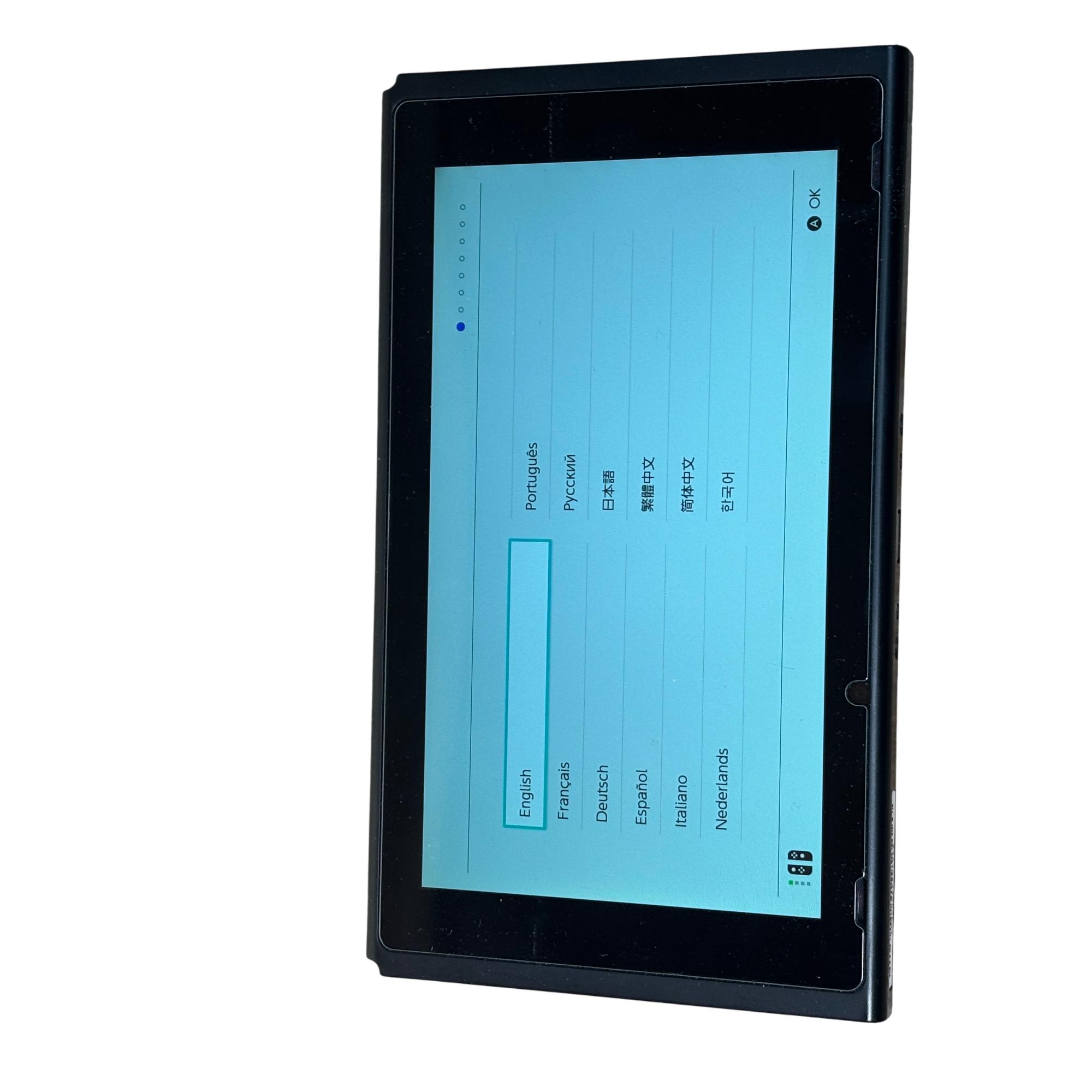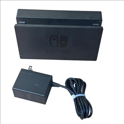 Nintendo Switch Console HAC-001(-01) features a versatile gaming system with neon red and blue Joy-Con controllers designed for both handheld and docked play. The original dock allows seamless connection to a TV for immersive gaming experiences, while the compact design incorporates efficient power input and connectivity options for easy setup.