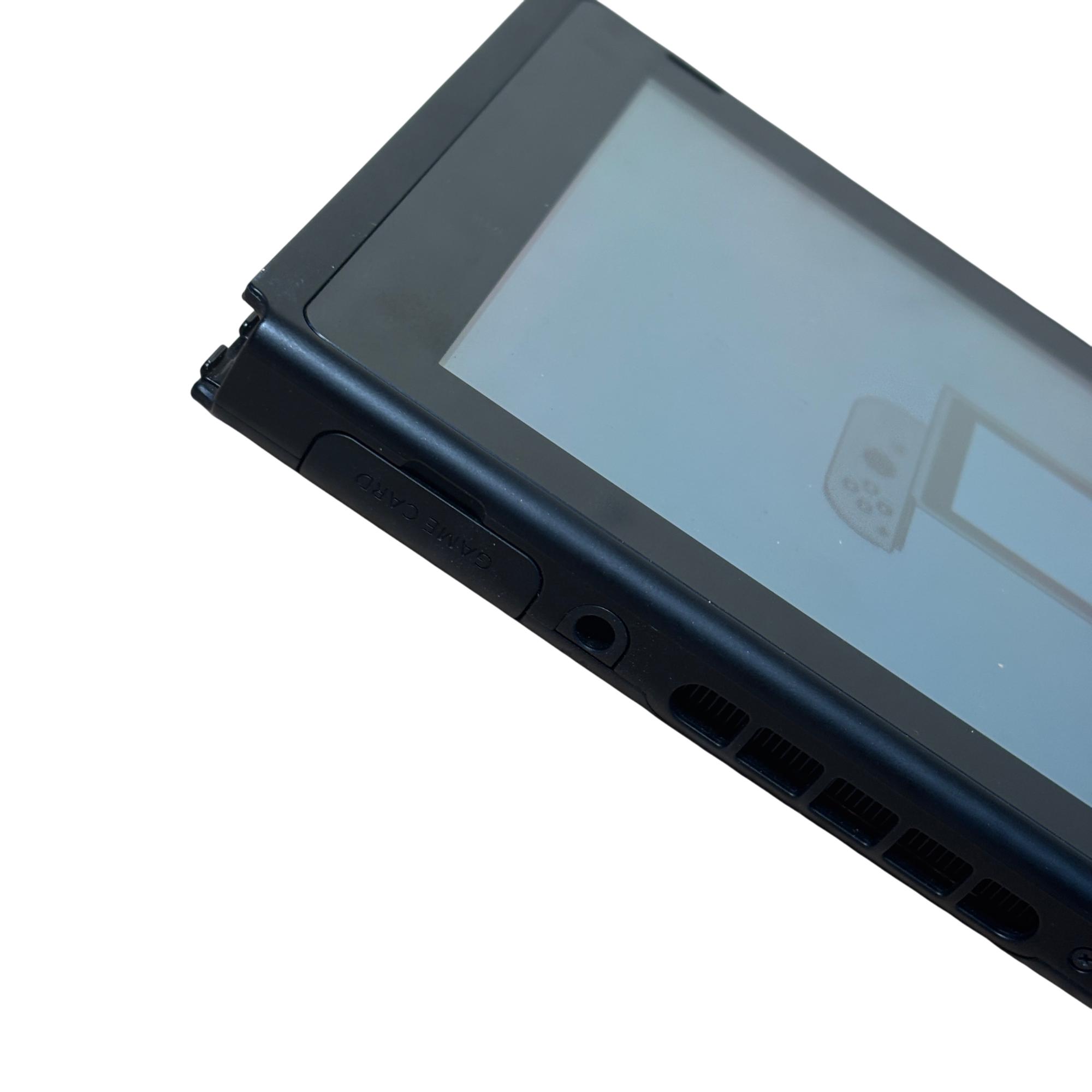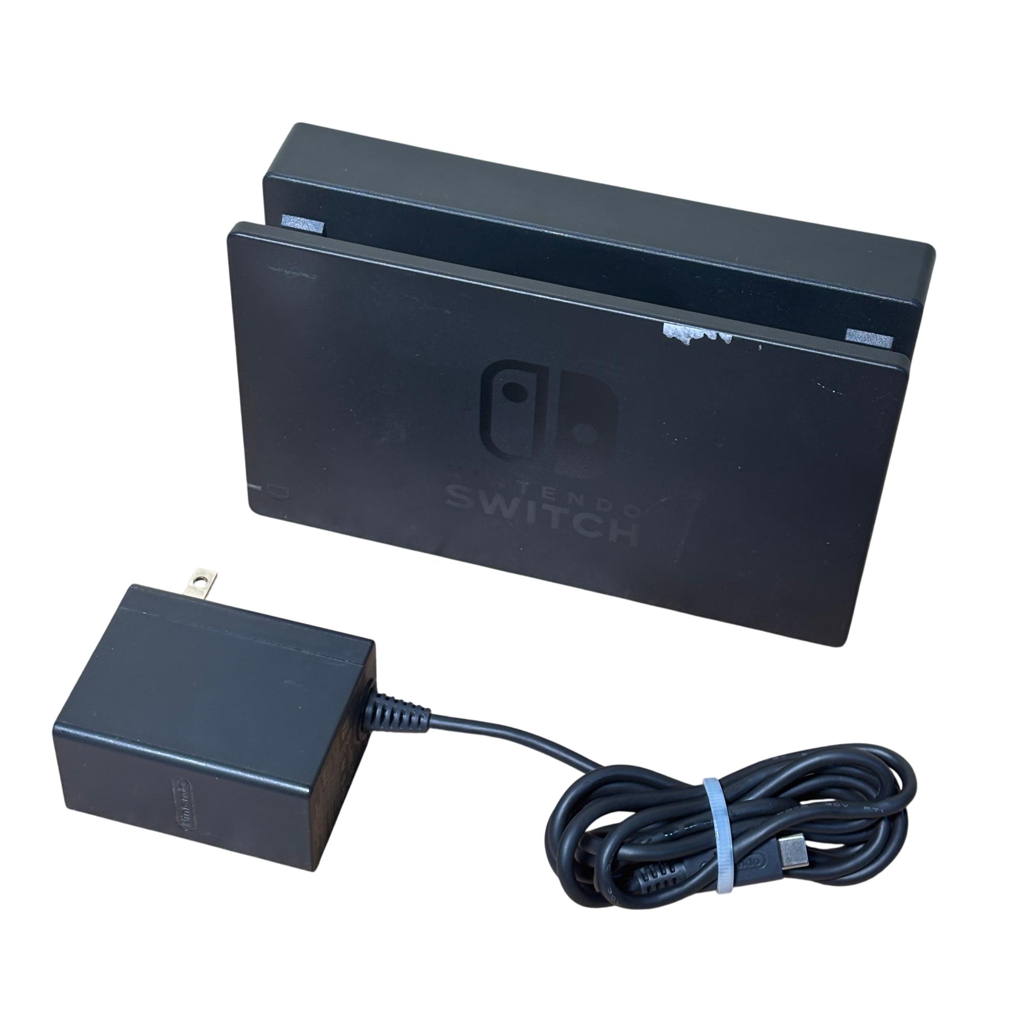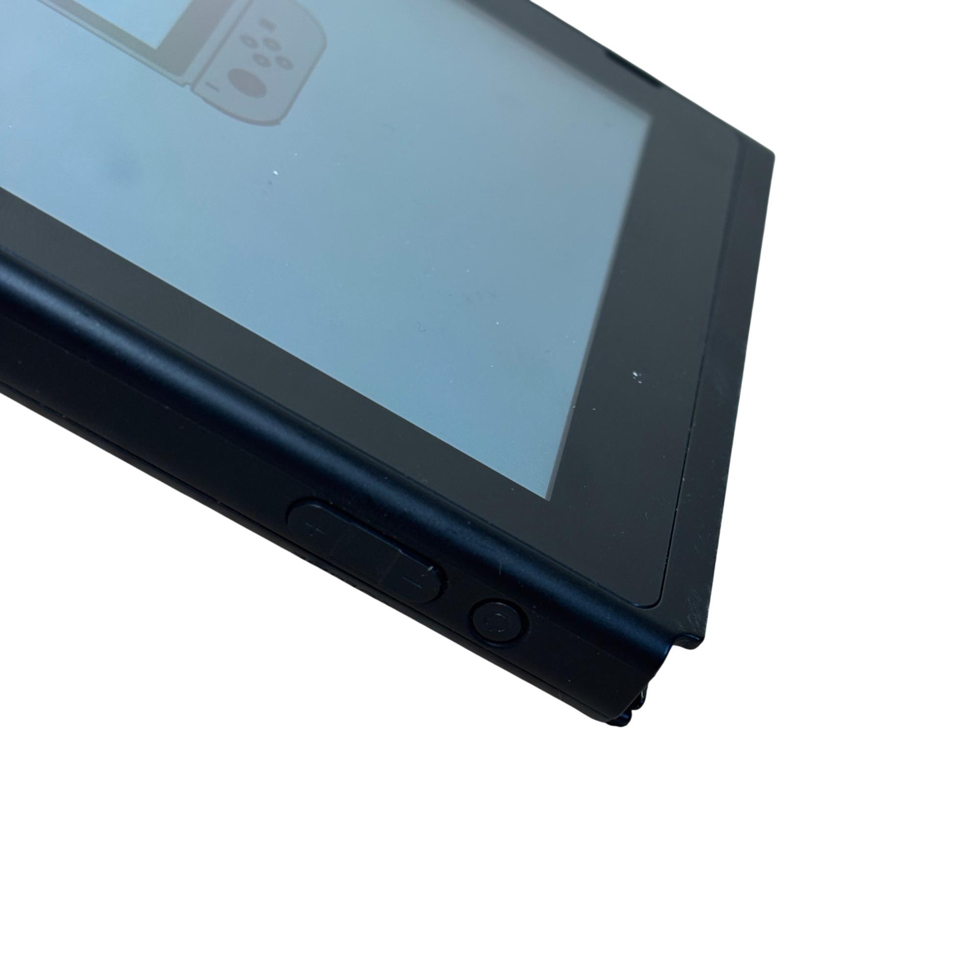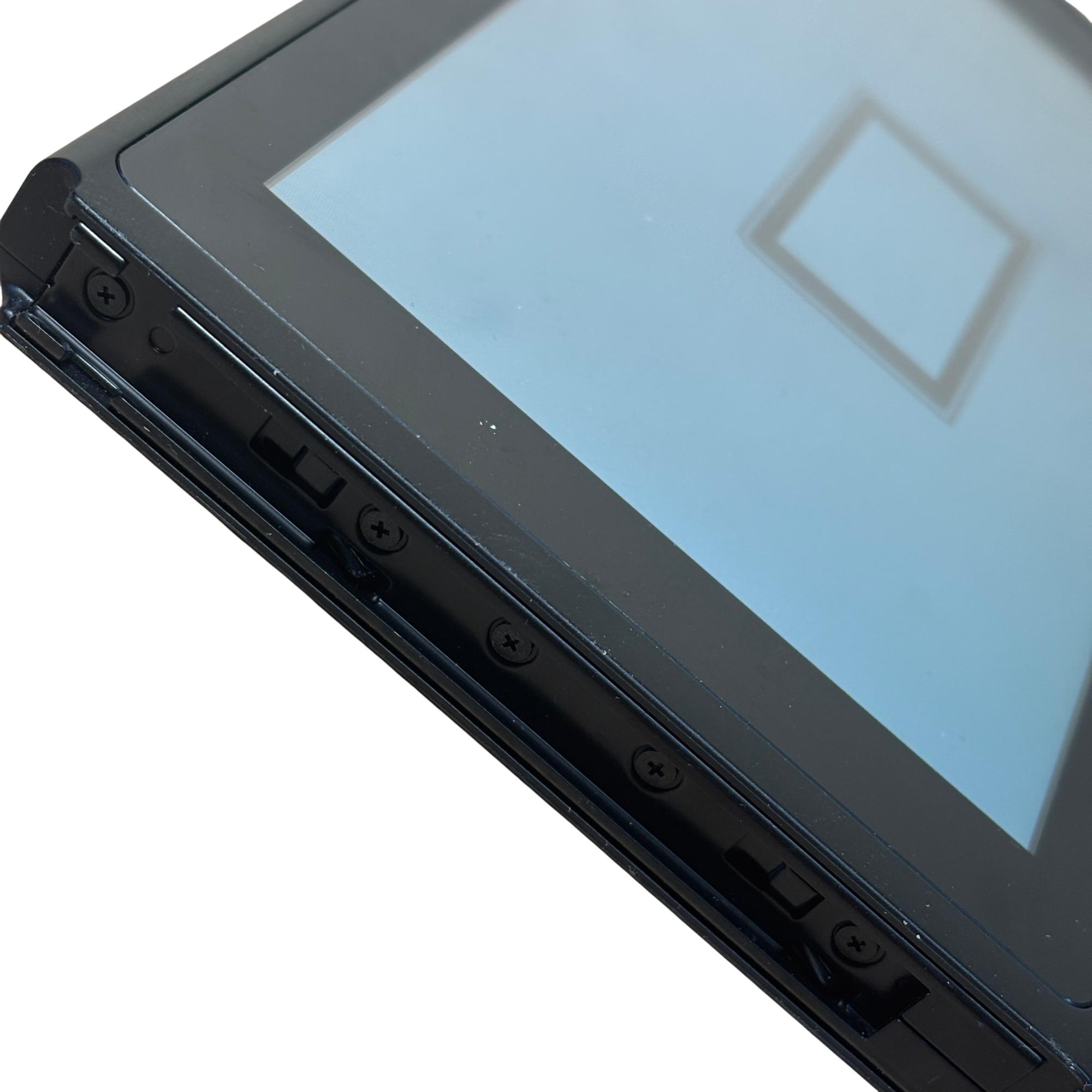 Nintendo Switch 2017 Model HAC-001 Console features a sleek rectangular design with a vibrant blue screen and detachable neon blue and neon red Joy-Con controllers for versatile gaming. This video game system includes a compact dock for seamless TV connectivity and precise control with ergonomic buttons. Known for combining handheld flexibility with home console power, this model supports immersive gameplay and quick setup through HDMI connectivity.