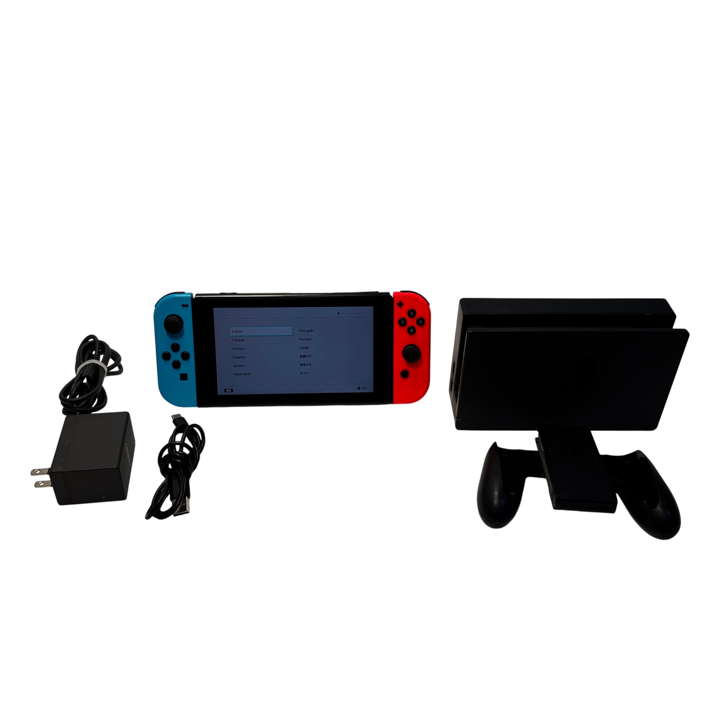 The Nintendo Switch is a versatile hybrid video game console that allows you to play games on the go or dock it for TV play. This set includes the original Nintendo Switch console with Neon Blue and Neon Red Joy-Con controllers, a docking station for seamless TV connection, and the official AC adapter for power. With a compact size of approximately 9.41 inches in length and weighing under a pound, the Switch offers portability without sacrificing performance. Ideal for gamers who want flexibility between handheld and home gaming experiences.