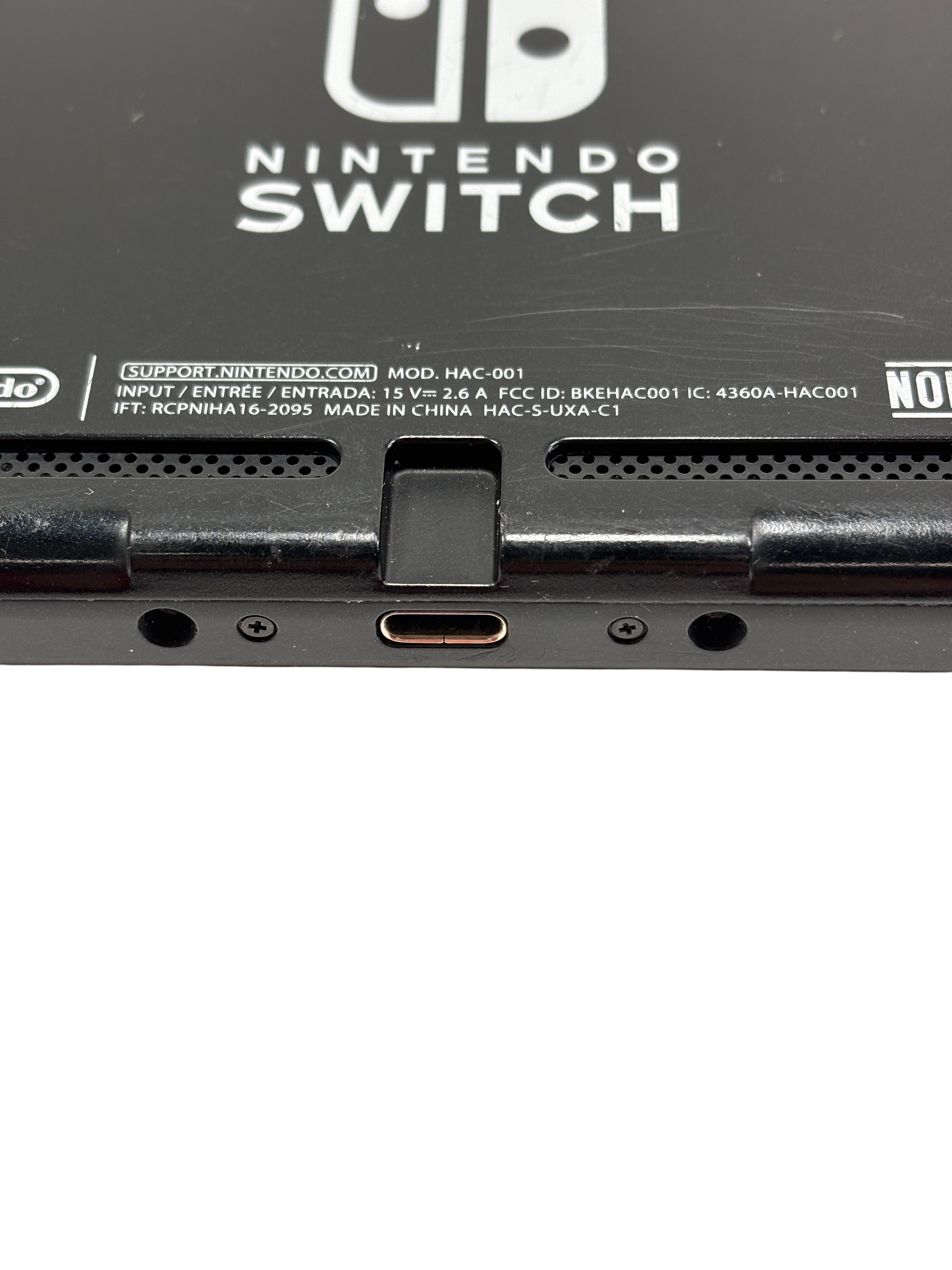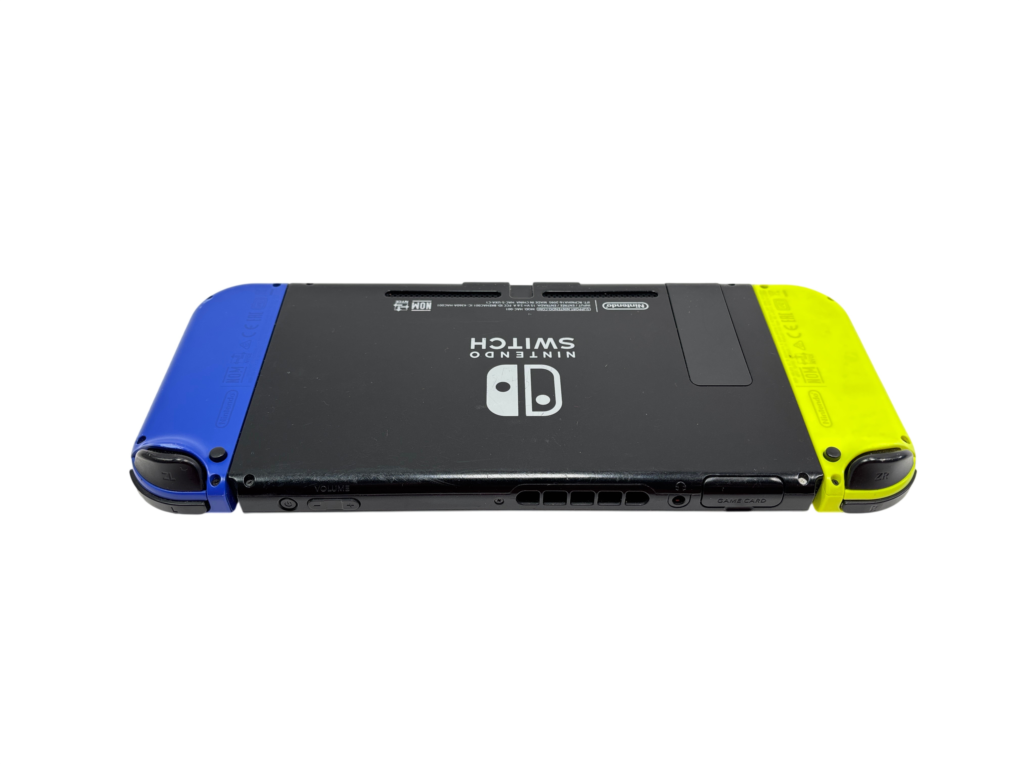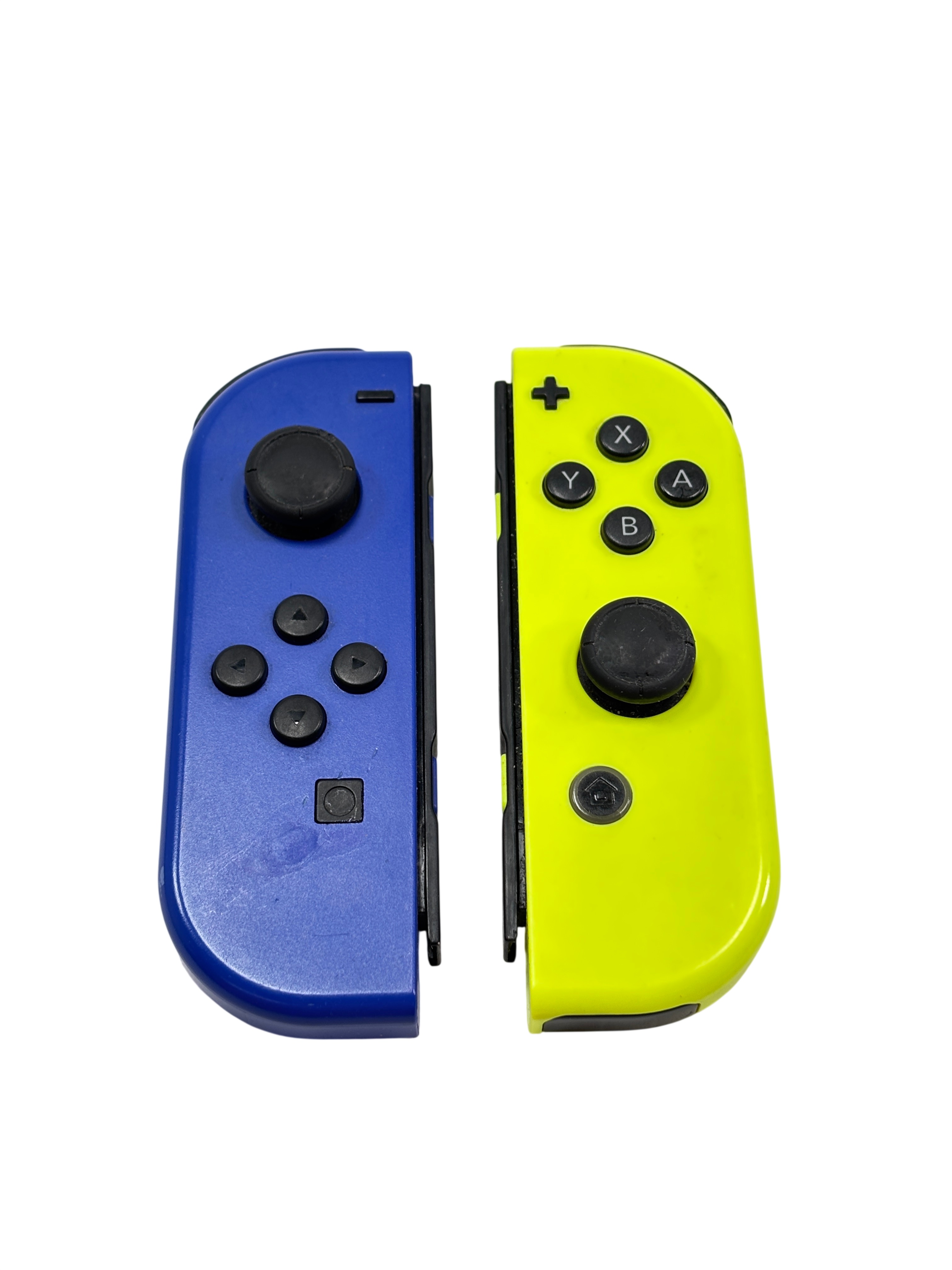 Nintendo Switch HAC-001 Console (No Dock) features a 6.2-inch capacitive multi-touch screen and comes with vibrant Blue and Neon Yellow Joy-Con controllers. This portable hybrid gaming system supports both handheld and TV mode (dock sold separately). Ideal for gaming on the go or at home, this model offers versatile play options in a compact design.