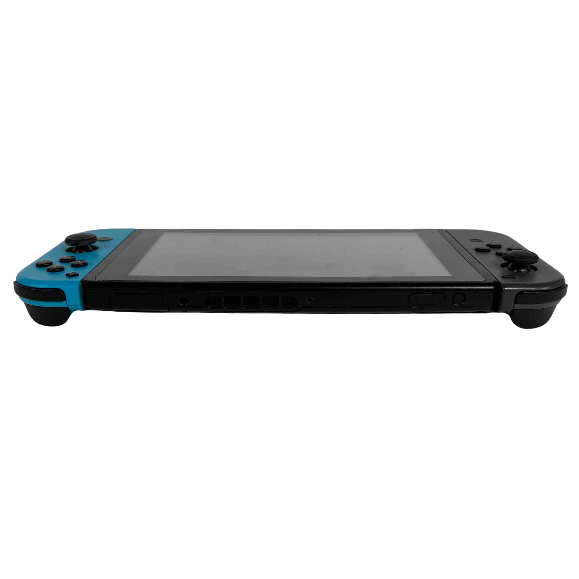 A versatile home video game system that offers both single and multiplayer gaming experiences. It is designed to be portable, allowing players to enjoy a full home console experience anytime, anywhere. The system can transition from a home console to a handheld device by simply lifting it from its dock. The Nintendo Switch features a 6.2-inch high-definition screen for vibrant, high-resolution graphics. It comes with two Joy-Con controllers that can act as standalone controllers, each equipped with an analog stick, face and shoulder buttons, motion-sensing technology, and new HD Rumble. These controllers can be inserted into a Joy-Con grip accessory for a traditional controller experience, or shared between two players for instant multiplayer gaming. The Nintendo Switch supports three play styles: TV, tabletop, and handheld modes, and can connect up to eight consoles over Wi-Fi for local multiplayer gaming.
