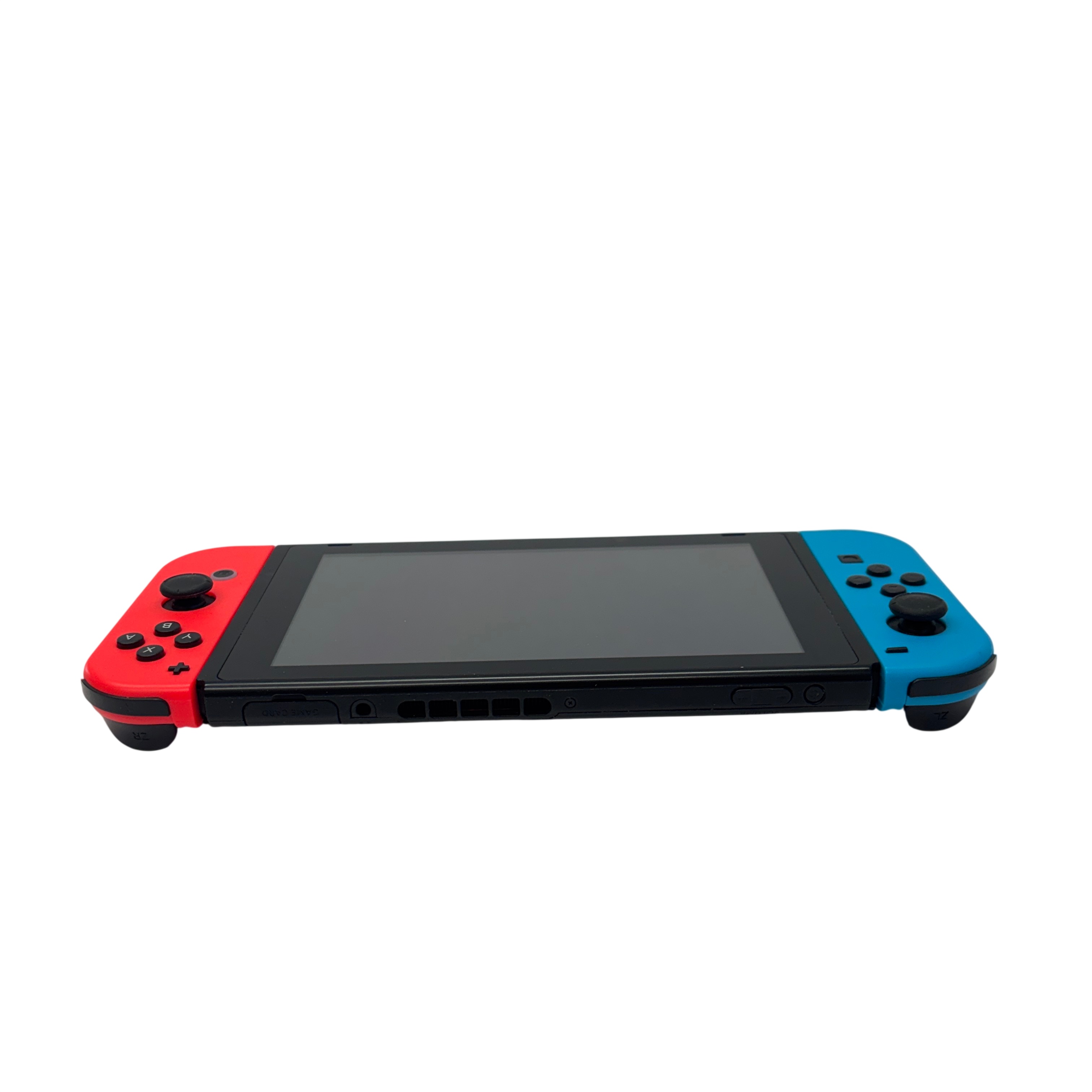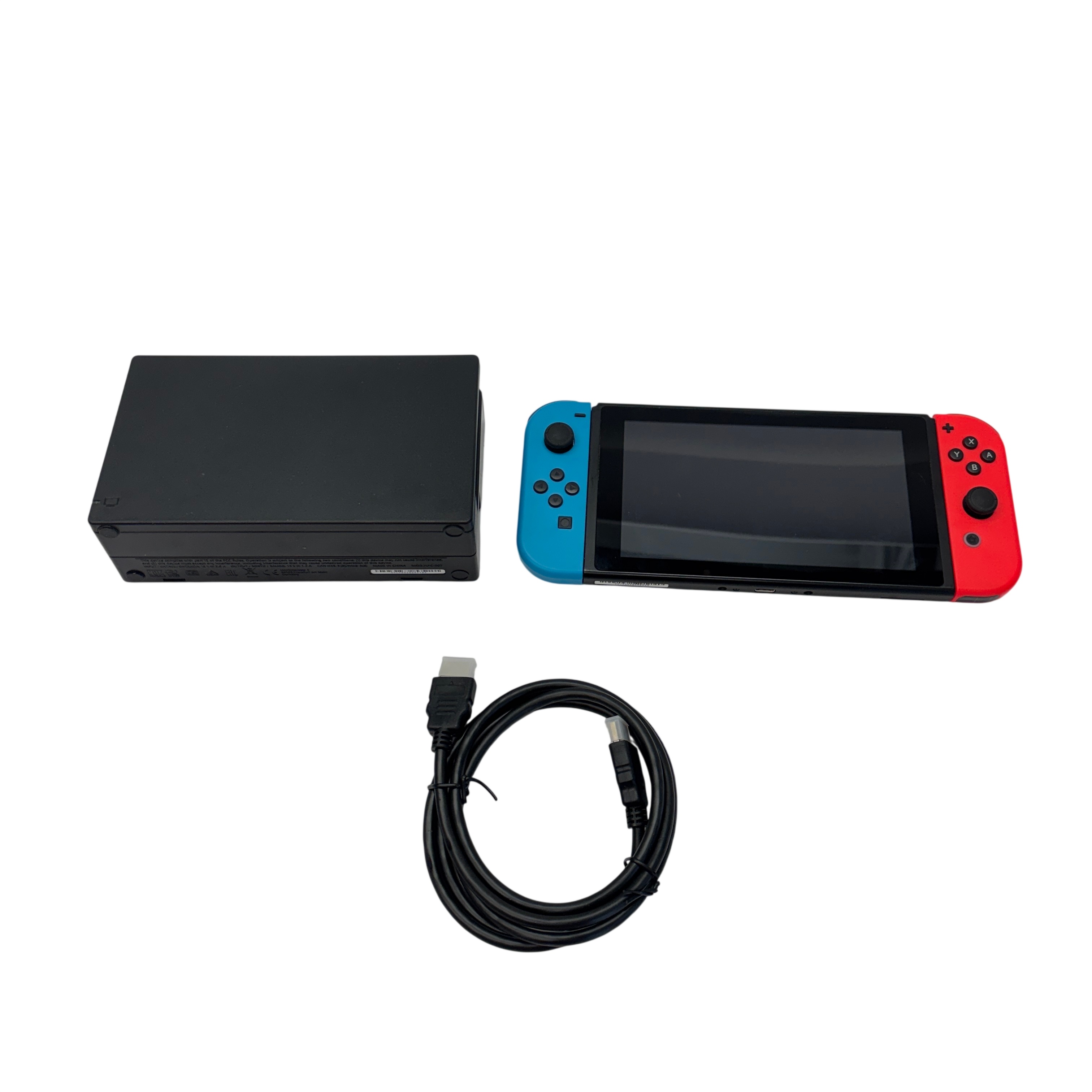 Nintendo Switch with Dock (Model HAC-001) is a versatile electronic game console that offers both handheld and TV gaming experiences. Featuring detachable blue and red Joy-Con controllers, the system supports a 15V 2.6A power input through its dock, allowing seamless connection to your television. This set includes the Nintendo Switch console, dock, and HDMI cable, making it ideal for gaming at home or on the go. The consoles compact dimensions and lightweight design provide portability without sacrificing performance.