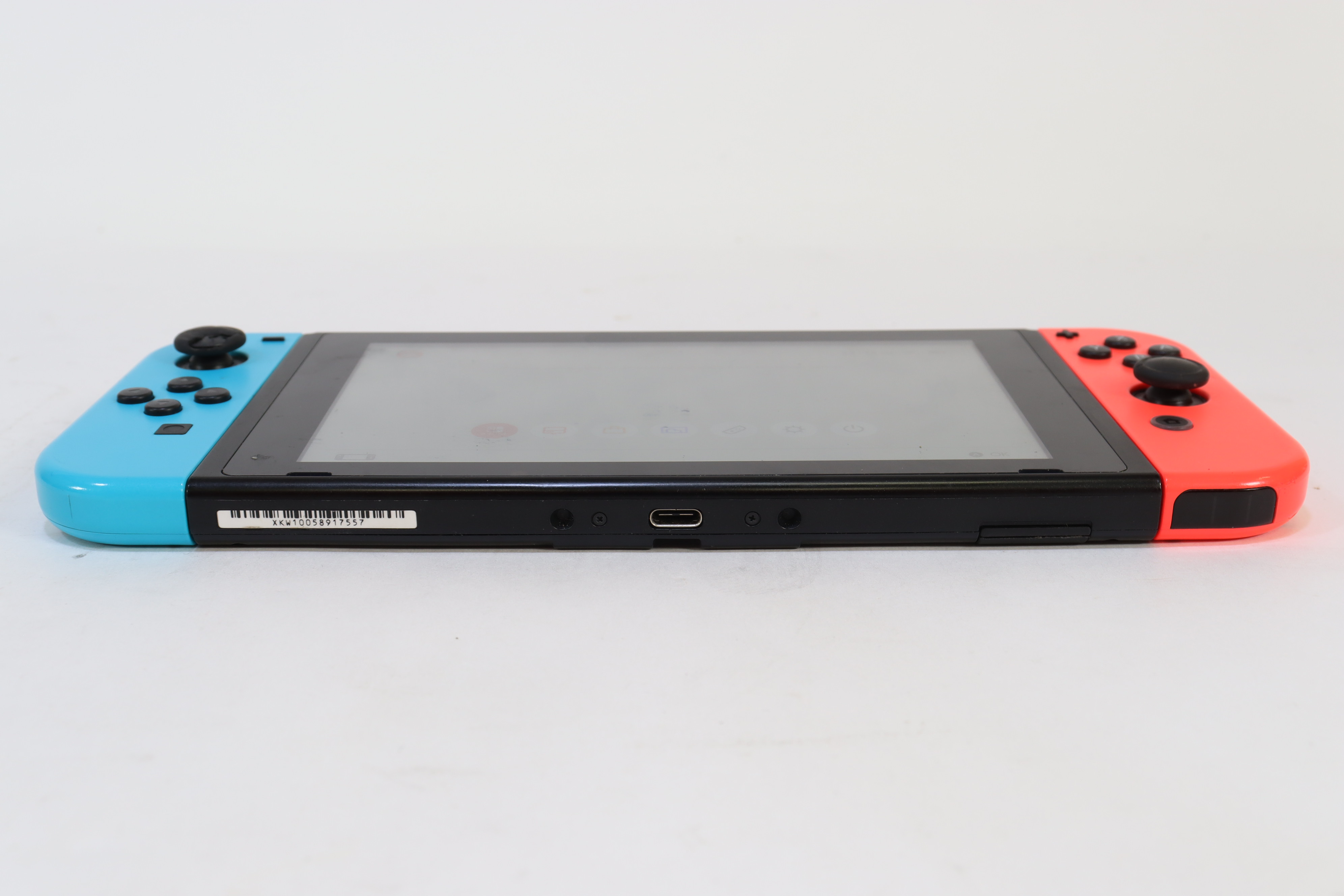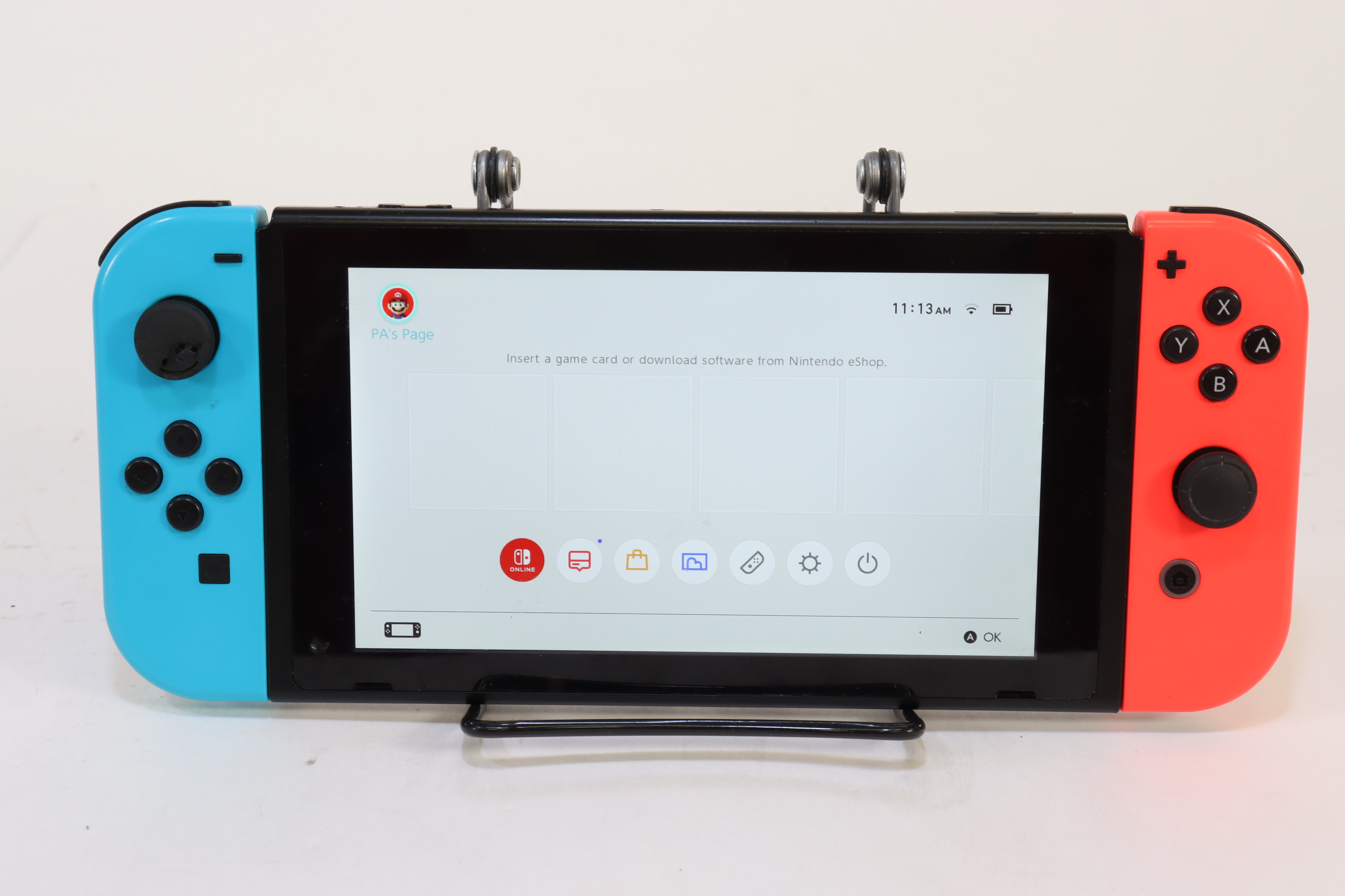 A versatile home video game system that offers both single and multiplayer gaming experiences. It is designed to be portable, allowing players to enjoy a full home console experience anytime, anywhere. The system can transition from a home console to a handheld device by simply lifting it from its dock. The Nintendo Switch features a 6.2-inch high-definition screen for vibrant, high-resolution graphics. It comes with two Joy-Con controllers that can act as standalone controllers, each equipped with an analog stick, face and shoulder buttons, motion-sensing technology, and new HD Rumble. These controllers can be inserted into a Joy-Con grip accessory for a traditional controller experience, or shared between two players for instant multiplayer gaming. The Nintendo Switch supports three play styles: TV, tabletop, and handheld modes, and can connect up to eight consoles over Wi-Fi for local multiplayer gaming.