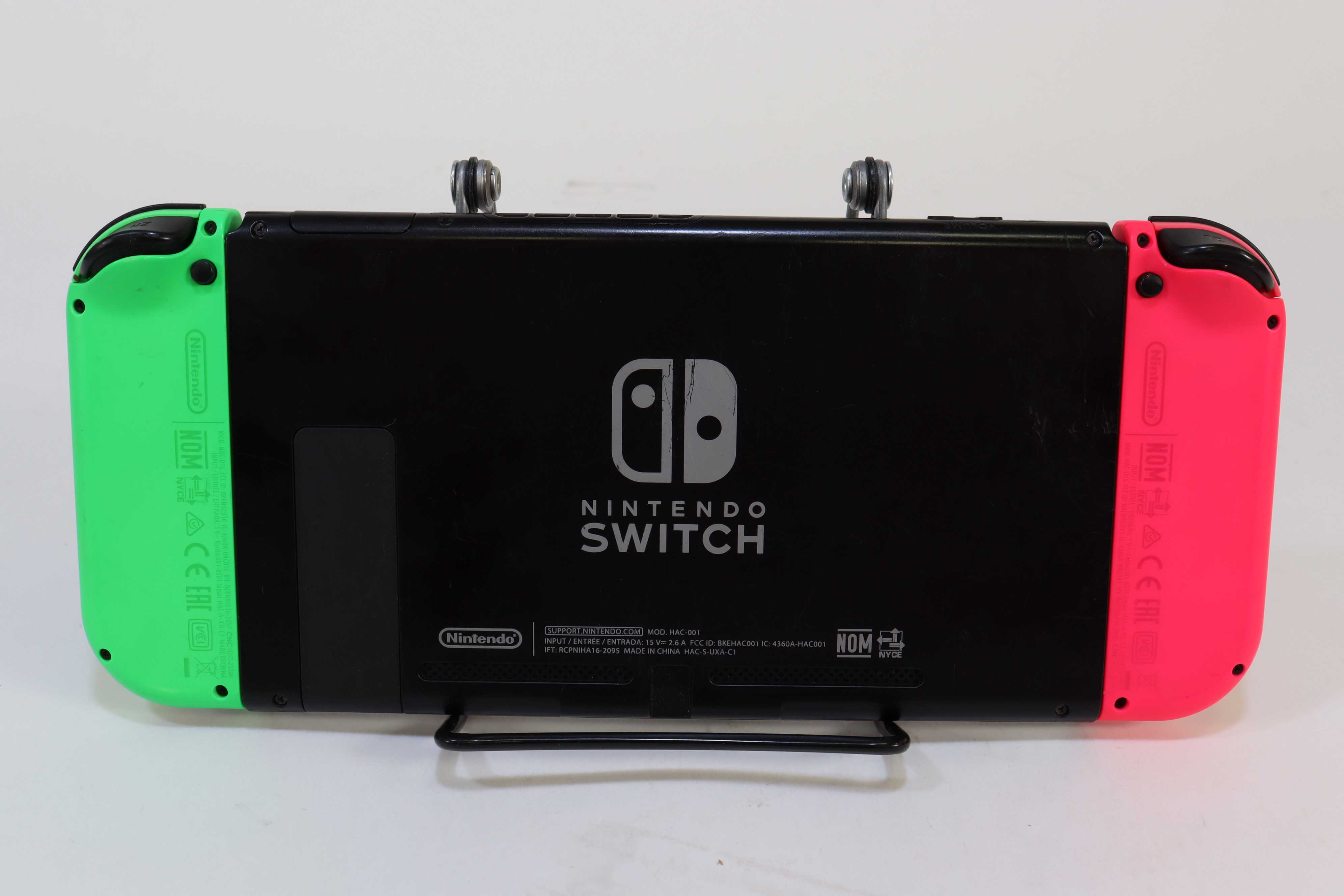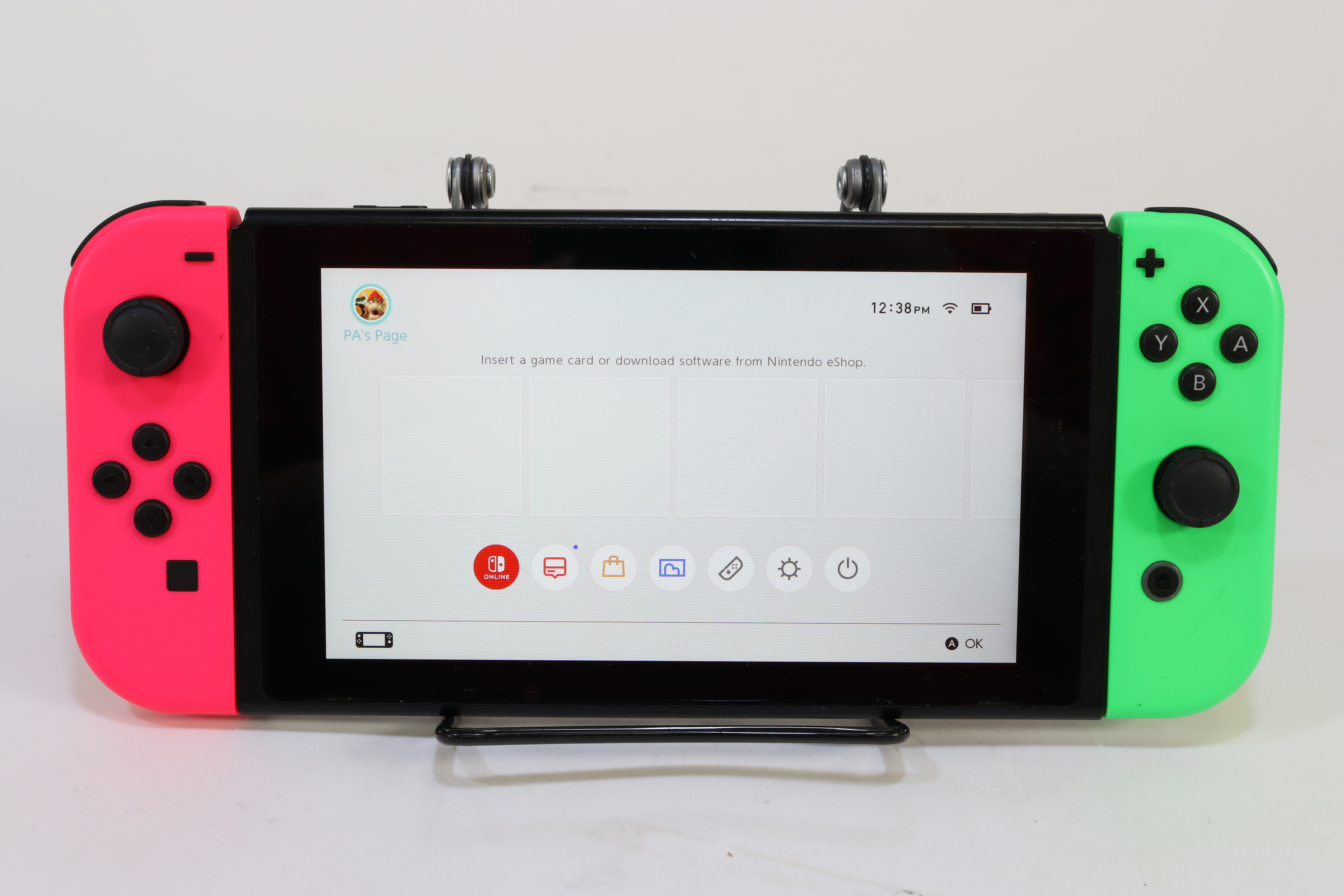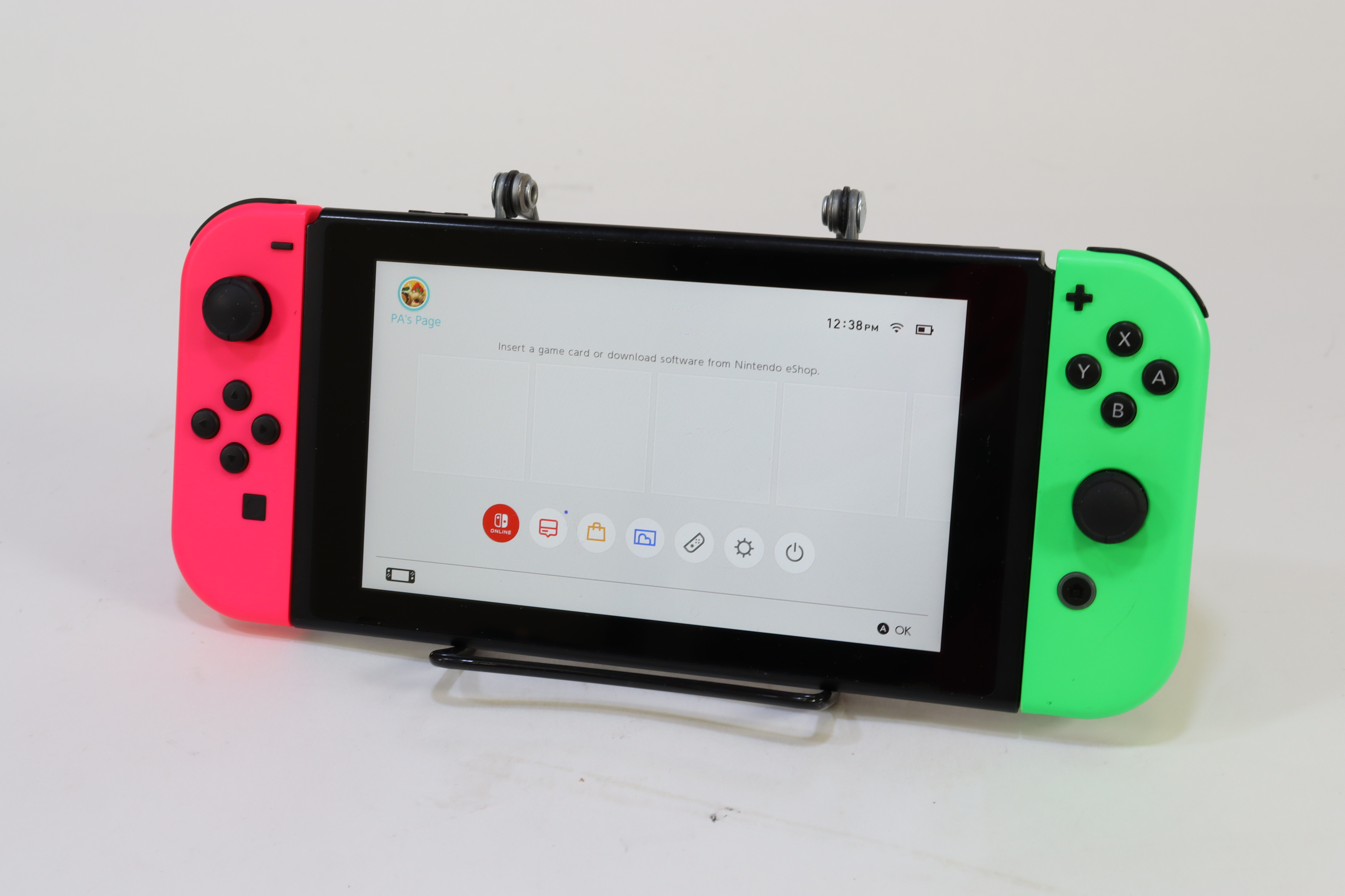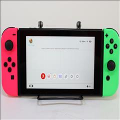 A versatile home video game system that offers both single and multiplayer gaming experiences. It is designed to be portable, allowing players to enjoy a full home console experience anytime, anywhere. The system can transition from a home console to a handheld device by simply lifting it from its dock. The Nintendo Switch features a 6.2-inch high-definition screen for vibrant, high-resolution graphics. It comes with two Joy-Con controllers that can act as standalone controllers, each equipped with an analog stick, face and shoulder buttons, motion-sensing technology, and new HD Rumble. These controllers can be inserted into a Joy-Con grip accessory for a traditional controller experience, or shared between two players for instant multiplayer gaming. The Nintendo Switch supports three play styles: TV, tabletop, and handheld modes, and can connect up to eight consoles over Wi-Fi for local multiplayer gaming.