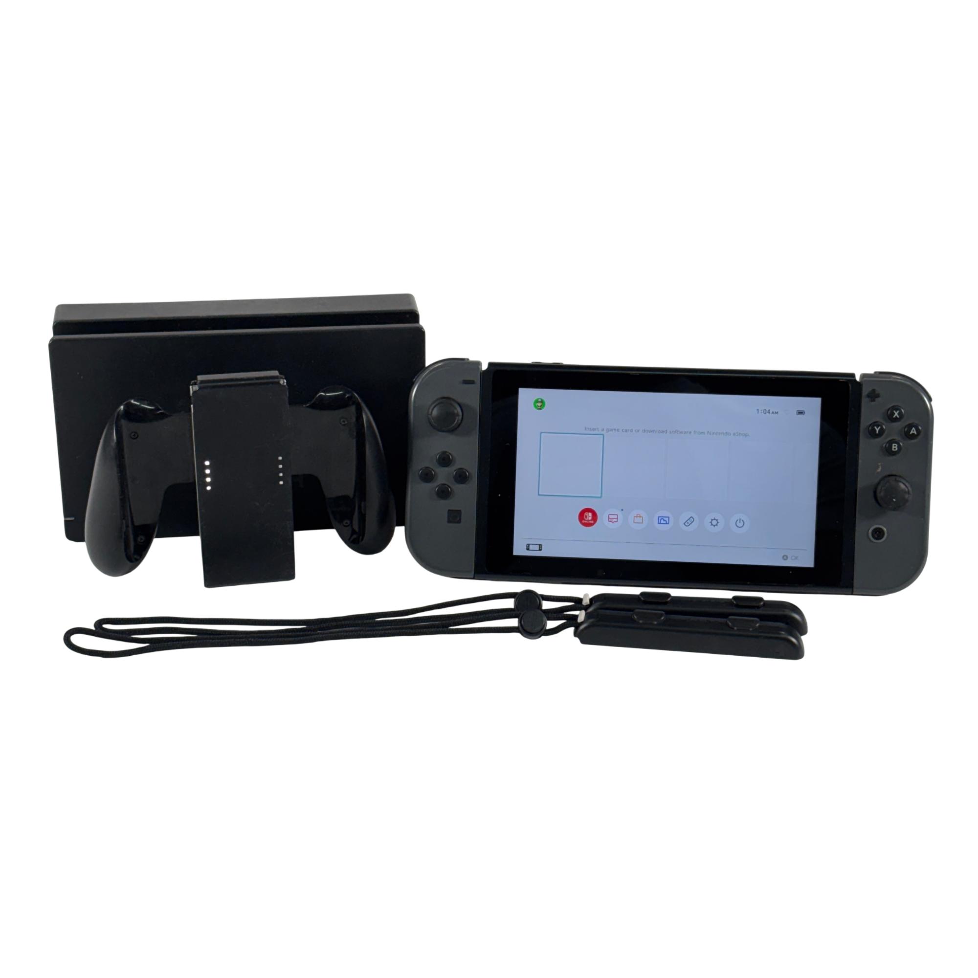 Nintendo Switch HAC-001 handheld console features a 6.2-inch touchscreen display and versatile play modes for any setting. Connect it to your TV for HD gaming, use tabletop mode for shared play, or enjoy gaming on the go in handheld mode with attached Joy-Con controllers.