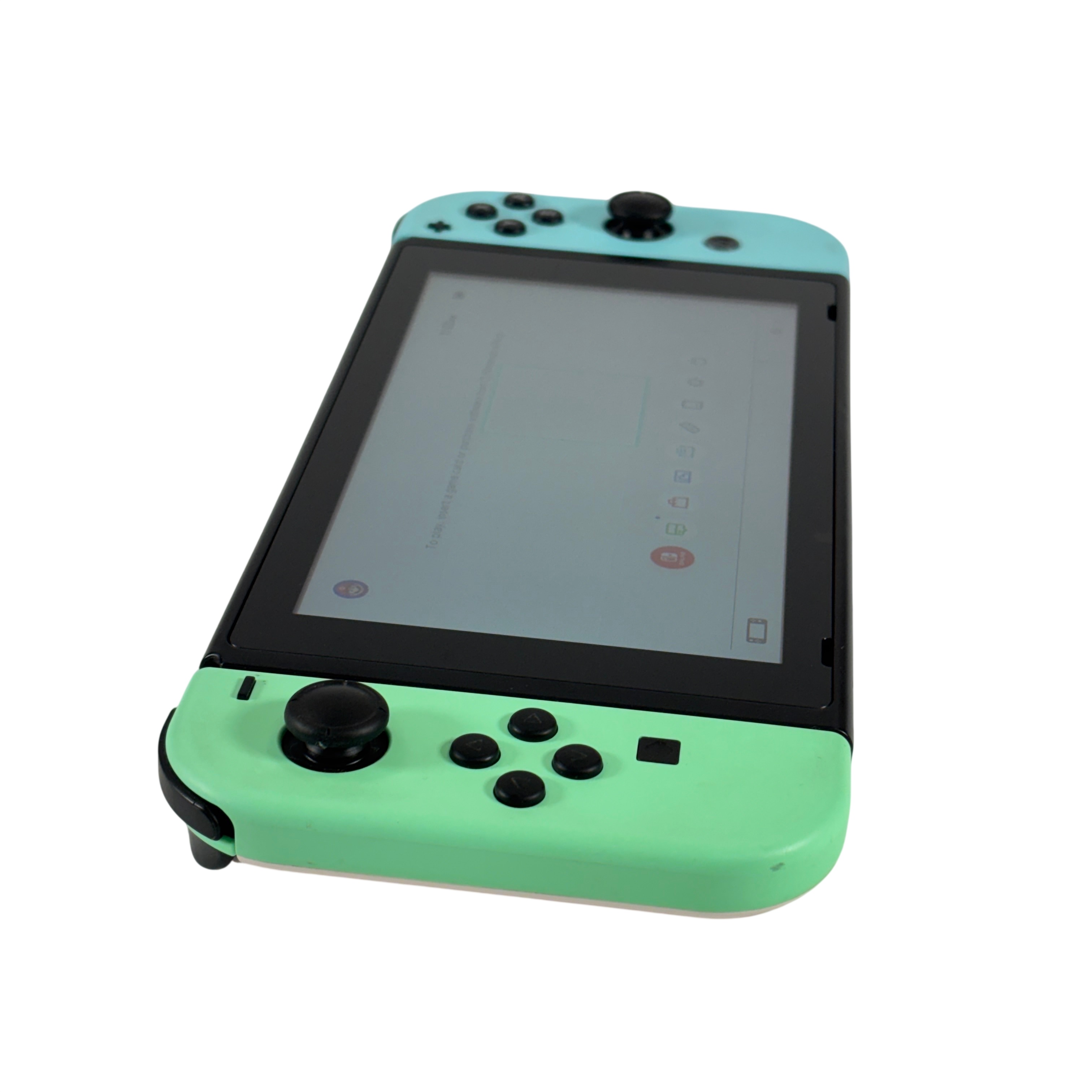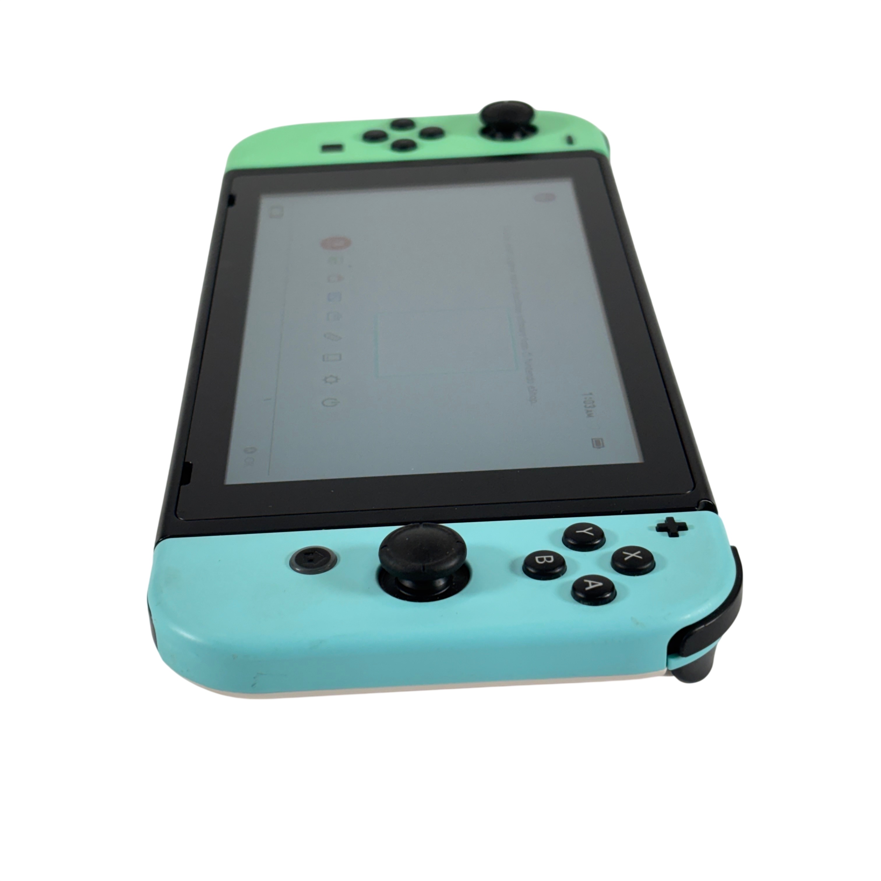Nintendo Switch HAC-001 handheld console features a 6.2-inch touchscreen display and versatile play modes for any setting. Connect it to your TV for HD gaming, use tabletop mode for shared play, or enjoy gaming on the go in handheld mode with attached Joy-Con controllers.