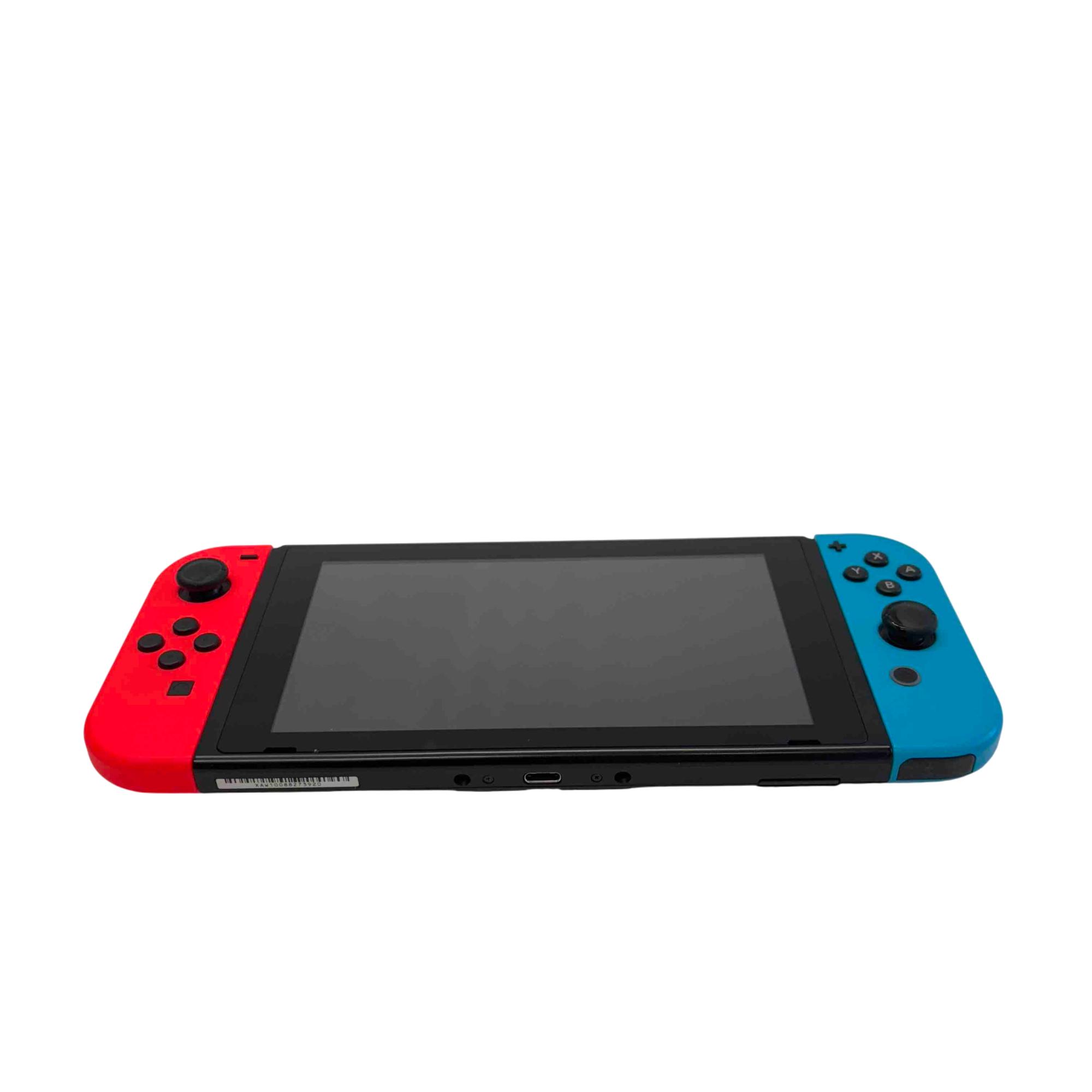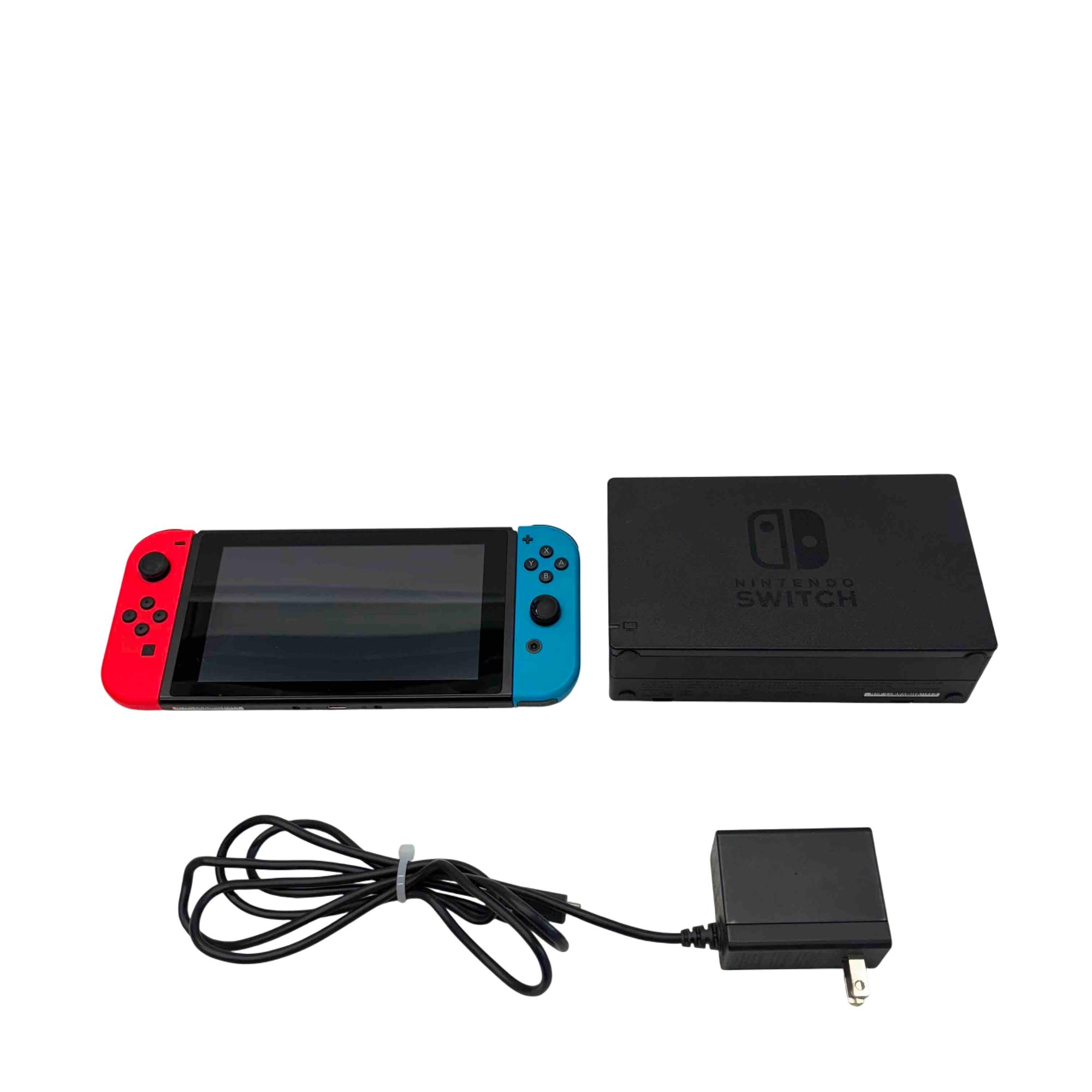 Experience versatile gaming at home or on the go with the Nintendo Switch HAC-001. This bundle includes the iconic Neon Red and Neon Blue Joy-Con controllers, the Switch dock for big-screen play, and an official charger. Perfect for solo adventures or multiplayer fun, the Nintendo Switch offers a massive library of games and dynamic hybrid play.