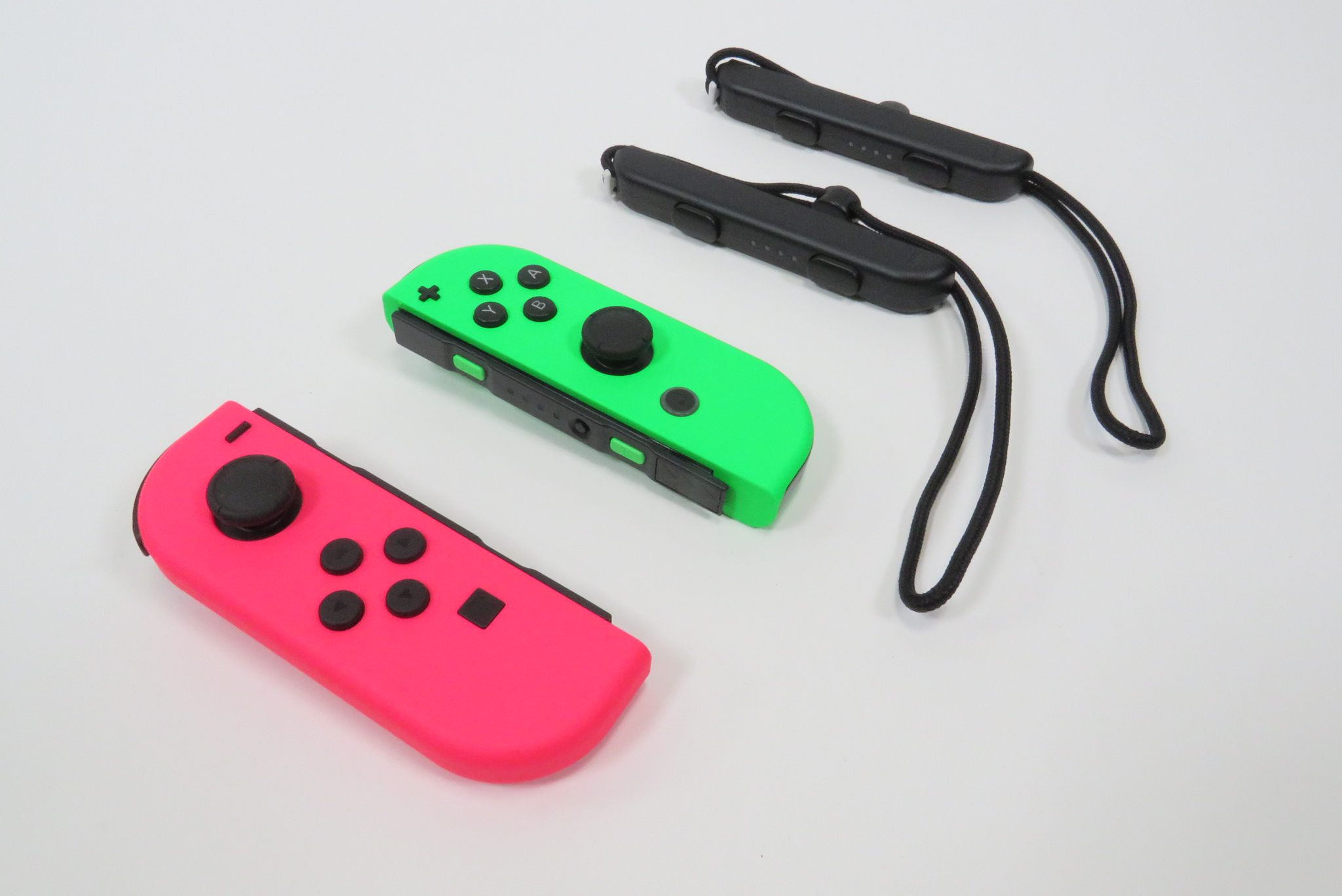 Explore new ways to play your favorite games with these Joy-Con controllers for the Nintendo Switch. Two bright colors in shades of neon pink and green make it easy to assign colors to each player, while the versatile setup also lets you use both controllers simultaneously for advanced gaming control. Featuring a full set of buttons on each side, these Joy-Con controllers provide greater flexibility to jump, shoot, run and attack.
