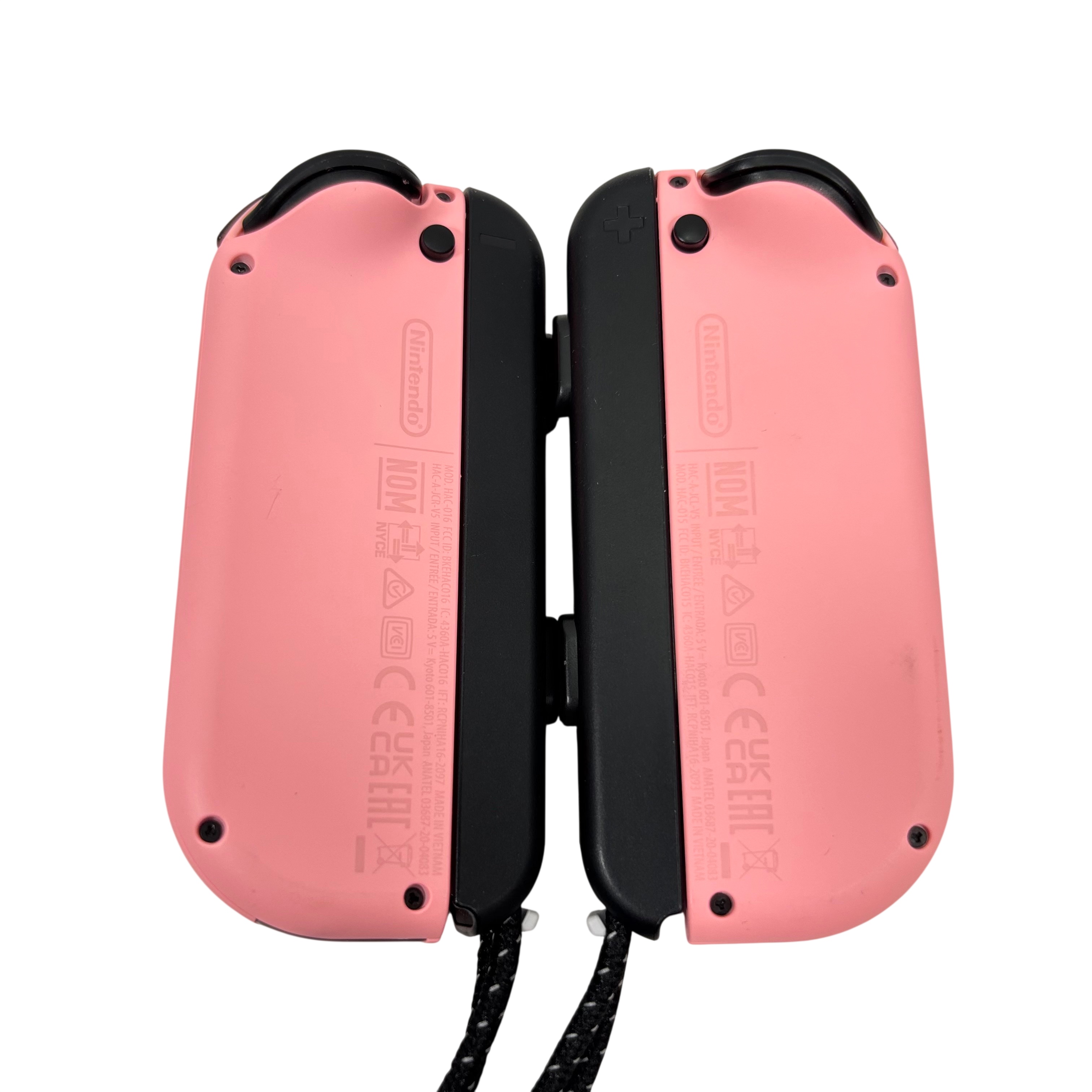 Nintendo Hac015 Pink Joycons are official wireless controllers designed for the Nintendo Switch console. These pink and black Joy-Con controllers feature motion controls, HD rumble, and an IR sensor to enhance gameplay. Each controller includes a wrist strap for added security during use. Compact and lightweight, they measure approximately 4.02 inches in length and weigh 0.22 pounds, making them comfortable for extended gaming sessions.
