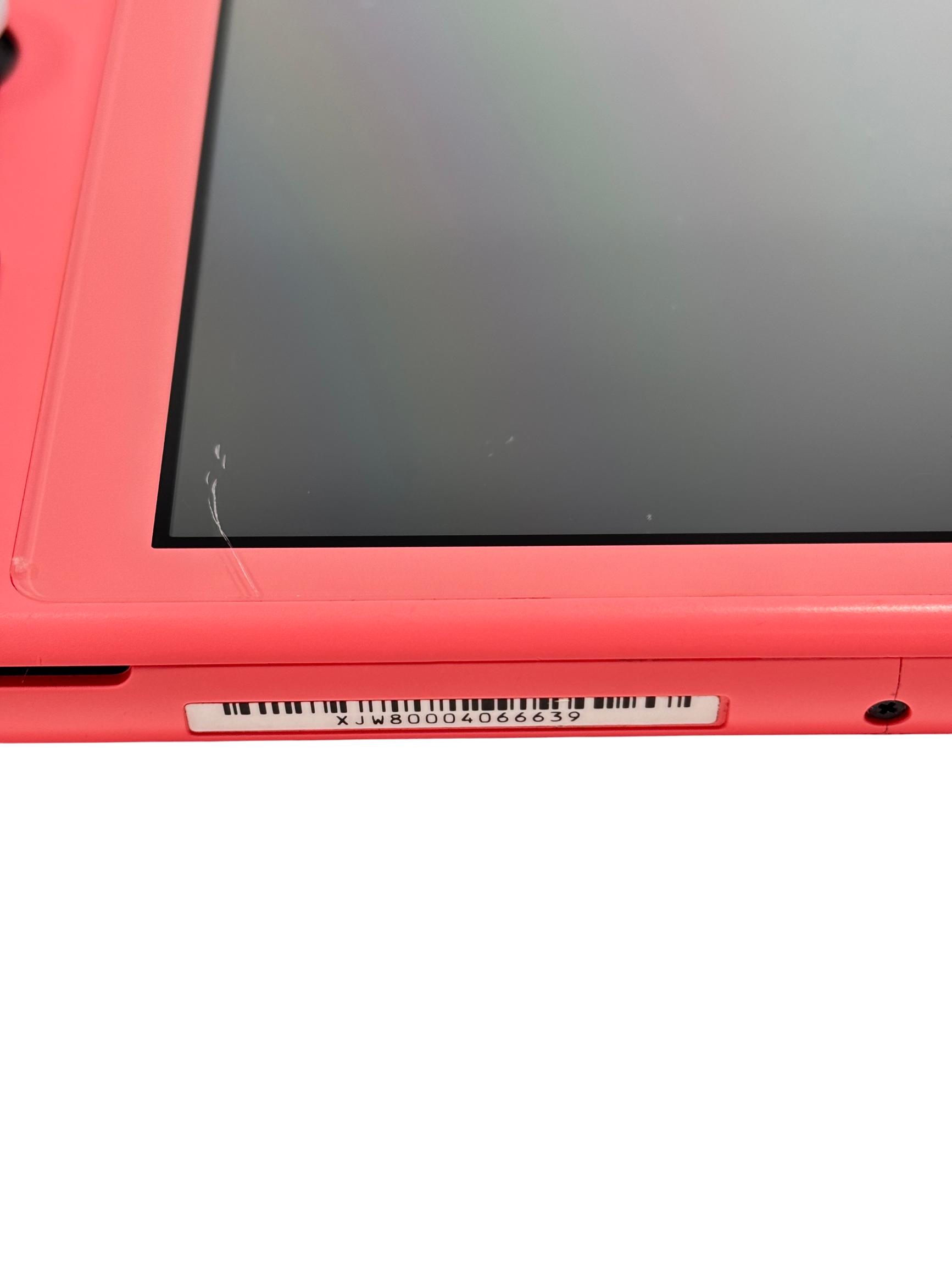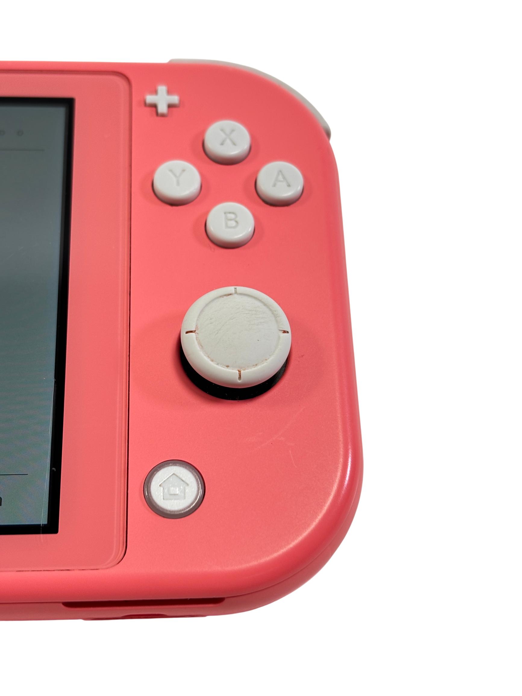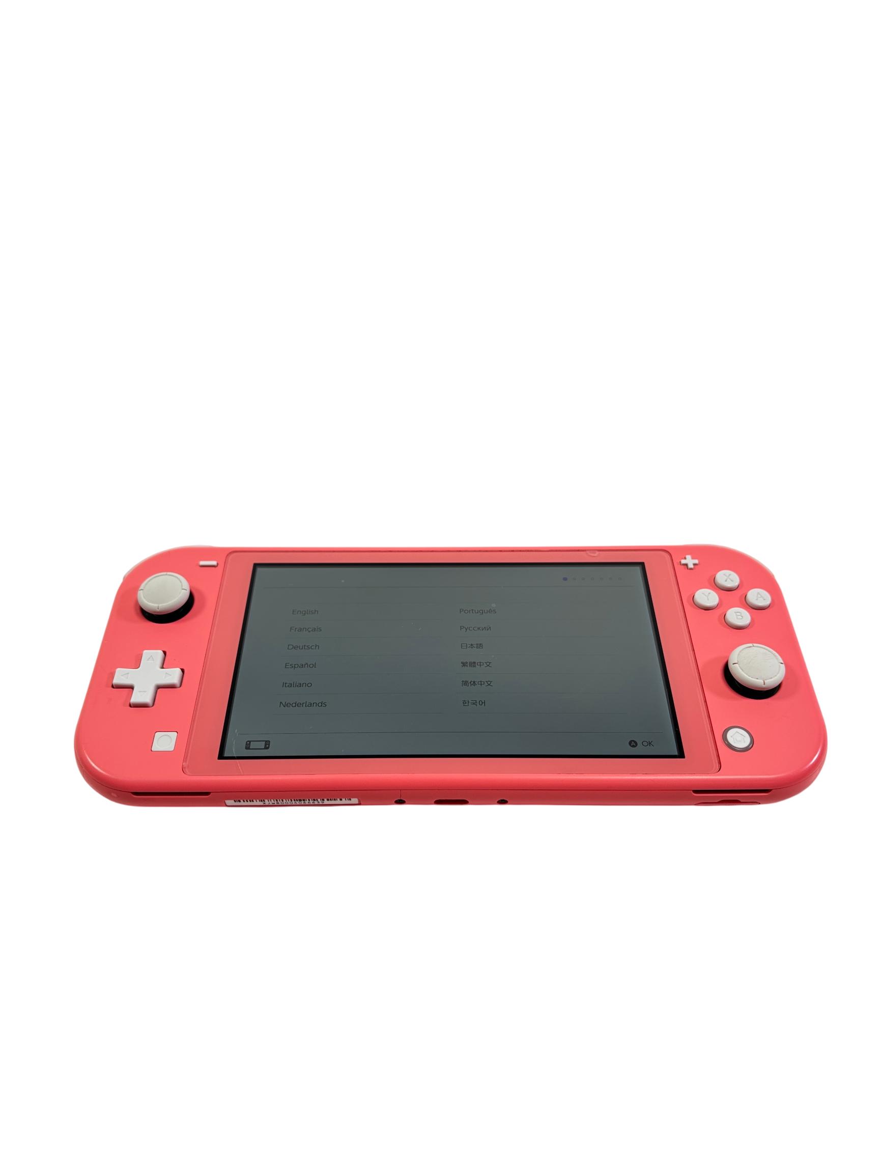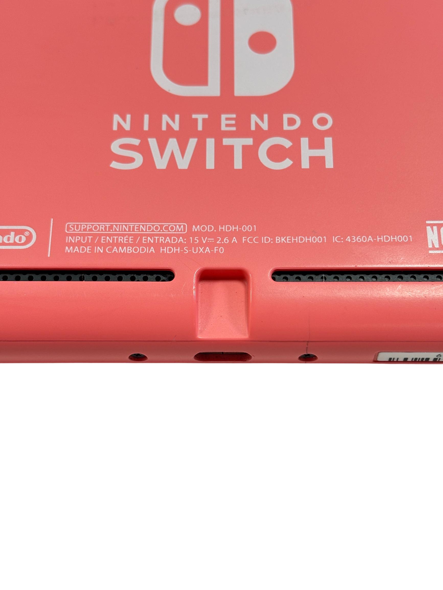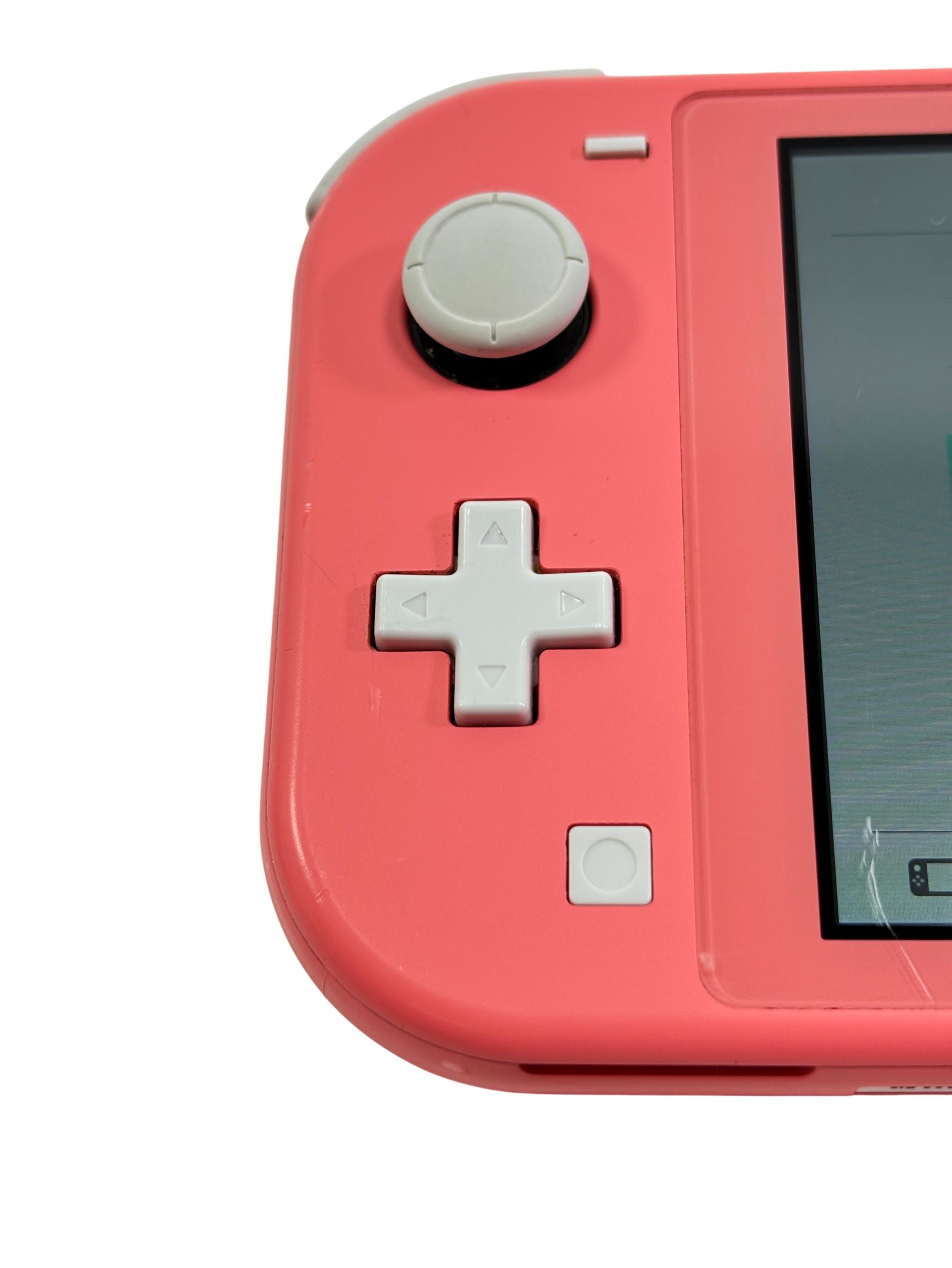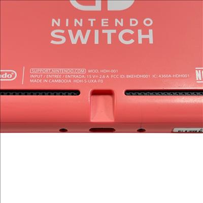 Nintendo Switch Lite Coral (HDH-001) Handheld Gaming Console features a compact design with a vibrant coral pink finish and a 5.5-inch LCD screen offering a resolution of 1280x720 pixels. This handheld video game console includes responsive controls labeled with A, B, X, and Y buttons, making it ideal for gaming on the go. The device is region free and designed specifically for portable play with a user-friendly interface and vivid display.