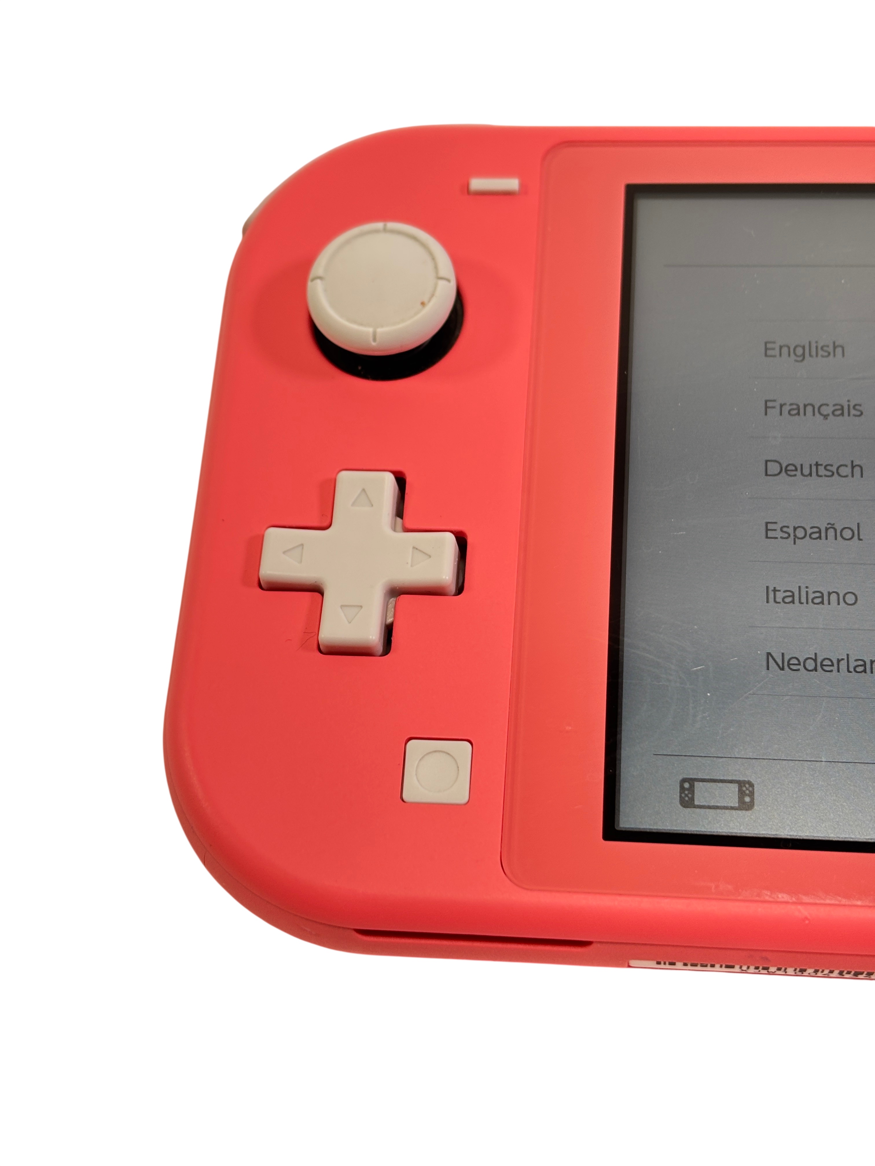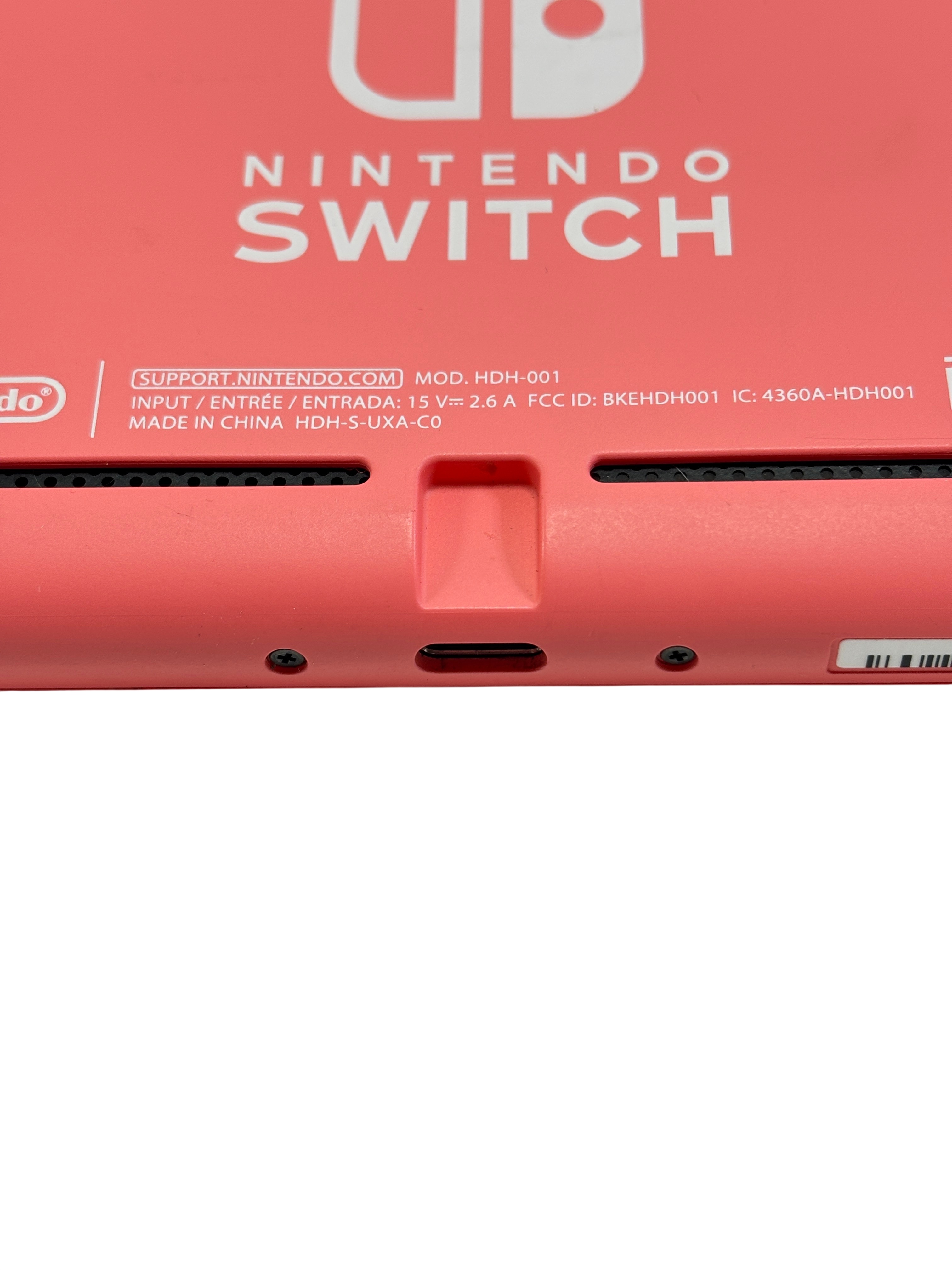 The Nintendo Switch Lite Coral (Model HDH-001) is a compact handheld gaming console designed for portable play. Featuring a 5.5-inch touchscreen and integrated controls, this model supports the full Nintendo Switch game library compatible with handheld mode. Powered by a built-in rechargeable lithium-ion battery, it offers Wi-Fi and Bluetooth connectivity for multiplayer and online features.