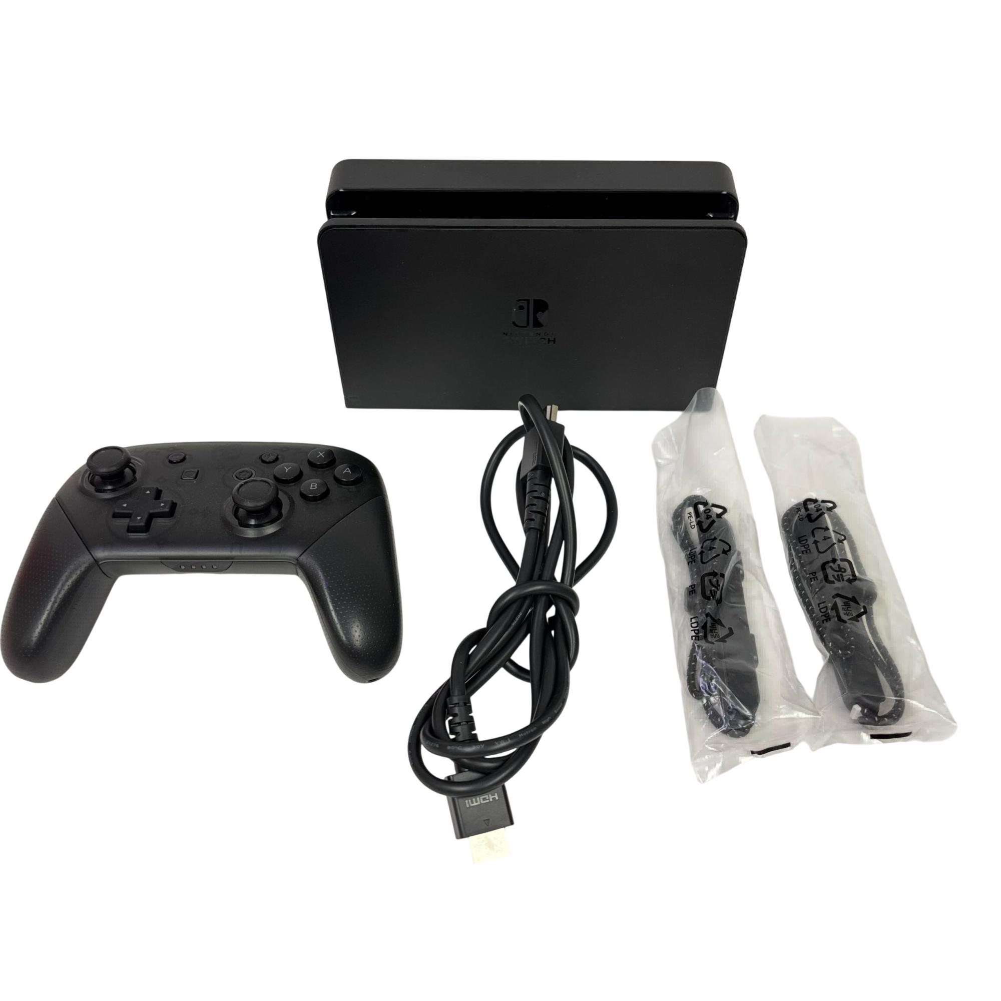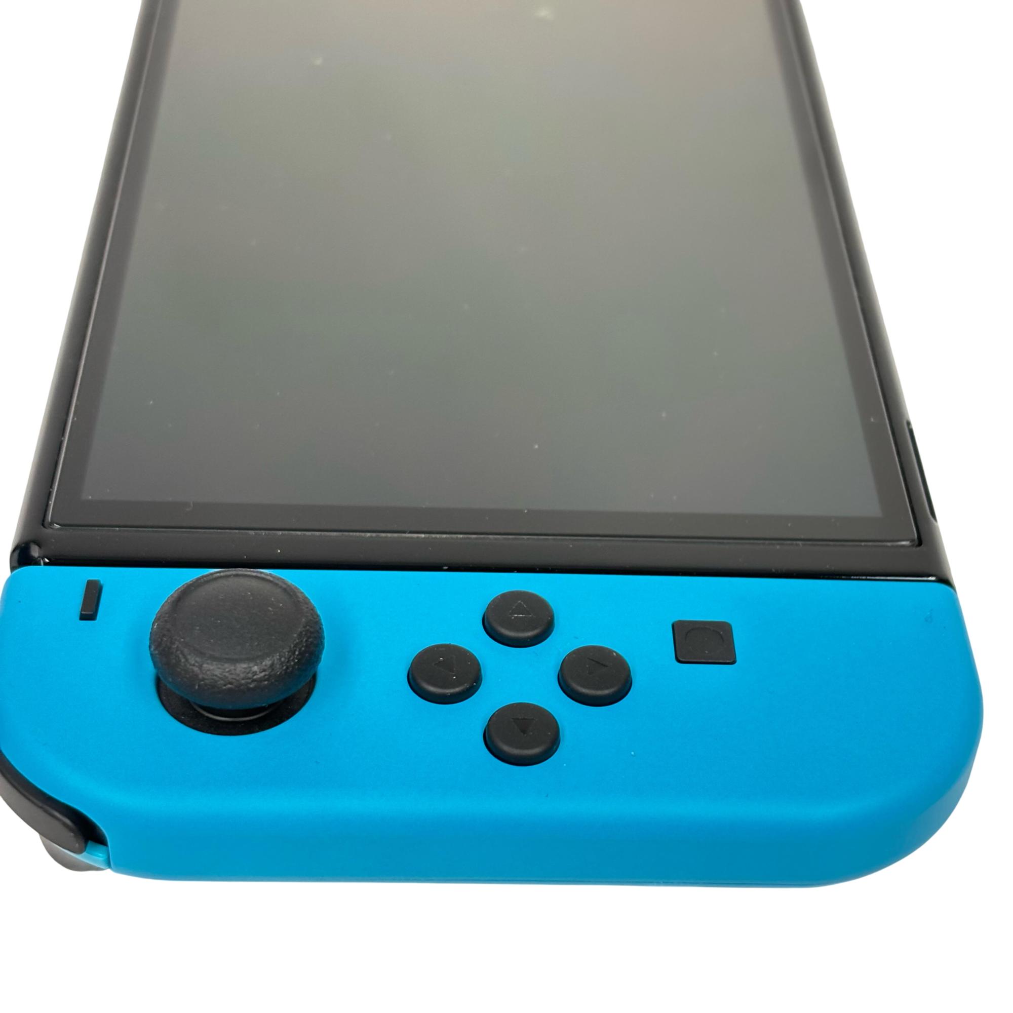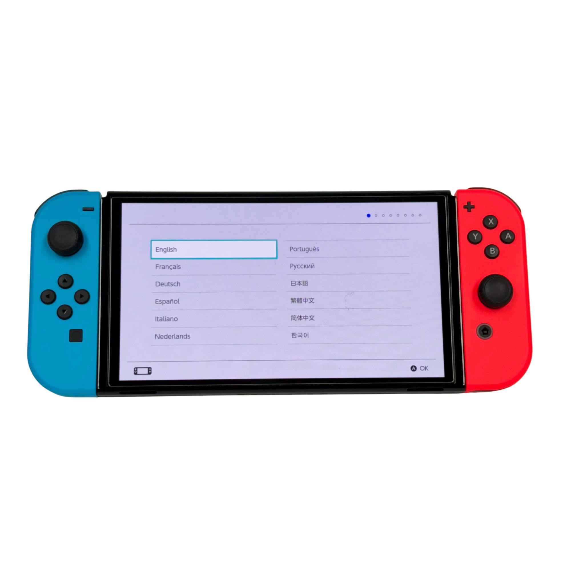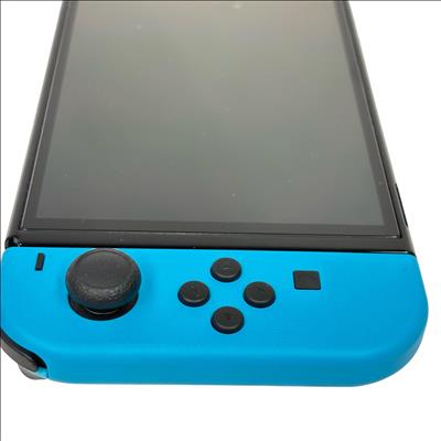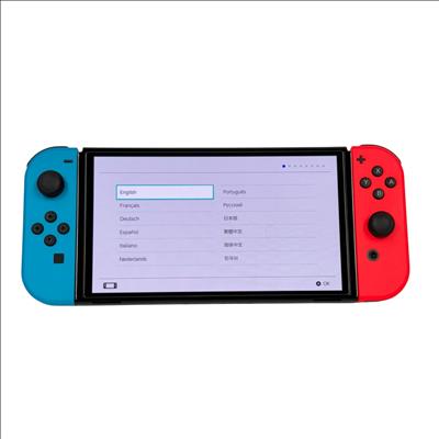 The Nintendo Switch OLED offers a vibrant 7-inch OLED screen that delivers stunning visuals and enhanced color contrast for an immersive gaming experience. This versatile video game console can be used in handheld mode, docked to a TV, or in tabletop mode, featuring detachable neon red and blue Joy-Con controllers for flexible multiplayer gameplay and motion controls.