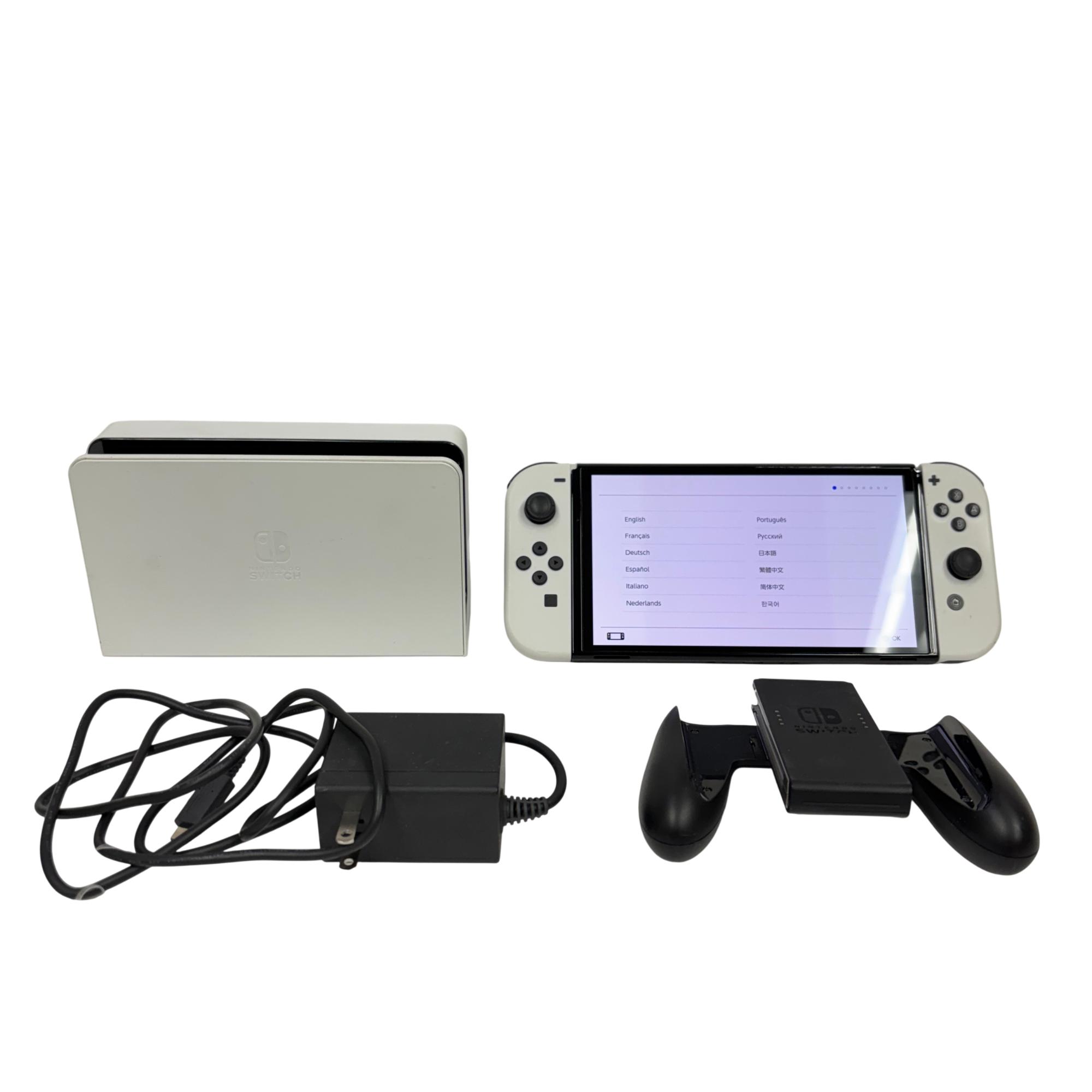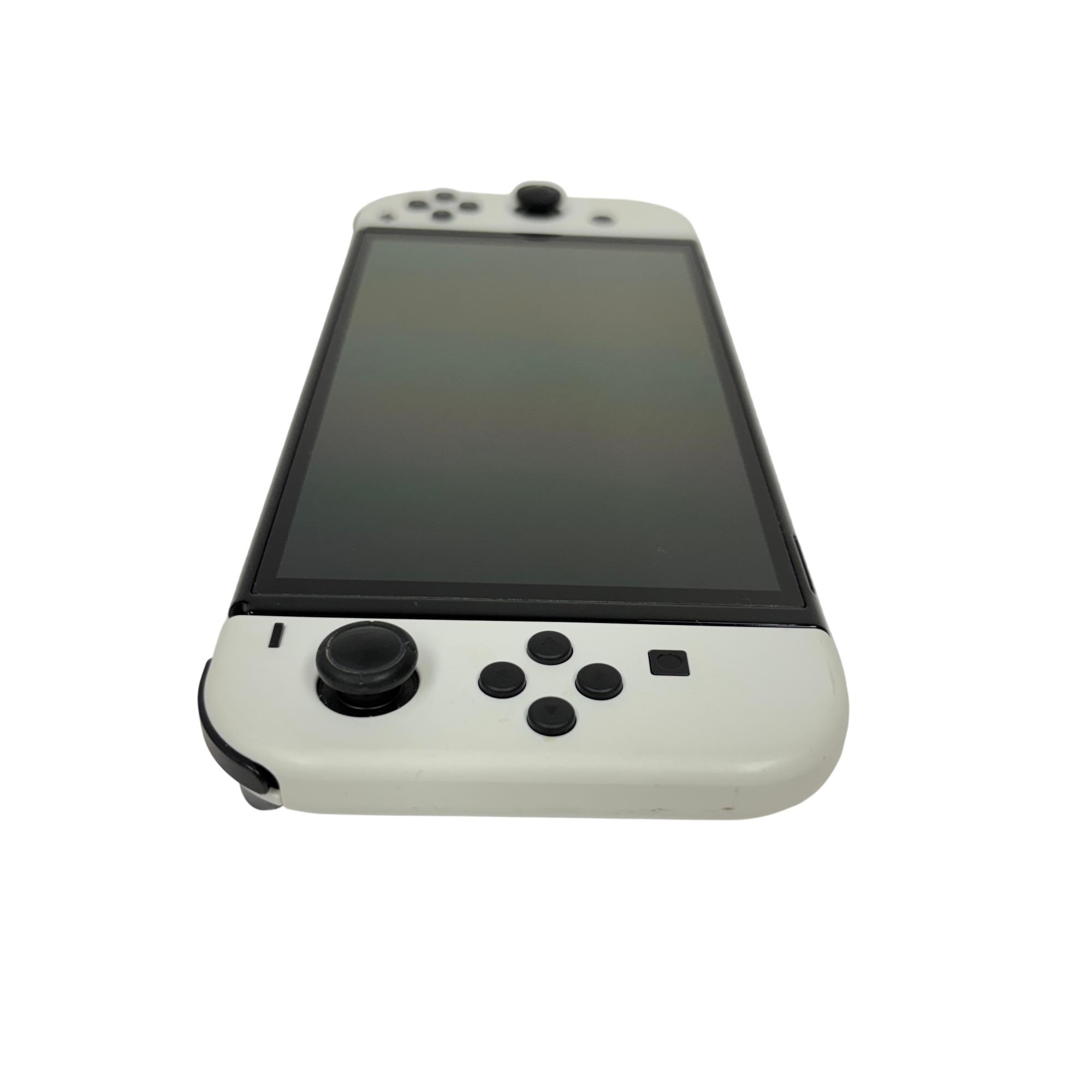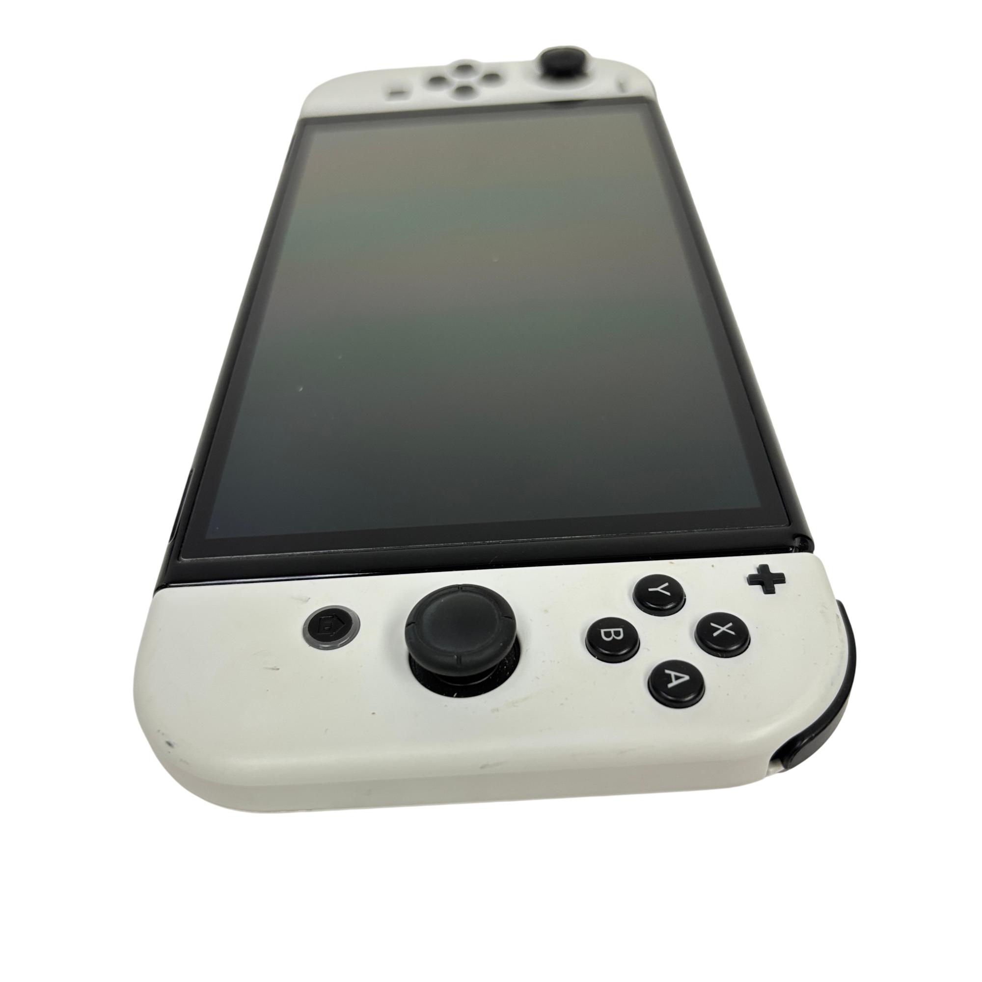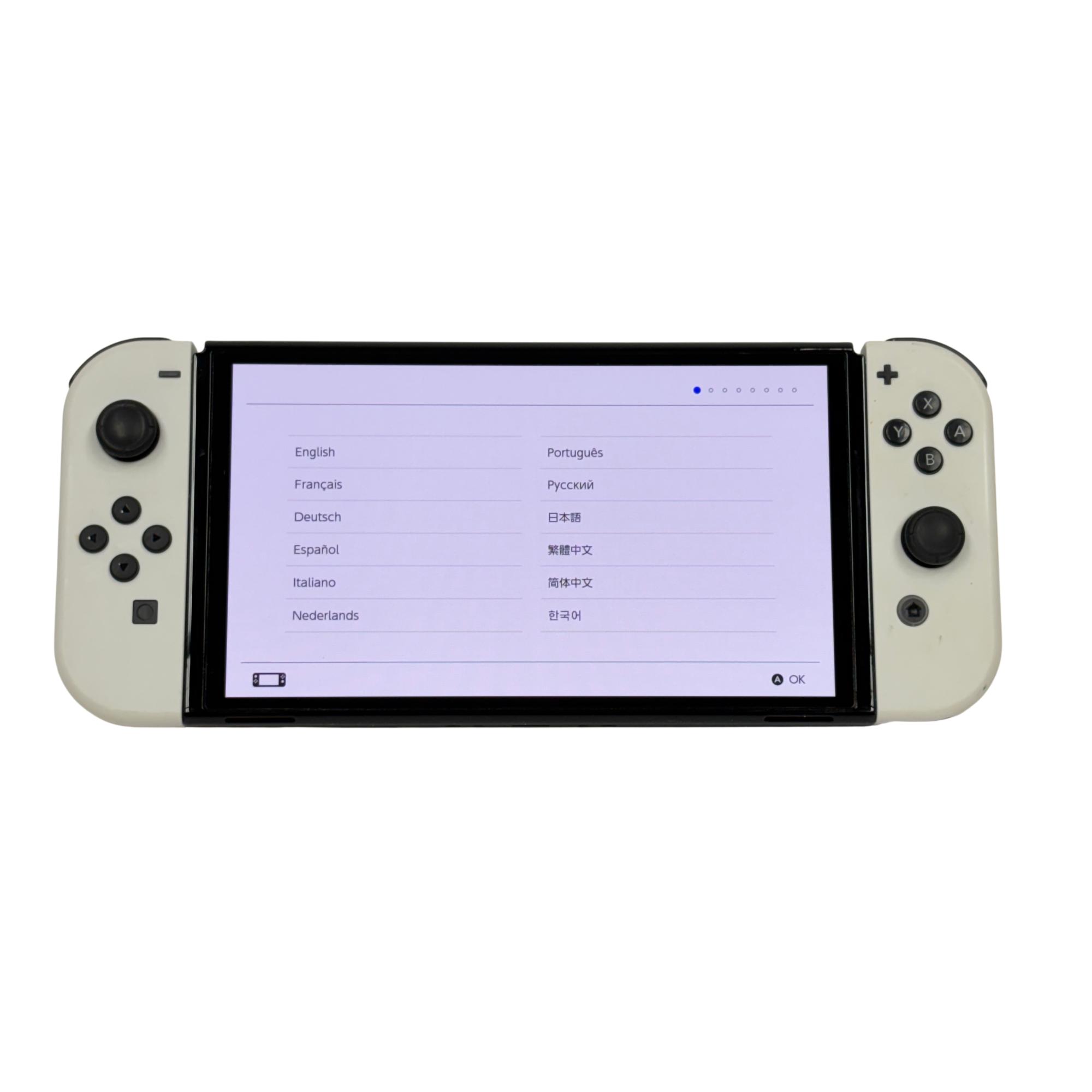 This Nintendo Switch OLED delivers a vibrant 7-inch OLED screen and enhanced audio for an immersive gaming experience. This versatile video game console offers detachable white Joy-Con controllers, a sleek dock for TV connection, and 64GB of internal storage, making it ideal for both handheld and home play. Designed for seamless multiplayer gaming and extensive compatibility, it supports a wide range of popular titles and language options.