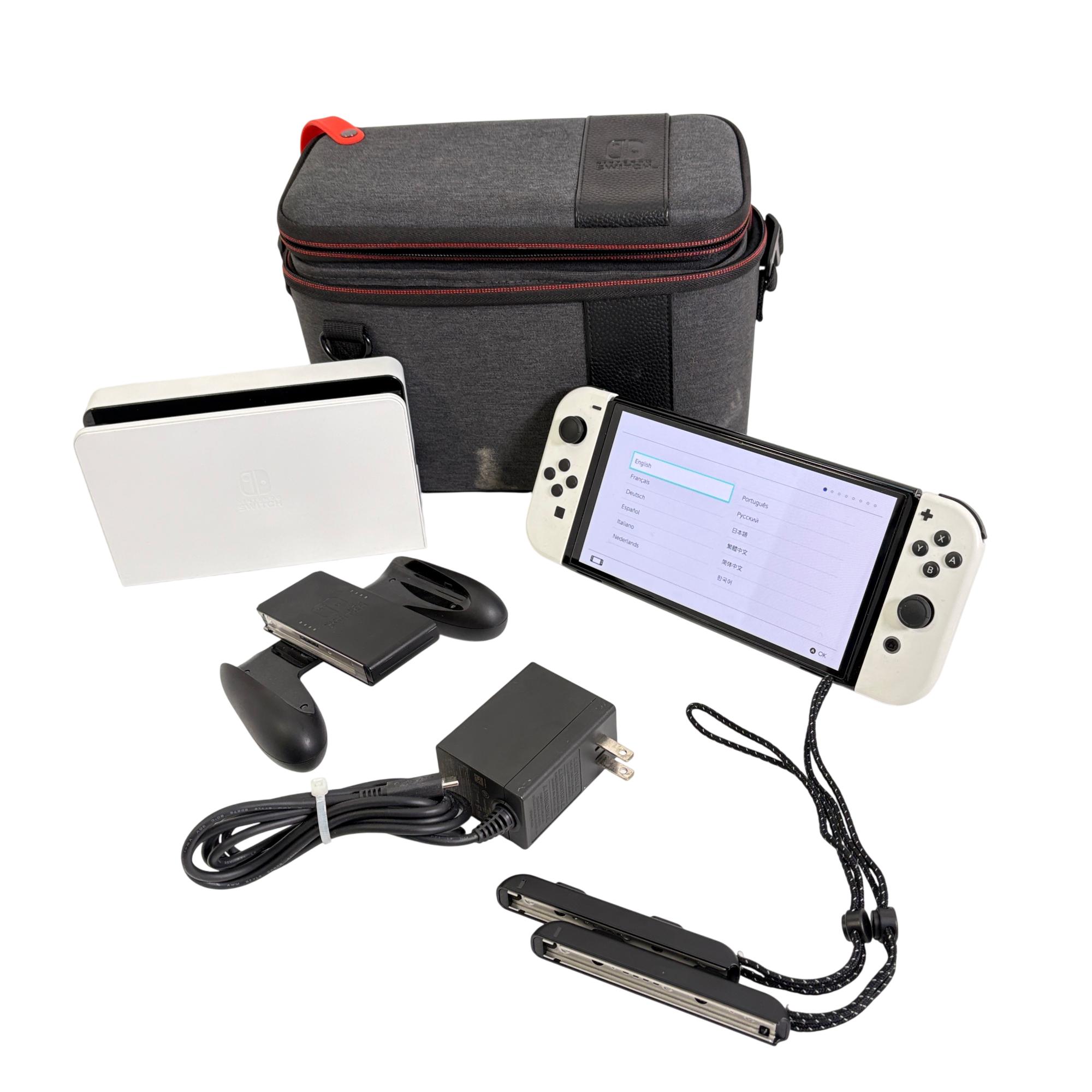 Nintendo Switch OLED Model HEG-001 features a vibrant 7-inch OLED touchscreen that provides enhanced color and contrast for an immersive gaming experience. This handheld console offers a sleek white Joy-Con design and includes 64GB of internal storage to accommodate a wide range of games and applications. Its versatile form factor supports both portable and docked play, making it ideal for gaming on the go or at home.