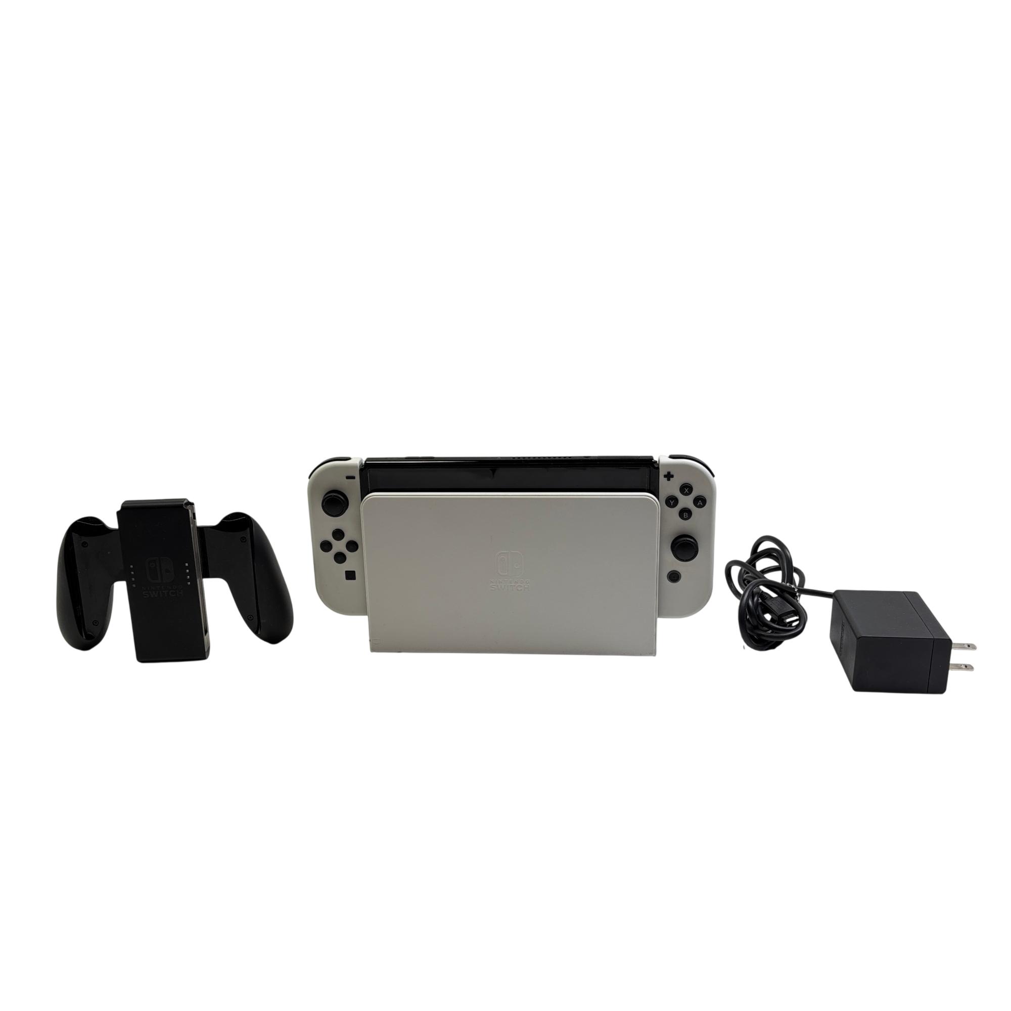 Nintendo Switch OLED Model HEG-001 features a vibrant 7-inch OLED touchscreen that delivers vivid colors and sharp contrast for an enhanced gaming experience. This sleek white console includes a refined dock design for seamless TV connectivity and improved audio performance. Engineered for versatile playstyles, it offers detachable white Joy-Con controllers enabling both handheld and tabletop gaming modes.