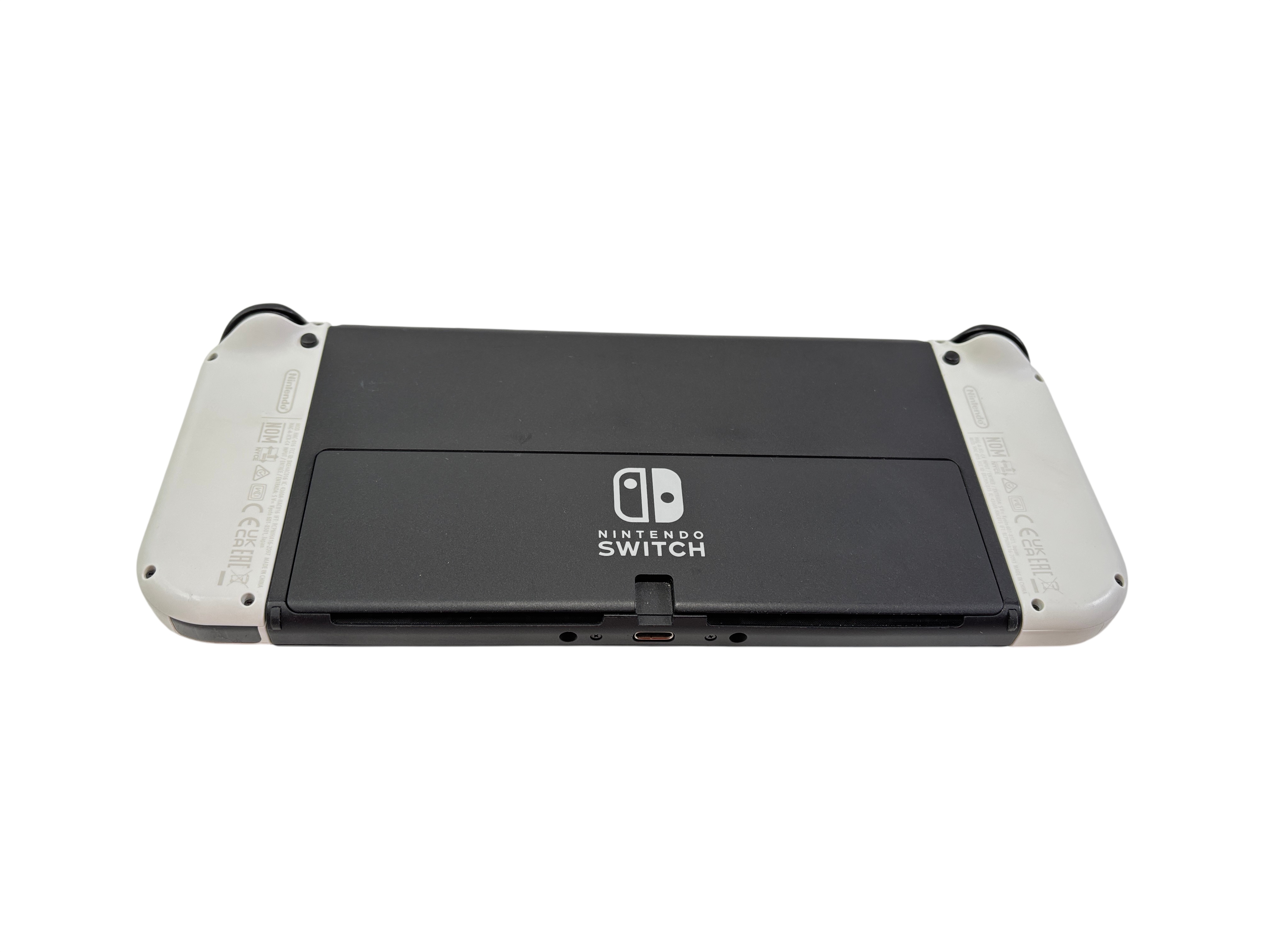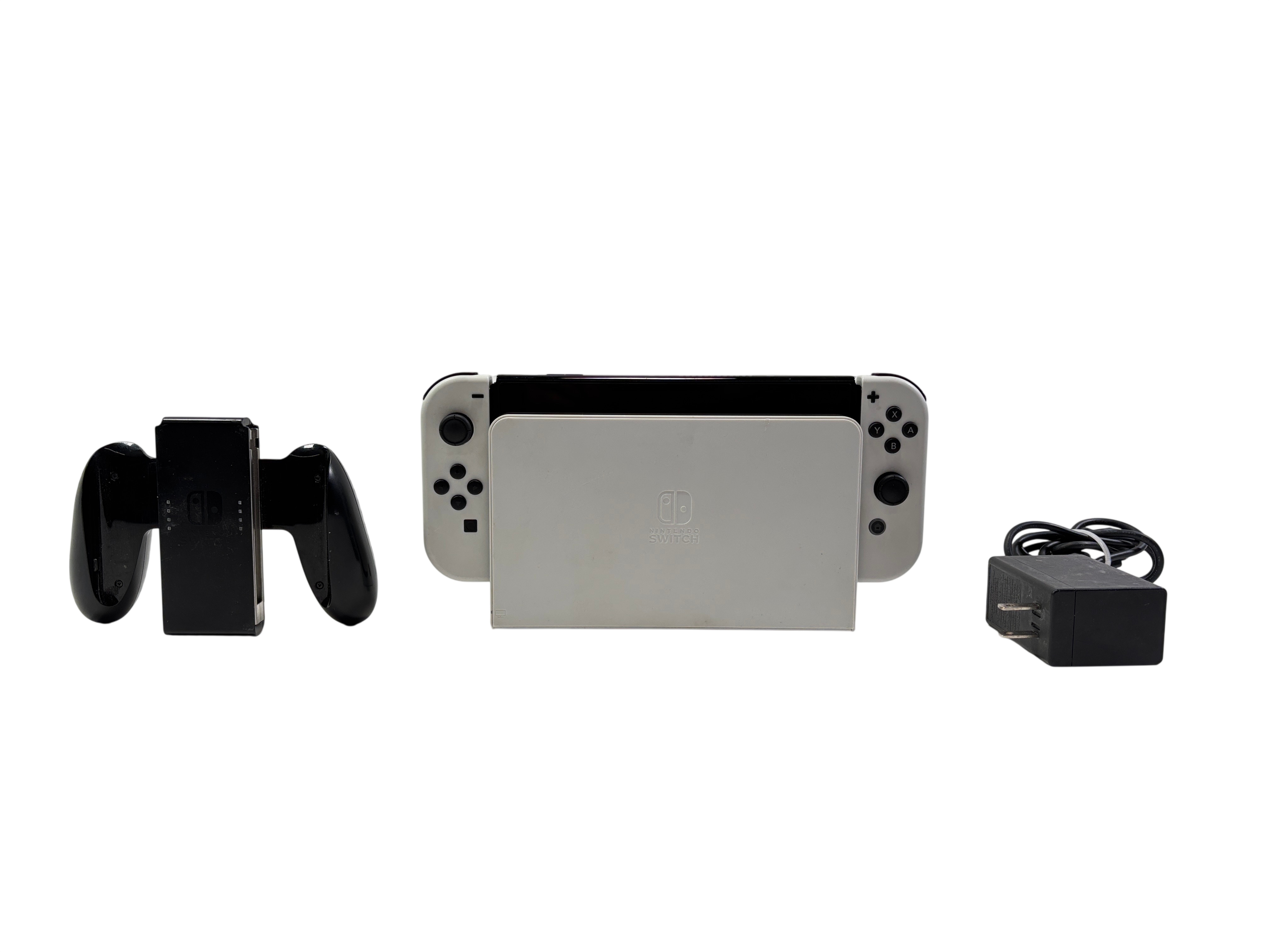 Nintendo Switch OLED Model HEG-001 features a vibrant 7-inch OLED display and 64GB of internal storage, delivering enhanced visual performance and ample game storage. This set includes the white Joy-Con controllers, the official dock for TV connectivity, a Joy-Con grip, and the AC adapter. Designed for both portable and home gaming, the Switch OLED offers versatile play modes and a sleek, compact design ideal for gamers on the go.