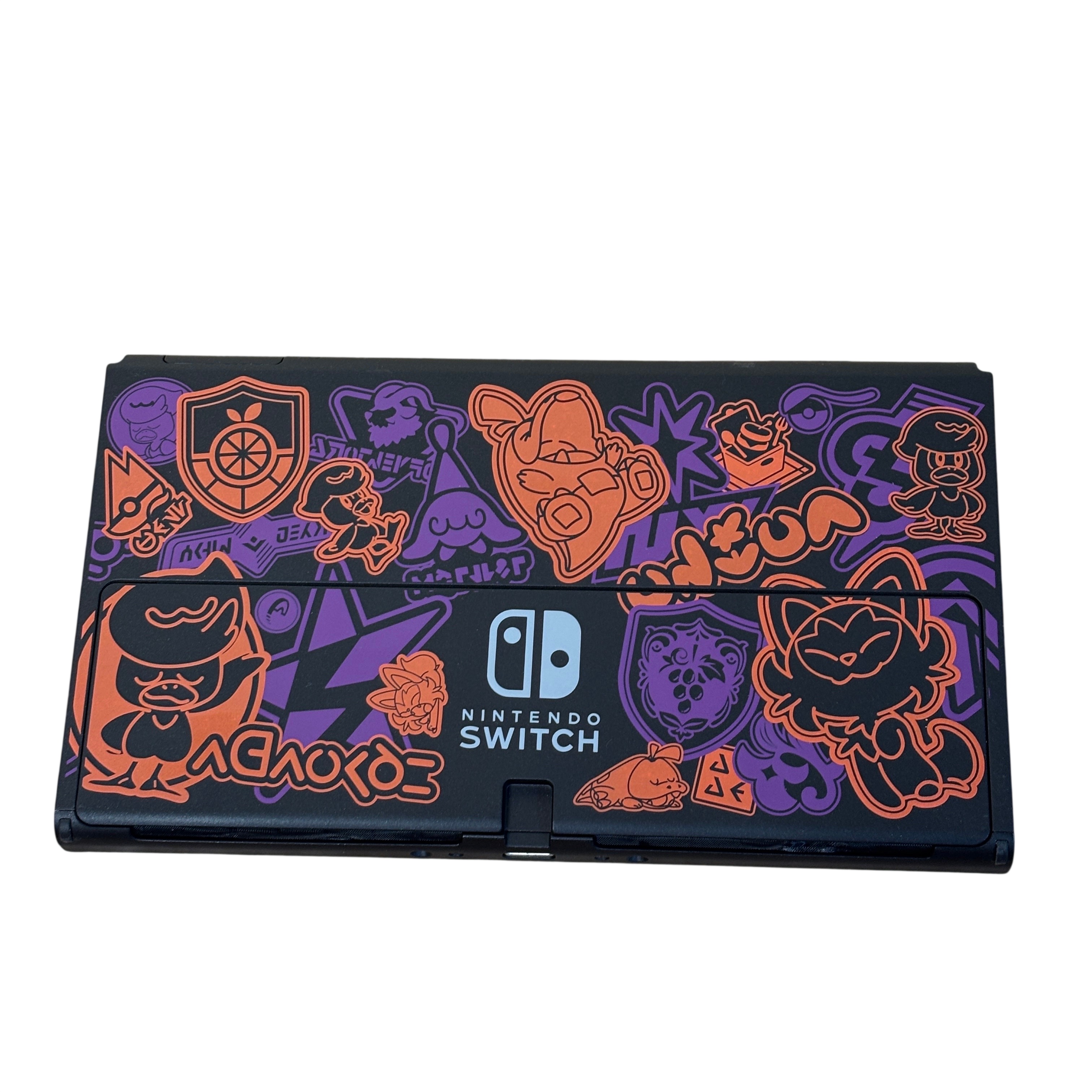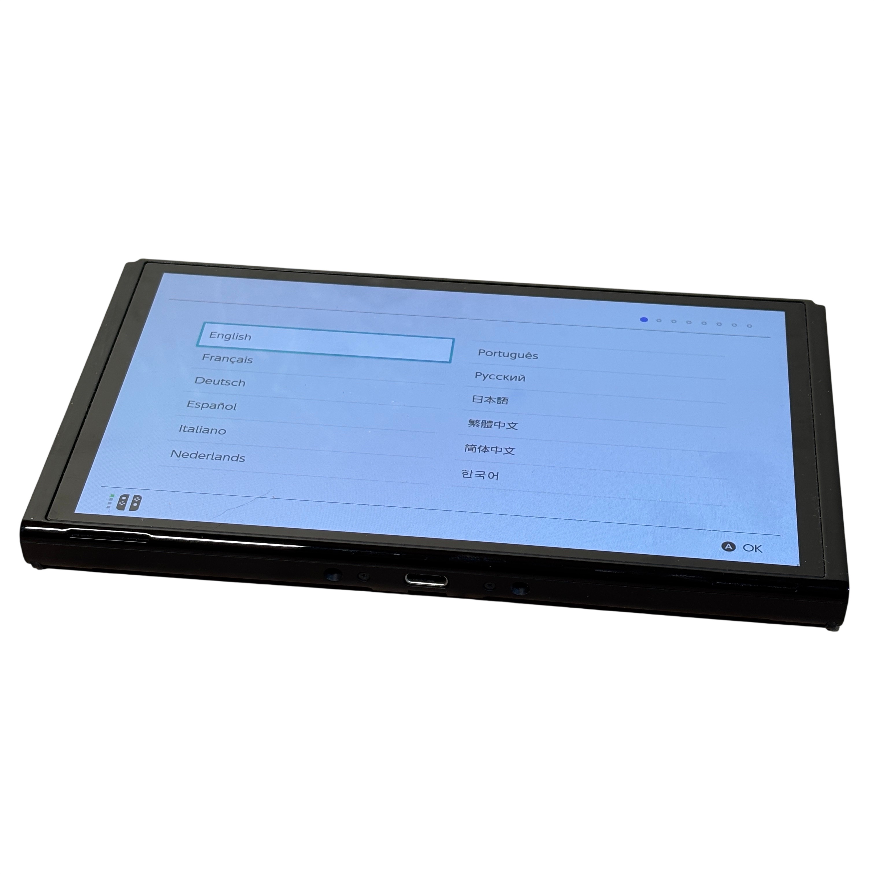 The Nintendo Switch – OLED Model (model number HEG-001) is a 2021 console featuring a vibrant 7-inch OLED screen, 64 GB of internal storage, a wide adjustable stand, and a dock with a built-in wired LAN port. It supports TV, Tabletop, and Handheld modes, providing enhanced audio and a premium design over the original model.