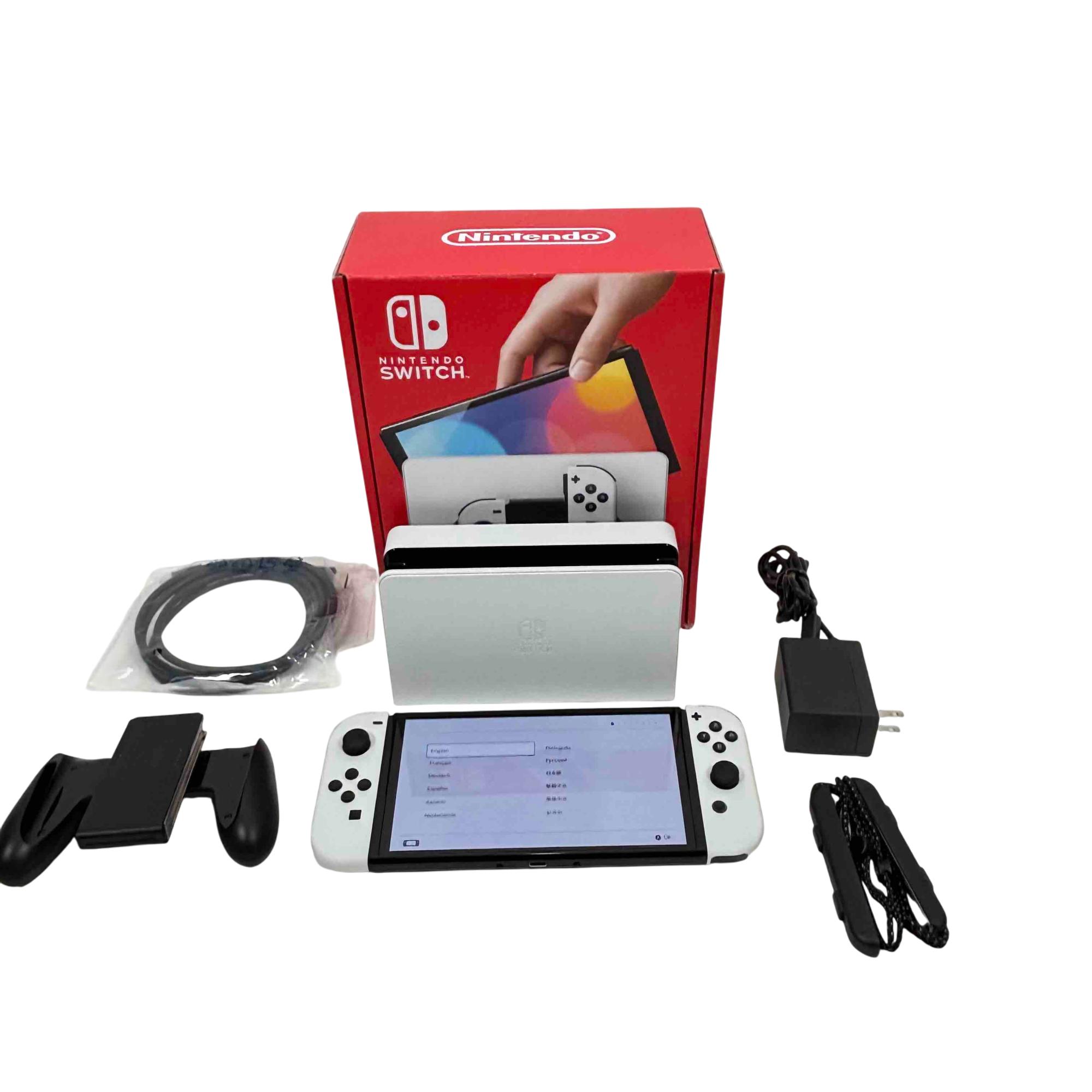 Experience gaming like never before with the Nintendo Switch OLED Model, featuring a vibrant 7-inch OLED screen and versatile play modes. This portable console comes with stylish white Joy-Con controllers and includes essential accessories such as the dock, HDMI cable, power adapter, and wrist straps. Perfect for gaming on the go or at home, this system delivers enhanced audio and an immersive visual experience for gamers of all ages.