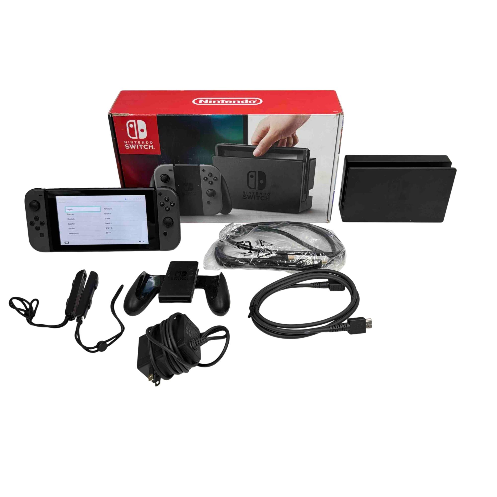 Enjoy gaming on the go or at home with the versatile Nintendo Switch HAC-001 console, featuring the iconic Gray Joy-Con controllers. This package includes the console, dock, Joy-Con grip, straps, AC adapter, HDMI cable, and original retail box—perfect for both newcomers and seasoned players. Experience a wide variety of exclusive Nintendo titles in handheld, tabletop, or TV mode!