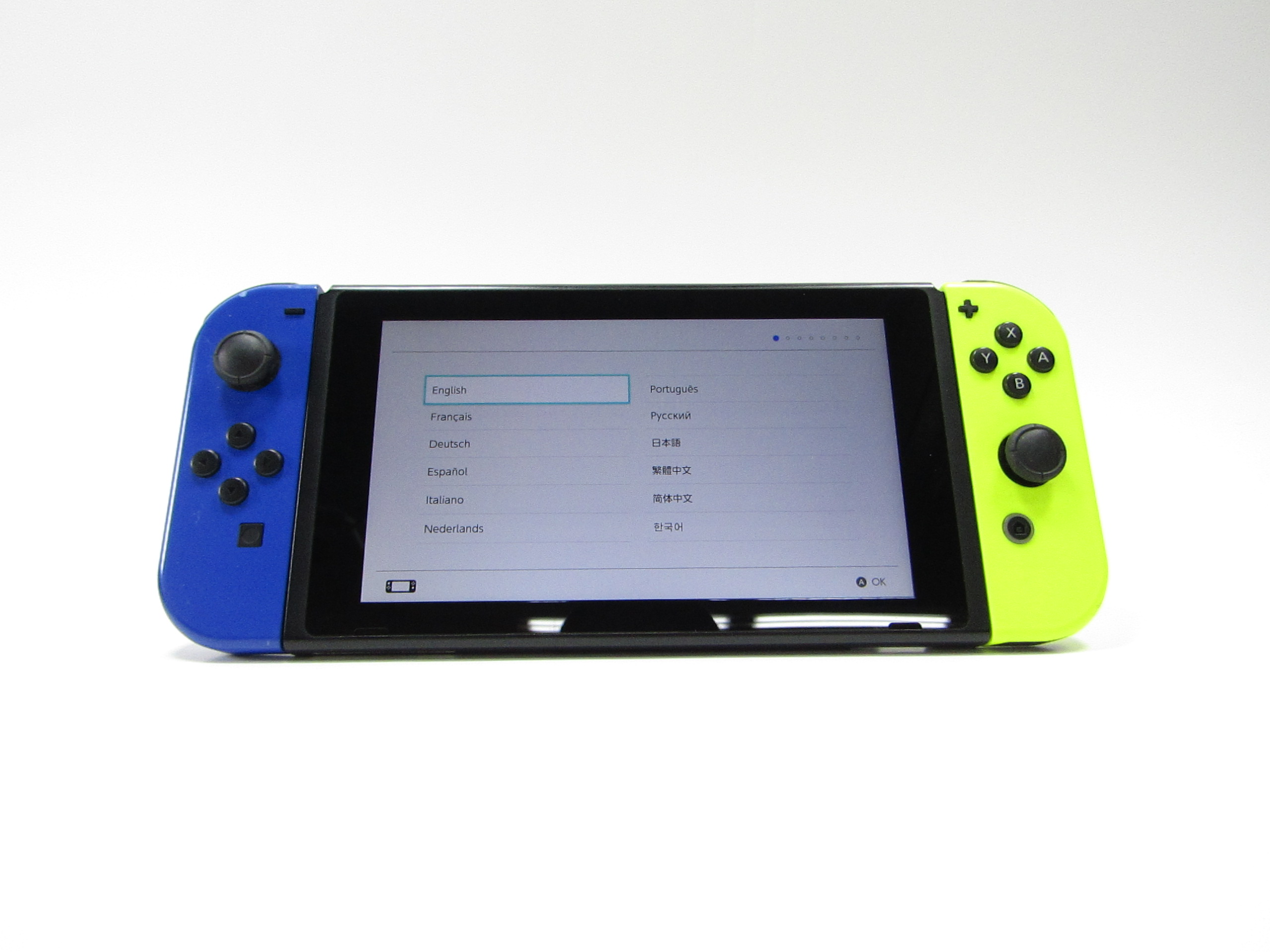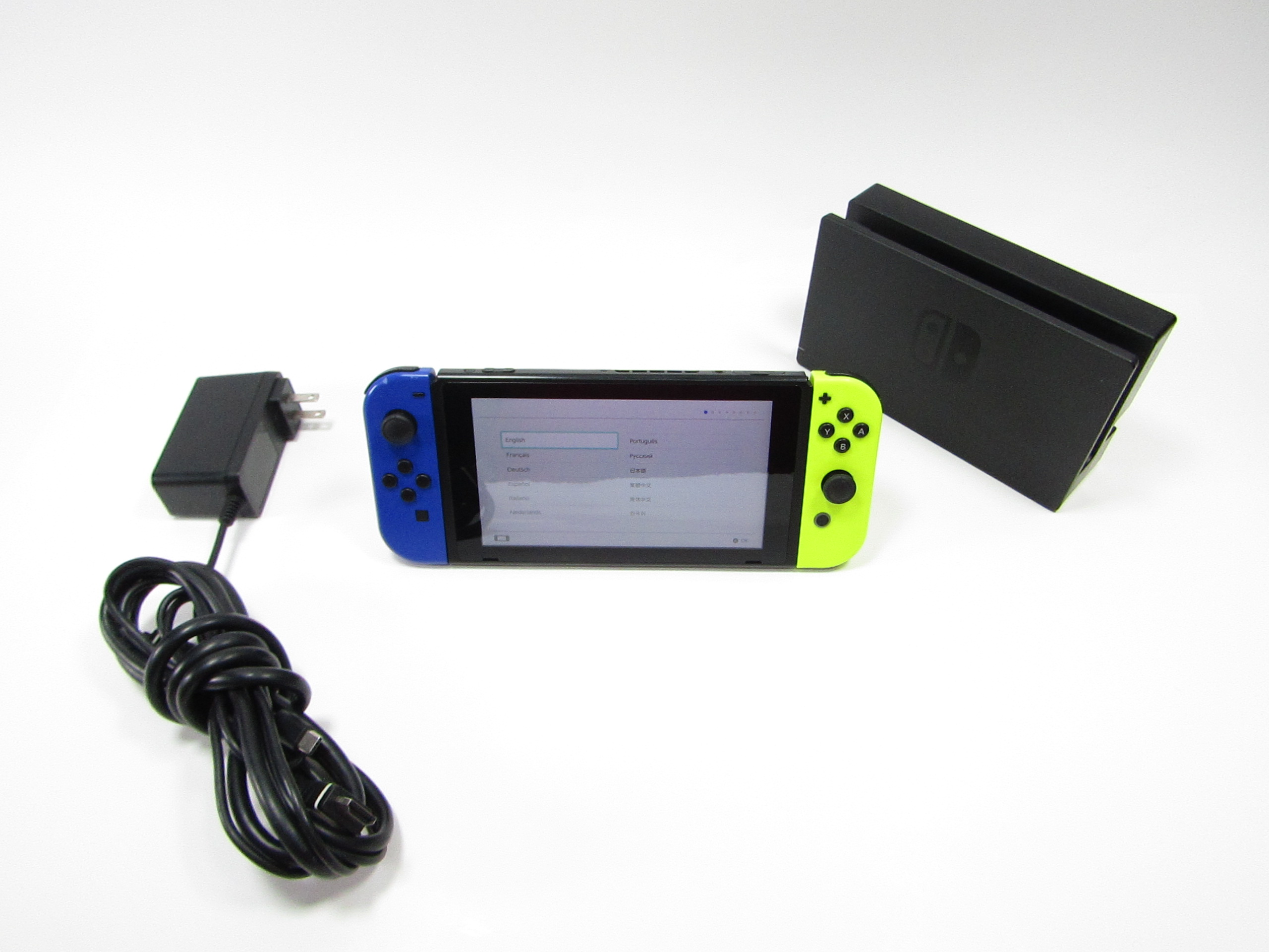 A versatile home video game system that offers both single and multiplayer gaming experiences. It is designed to be portable, allowing players to enjoy a full home console experience anytime, anywhere. The system can transition from a home console to a handheld device by simply lifting it from its dock. The Nintendo Switch features a 6.2-inch high-definition screen for vibrant, high-resolution graphics. It comes with two Joy-Con controllers that can act as standalone controllers, each equipped with an analog stick, face and shoulder buttons, motion-sensing technology, and new HD Rumble. These controllers can be inserted into a Joy-Con grip accessory for a traditional controller experience, or shared between two players for instant multiplayer gaming. The Nintendo Switch supports three play styles: TV, tabletop, and handheld modes, and can connect up to eight consoles over Wi-Fi for local multiplayer gaming.