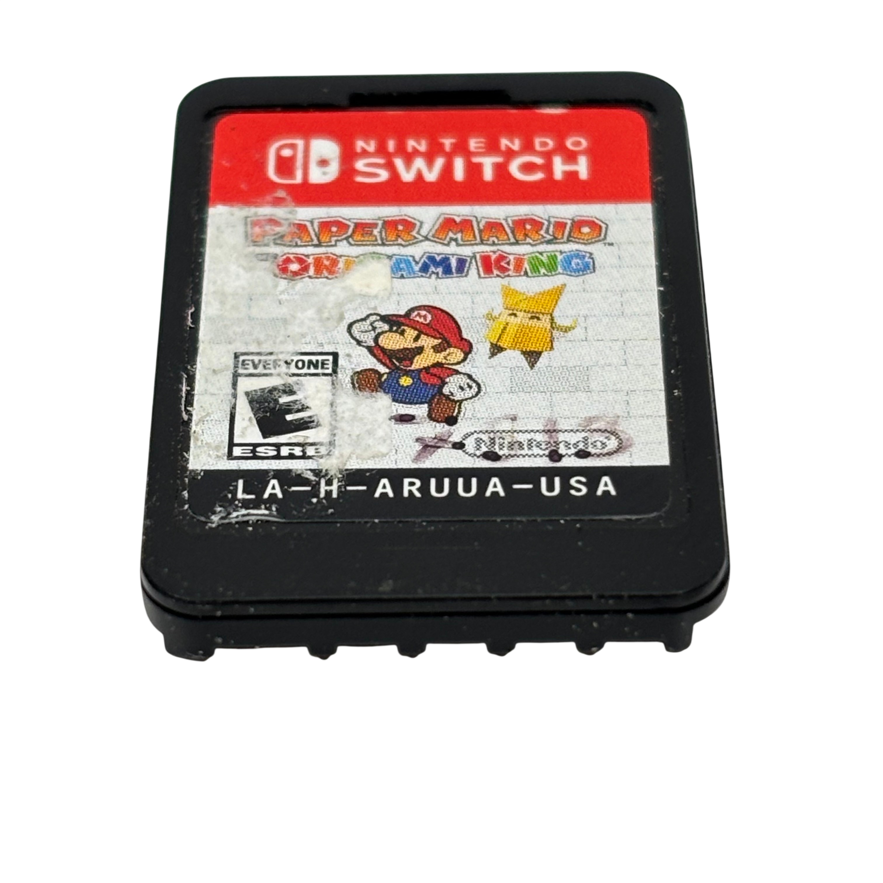Nintendo Paper Mario Origami King Nintendo Switch Game Cartridge offers an engaging adventure with the beloved Paper Mario series on the Nintendo Switch platform. This official game cartridge features the full Paper Mario Origami King game, rated Everyone by the ESRB, and is designed for easy portability and play. The cartridge is compact and compatible with all Nintendo Switch consoles, making it an excellent choice for gamers seeking fun and creativity on the go. Please note the cartridge label shows signs of wear, reflecting its used condition.