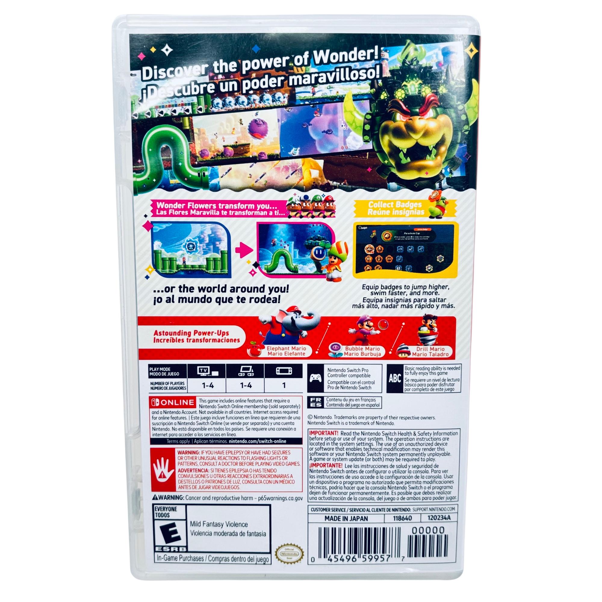 Super Mario Bros. Wonder - Nintendo Switch delivers an engaging side-scrolling adventure filled with vibrant cartoon characters and imaginative worlds. This game features dynamic gameplay centered around the iconic Mario universe, showcasing colorful graphics and creative level designs that appeal to players of all ages.